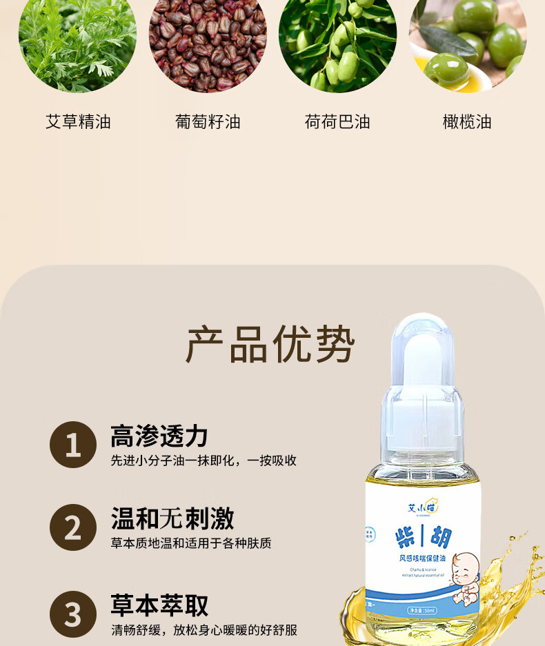 艾小喵儿童按摩 温通精油 小儿推拿按摩 健脾胃 风寒咳喘儿童精油 婴儿草本紫草油婴儿红臀、脖子红