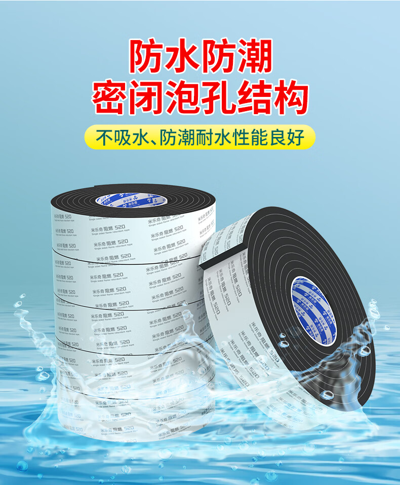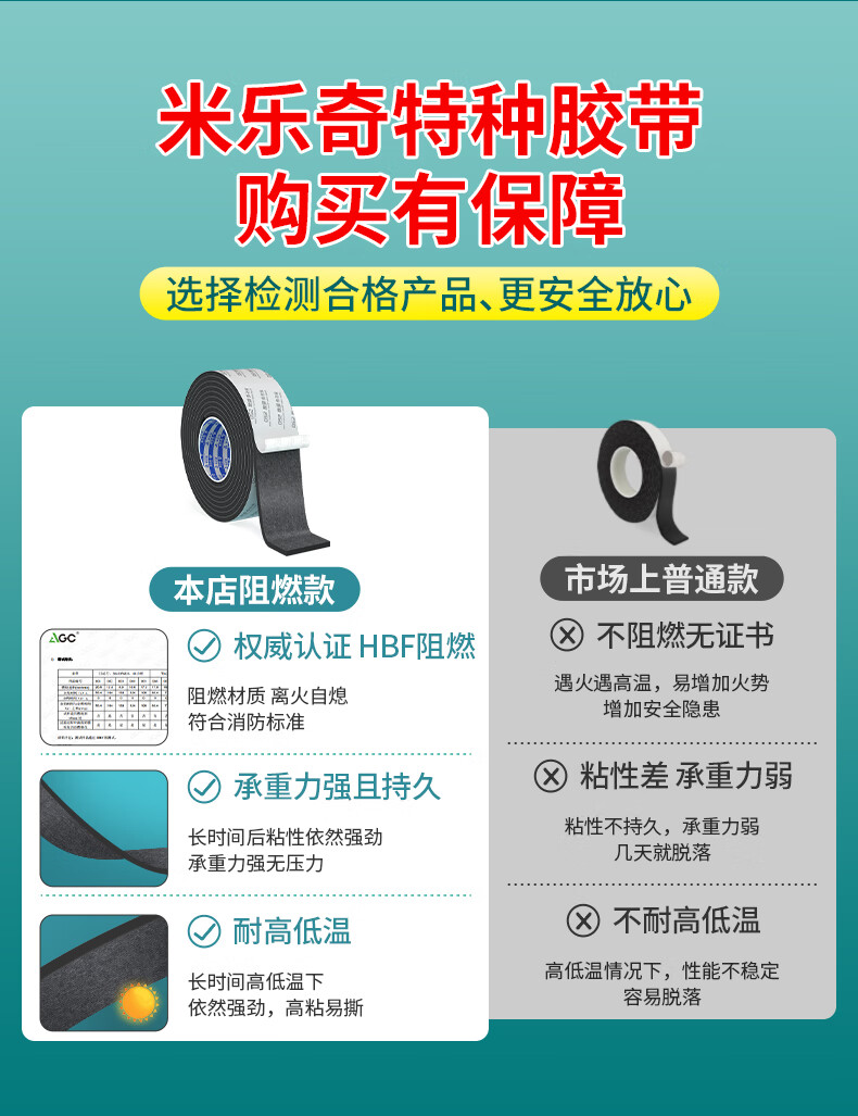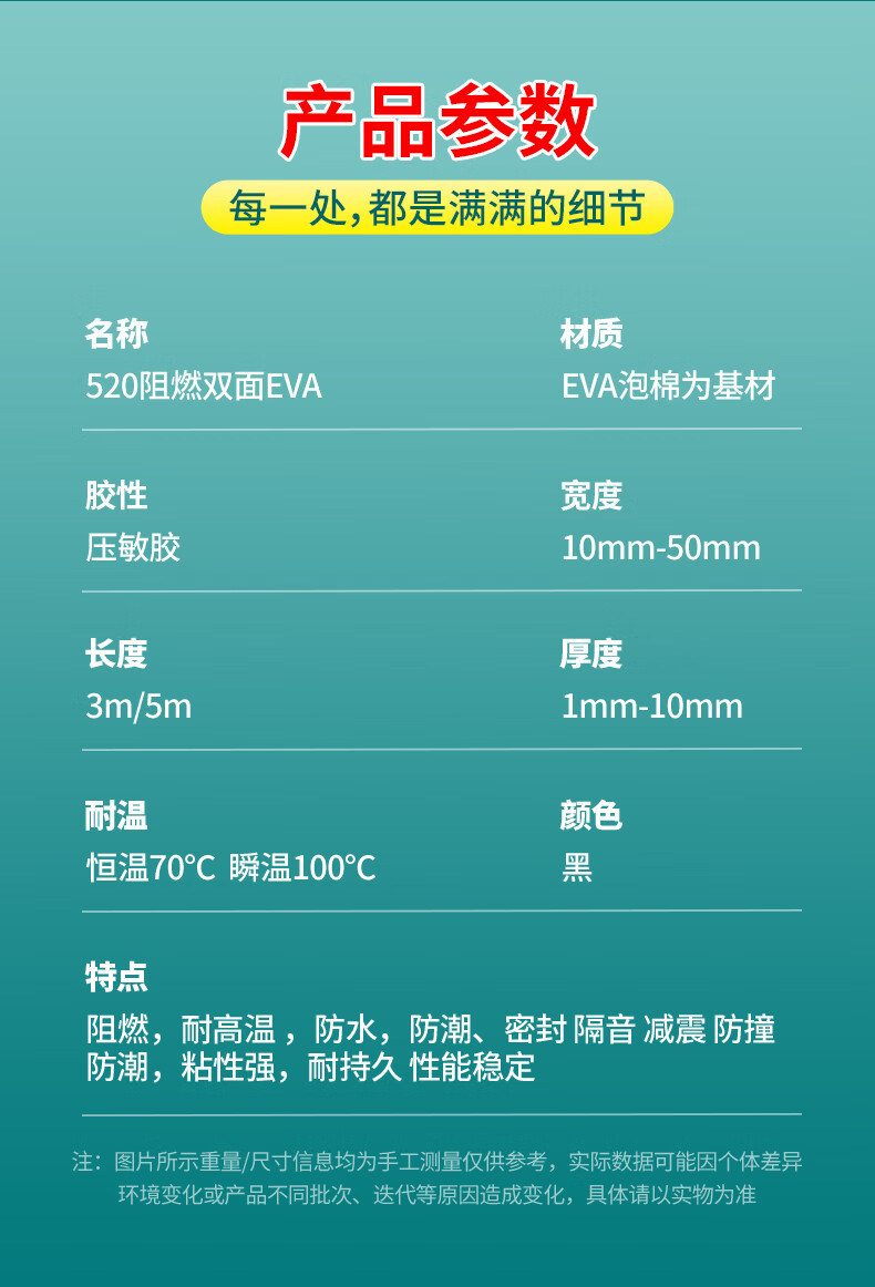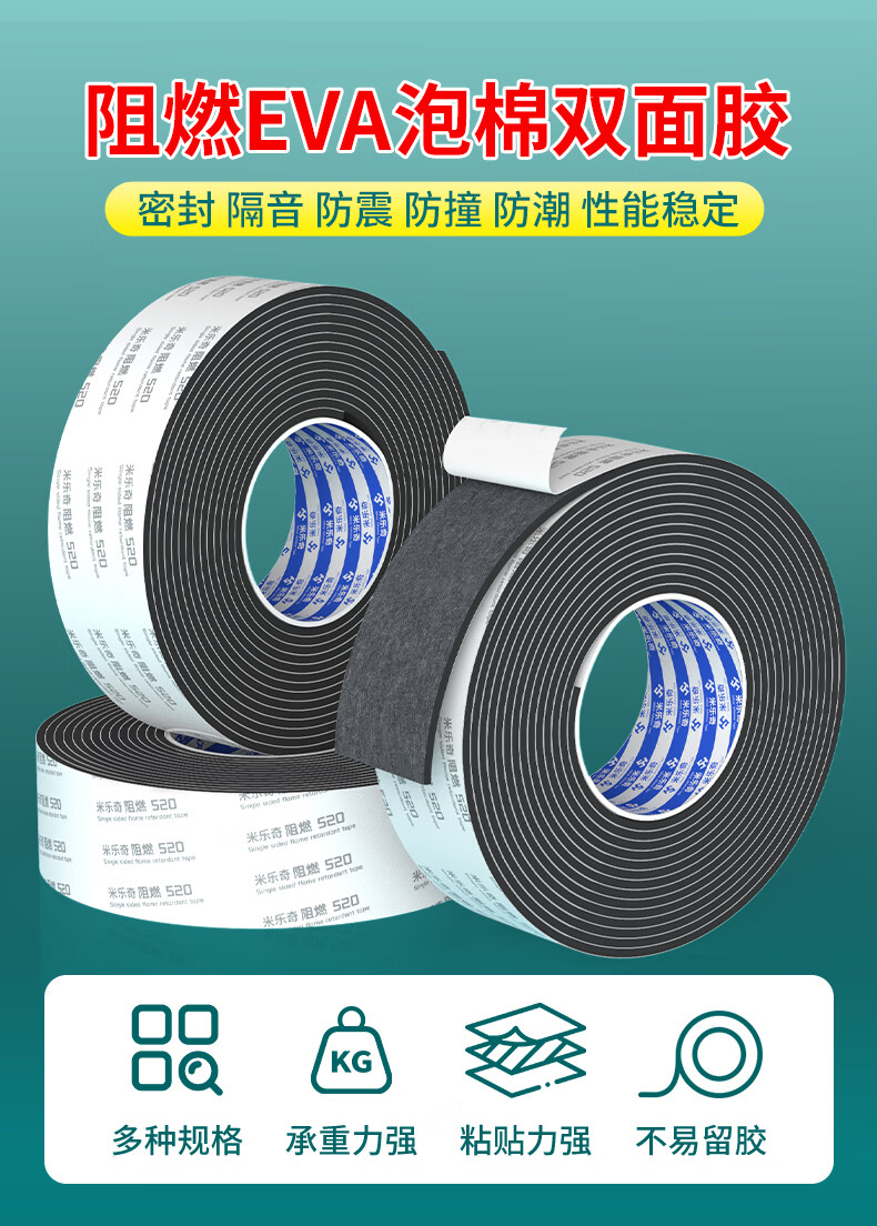 阻燃EVA双面海绵胶带高粘度防火耐高温隔热棉固定贴墙面加厚泡沫胶超粘强力防水两面胶防撞缓冲减震密封 10mm厚【黑色】 50mm宽*3m长-2卷装 黑色