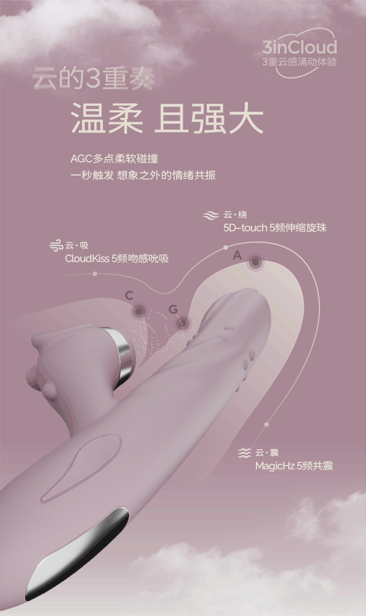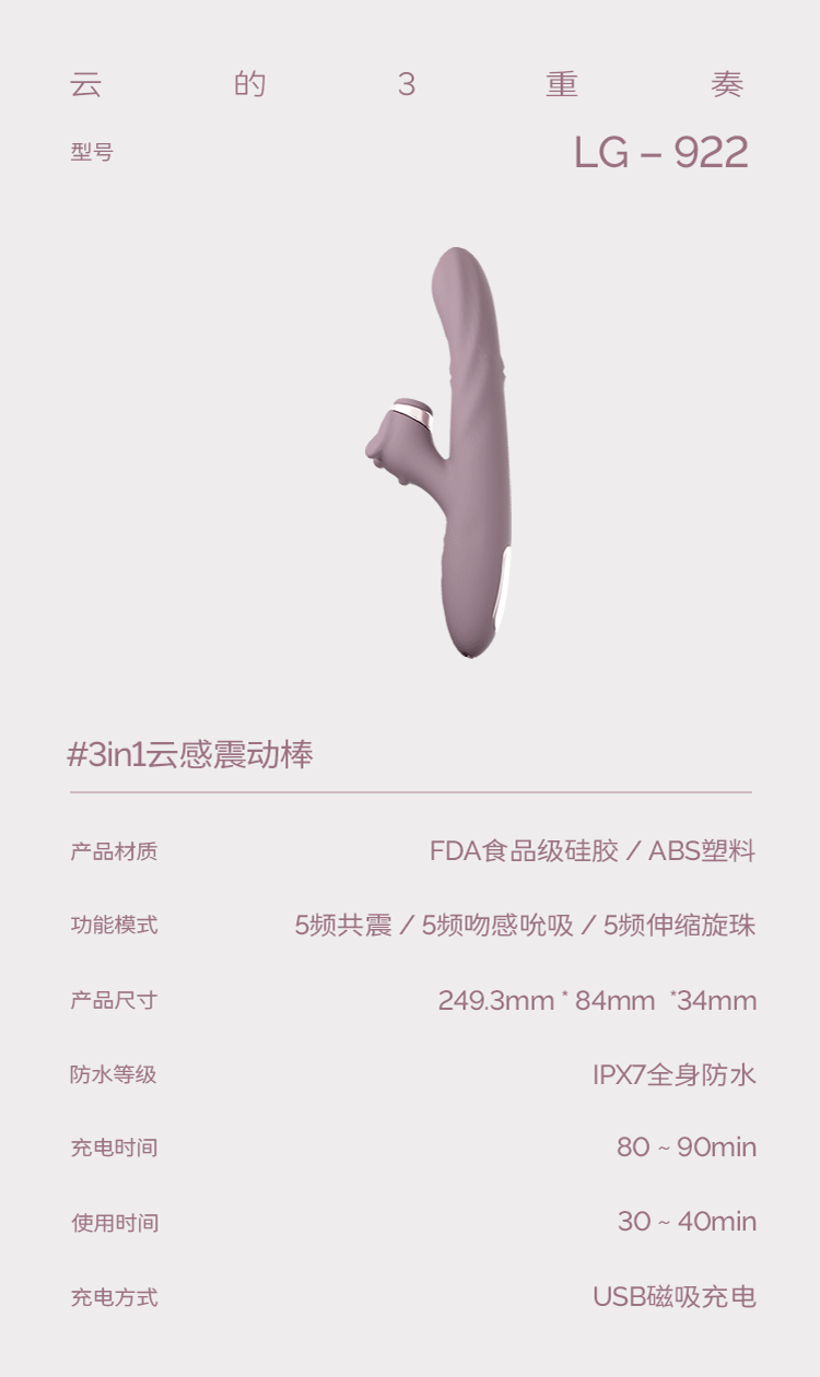 桃情滚珠伸缩吮吸震动棒自慰器情趣用品女性成人玩具阴蒂插入高潮振动 云雾灰紫3重奏【快感液+润清套装】