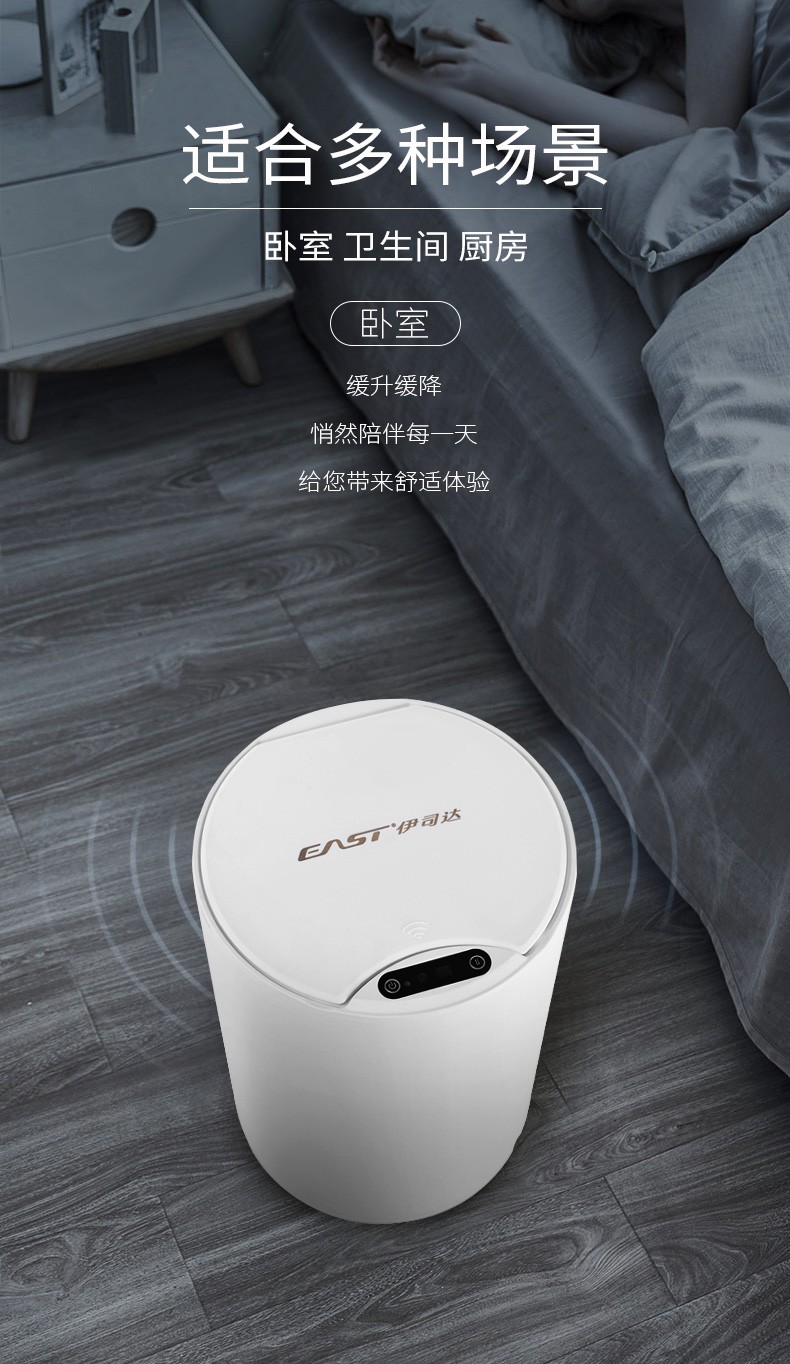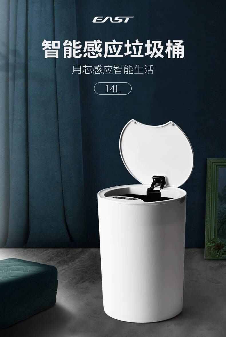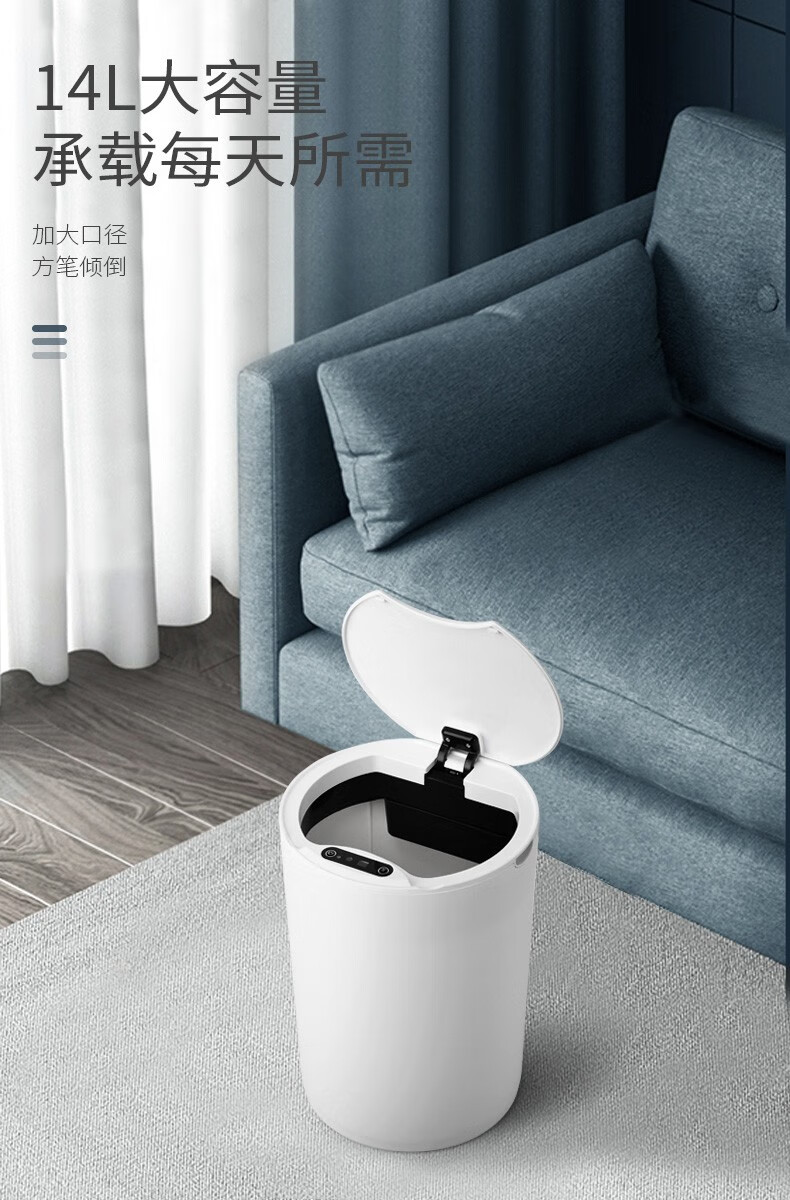 伊司达智能垃圾桶感应大容量带盖电动轻奢家用卫生间厨房客厅卧室办公室 14L感应垃圾桶