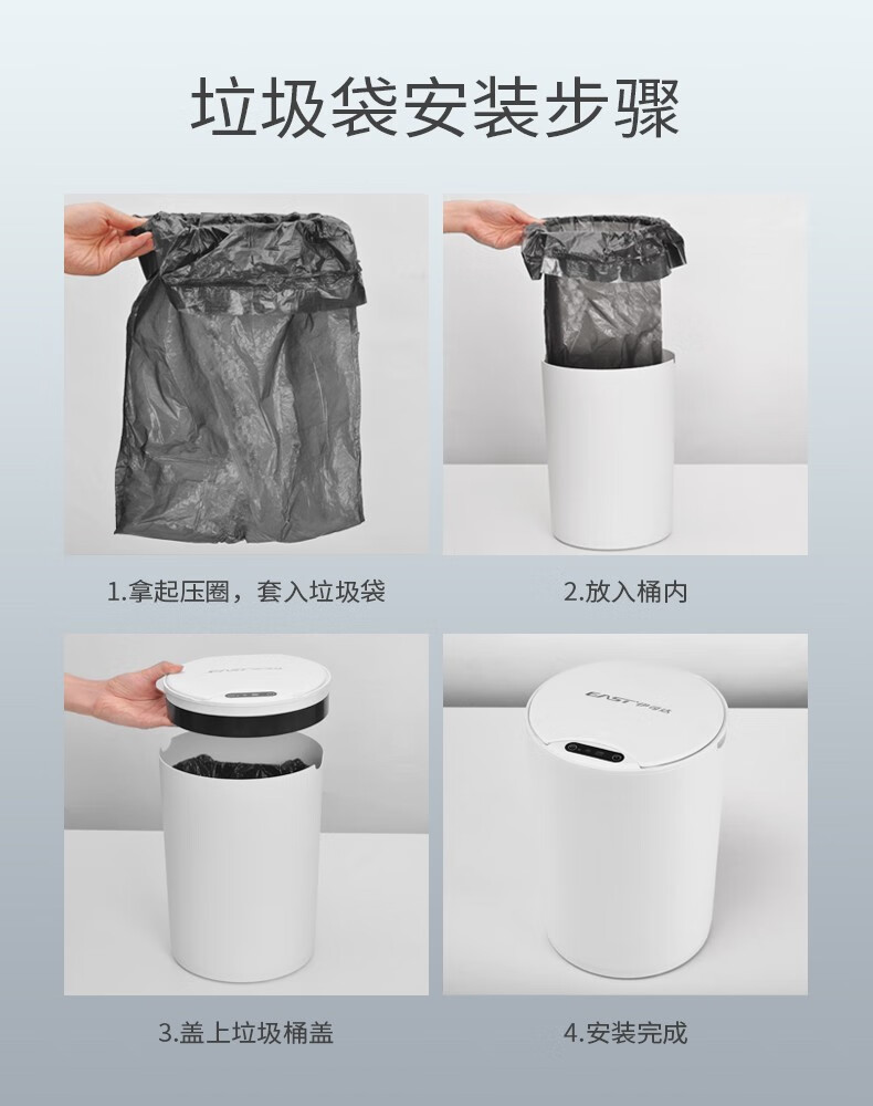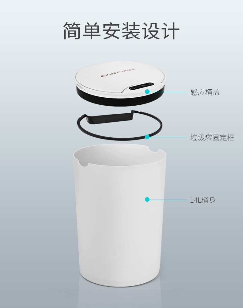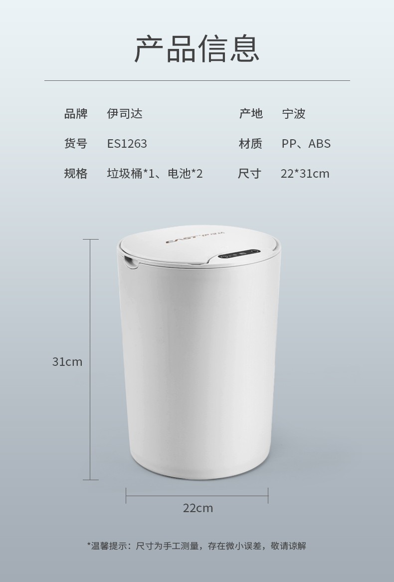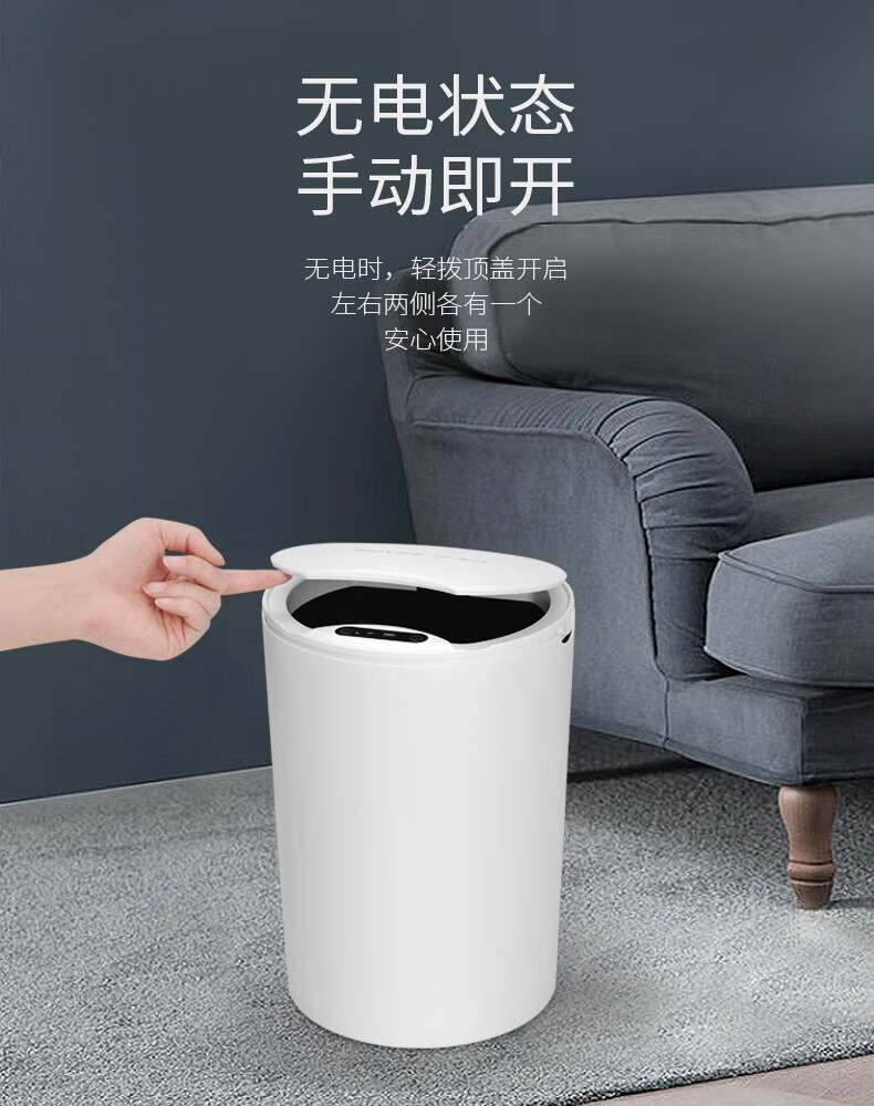 伊司达智能垃圾桶感应大容量带盖电动轻奢家用卫生间厨房客厅卧室办公室 14L感应垃圾桶