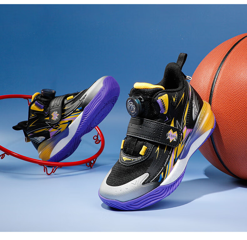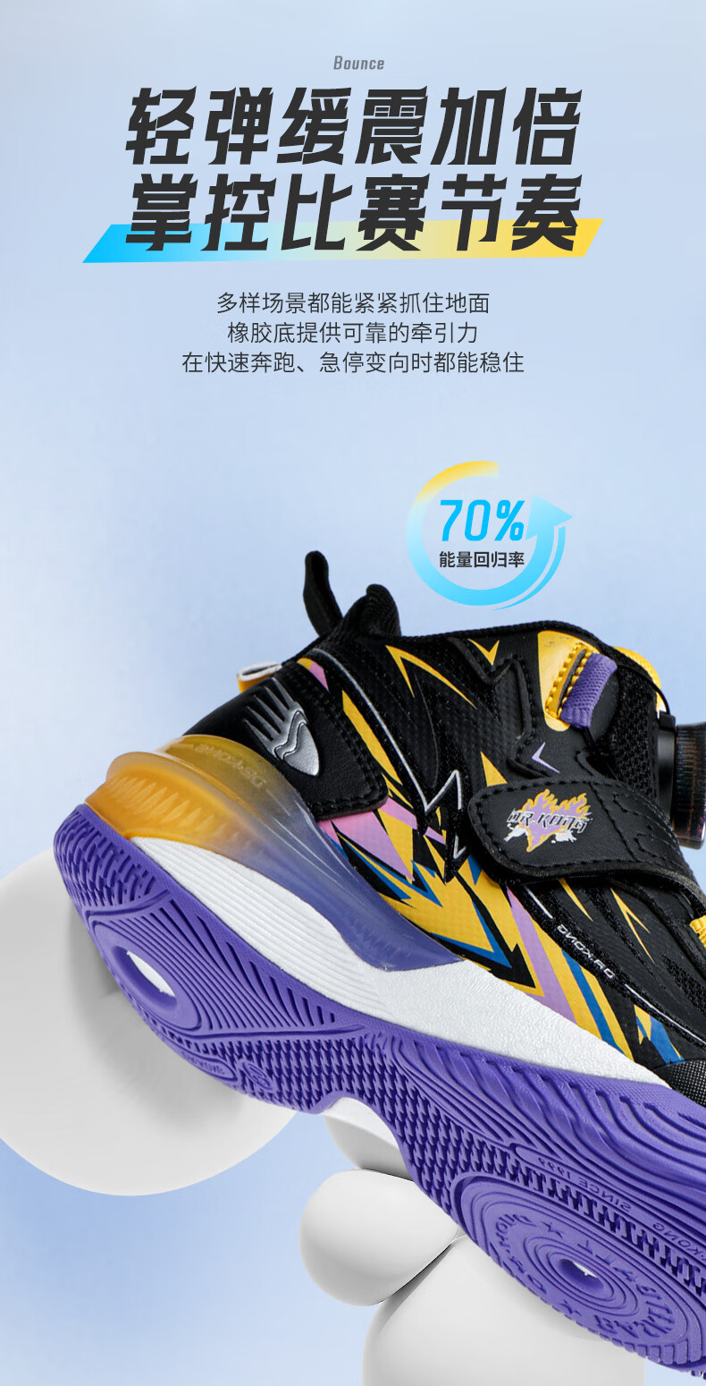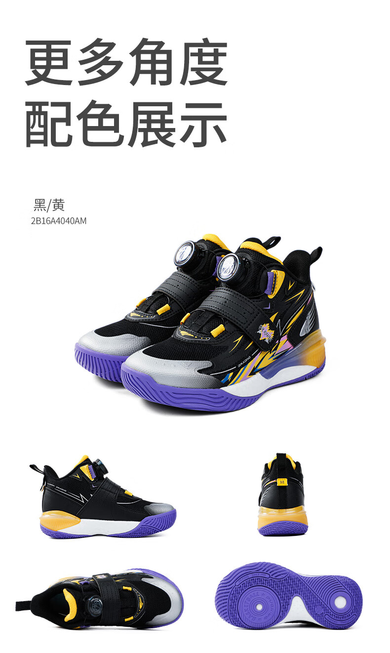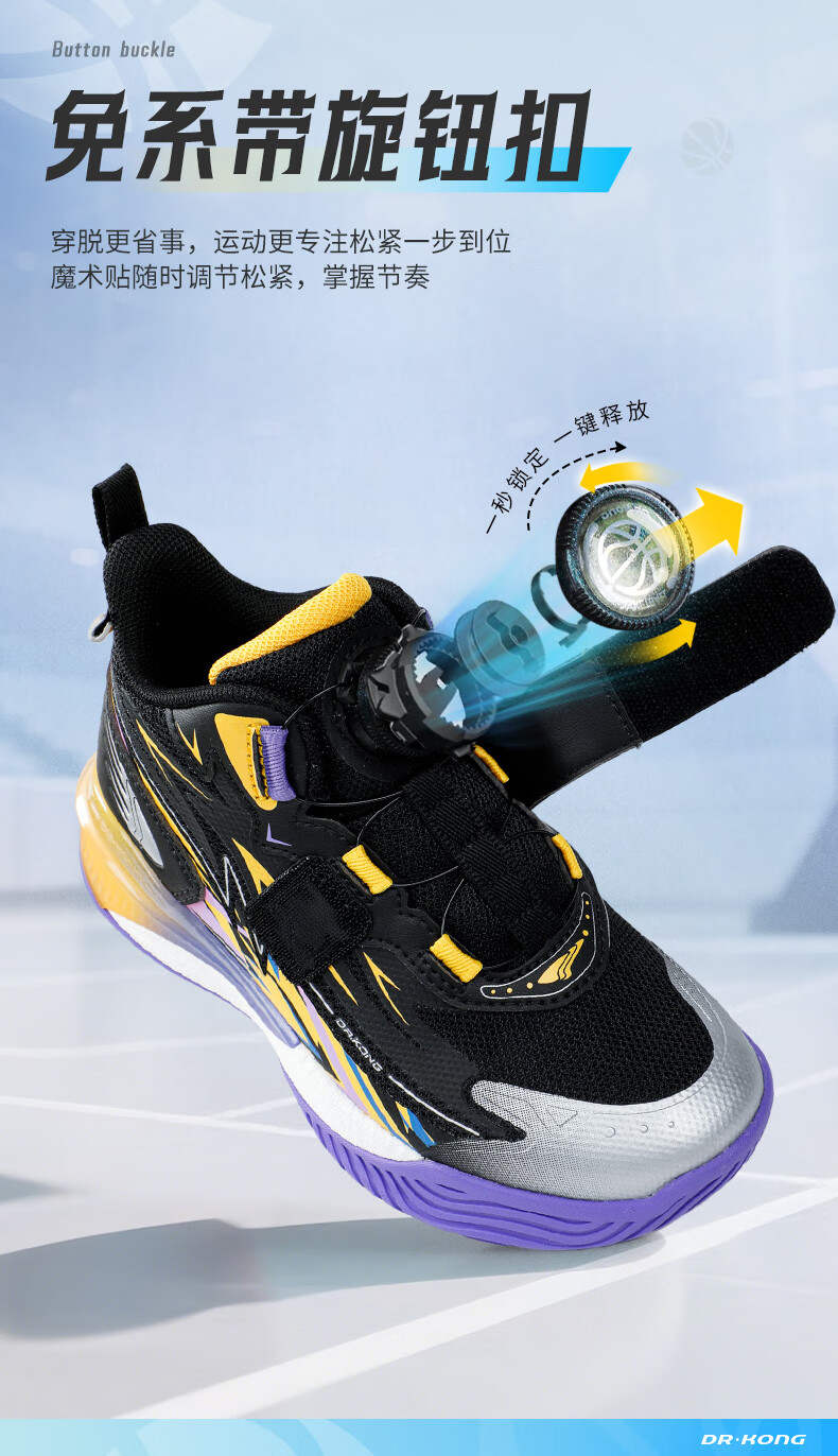 江博士童鞋2025冬新款旋钮扣男宝宝学步鞋儿童运动篮球鞋 黑/黄 28 脚长约16.9-17.4