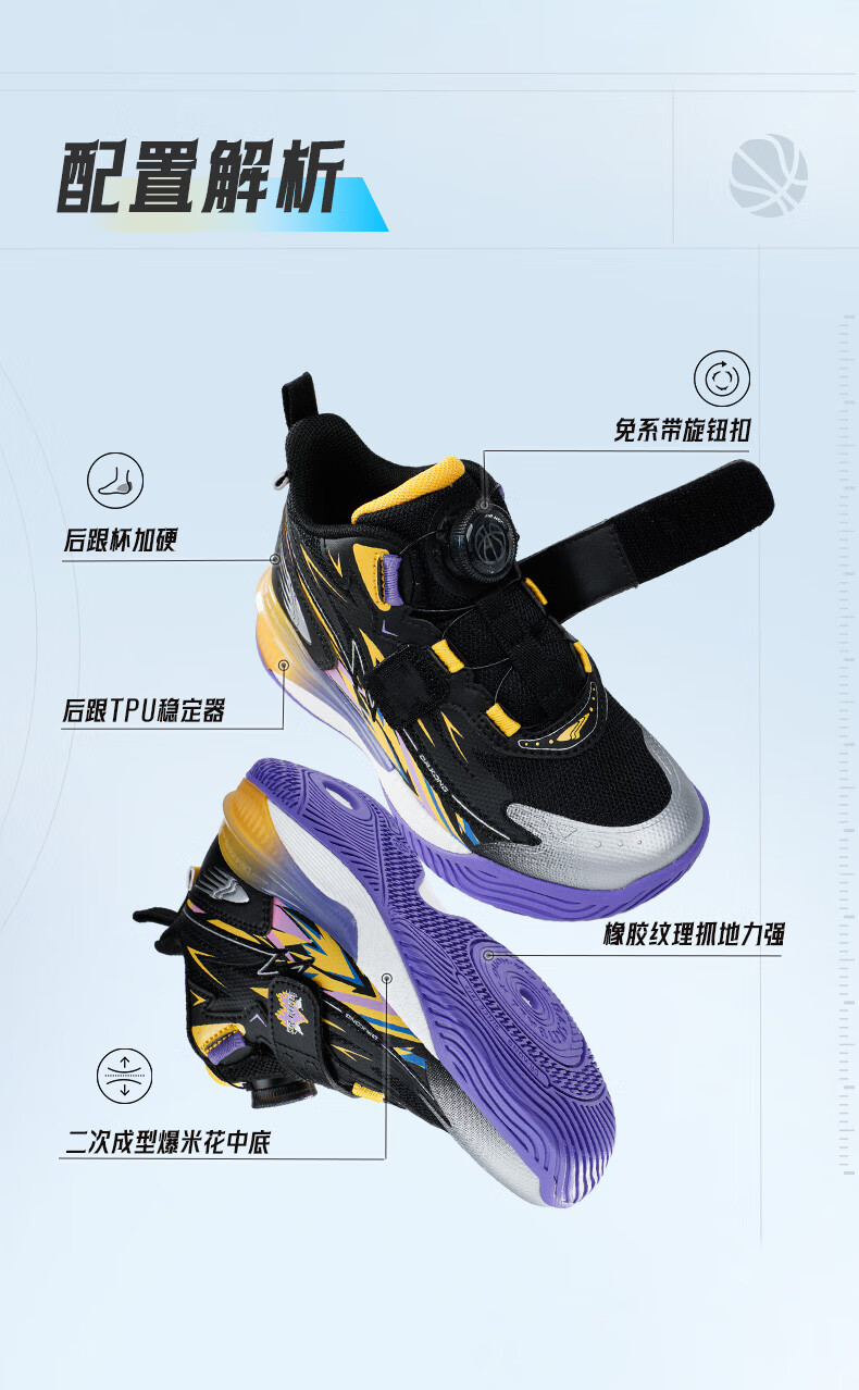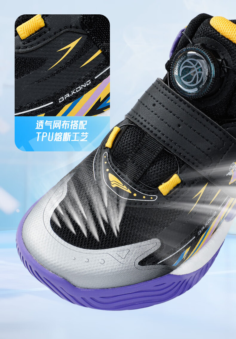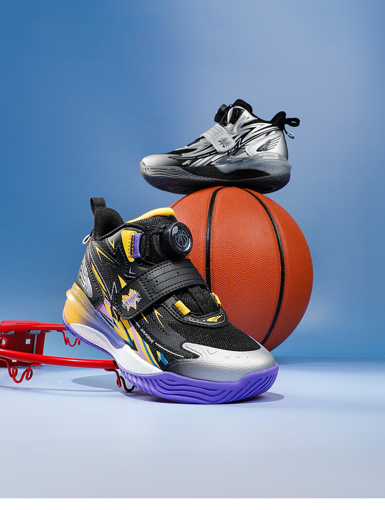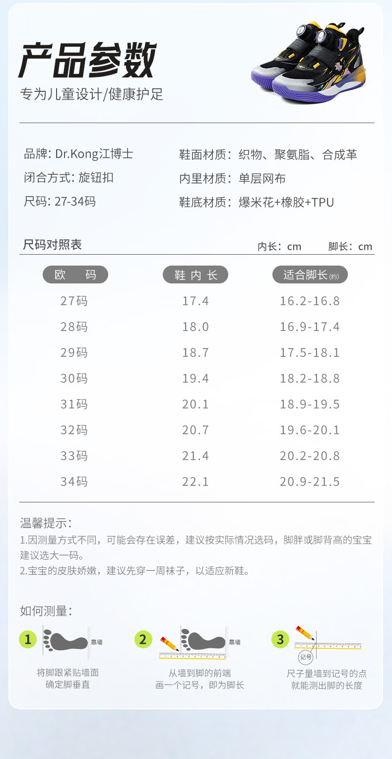 江博士童鞋2025冬新款旋钮扣男宝宝学步鞋儿童运动篮球鞋 黑/黄 28 脚长约16.9-17.4