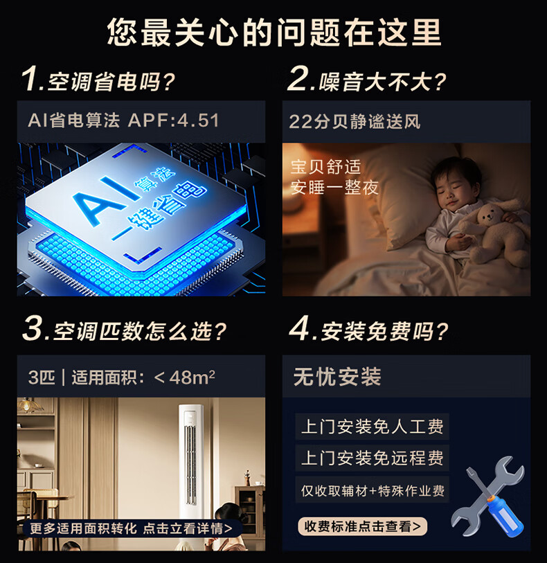 华凌空调超省电Pro3匹柜机 一级能效双排铜管变频冷暖立式客厅柜机空调 国家补贴 KFR-72LW/N8HA1Ⅲ