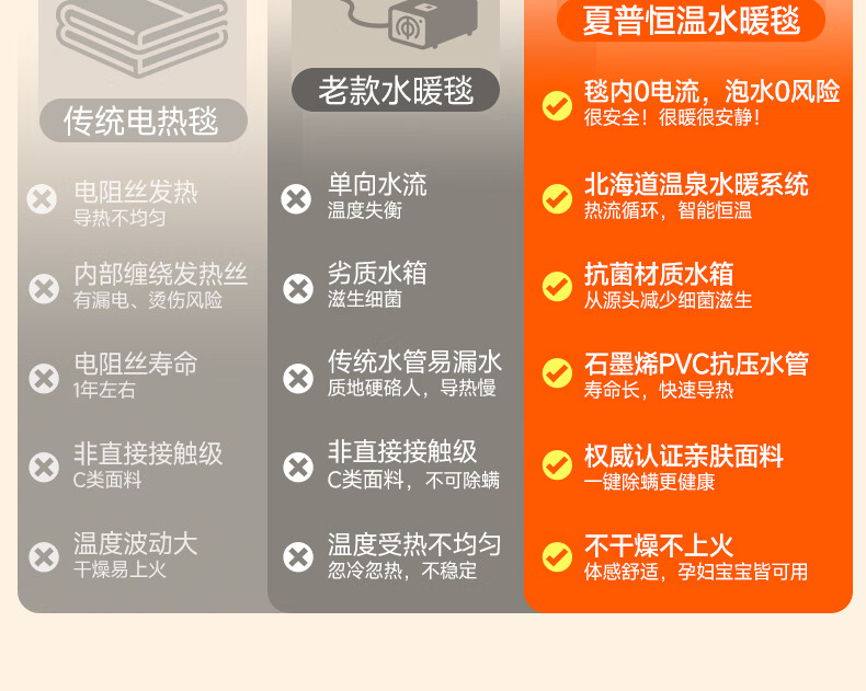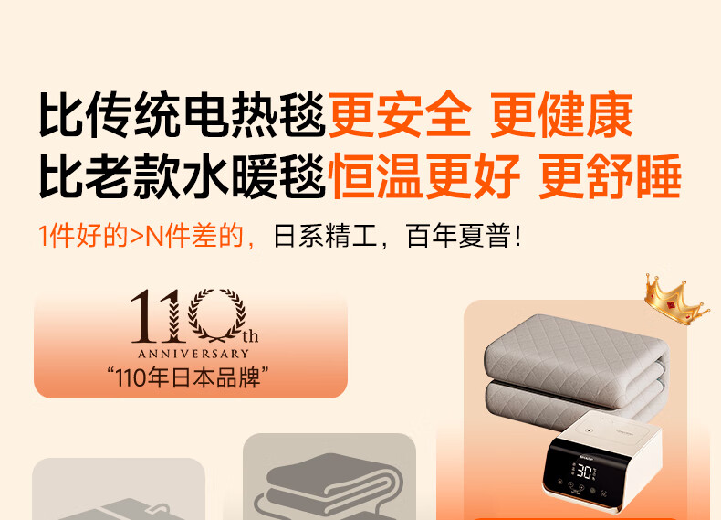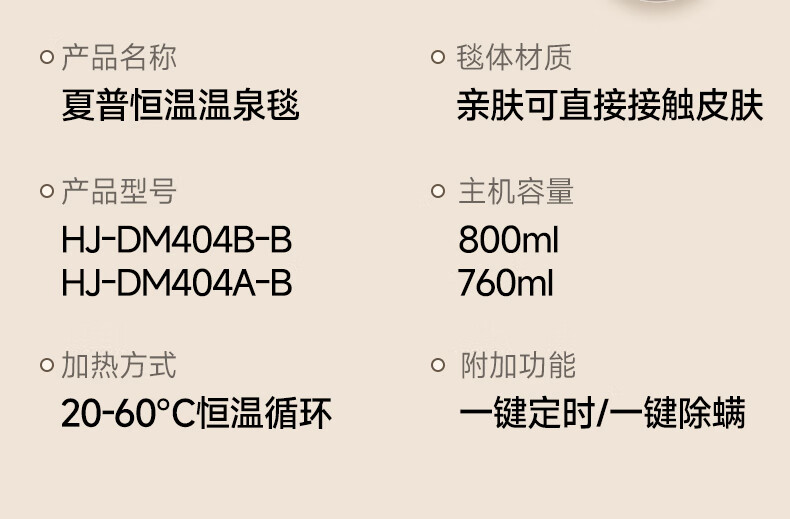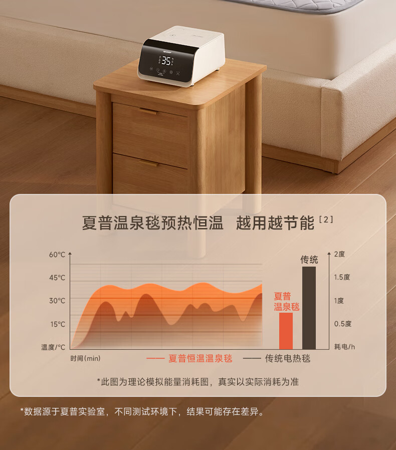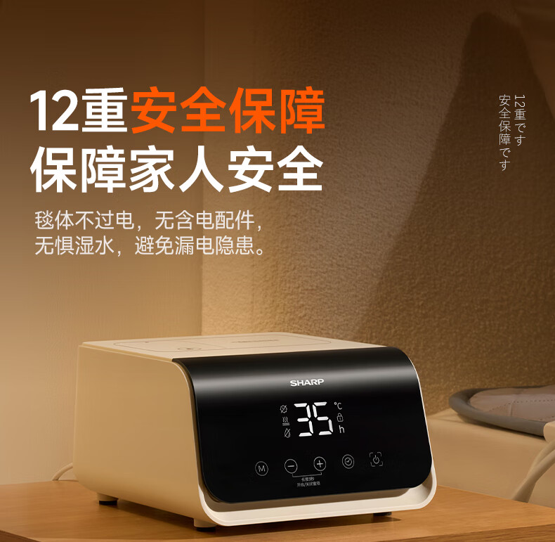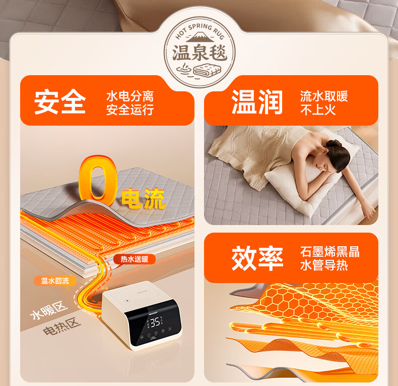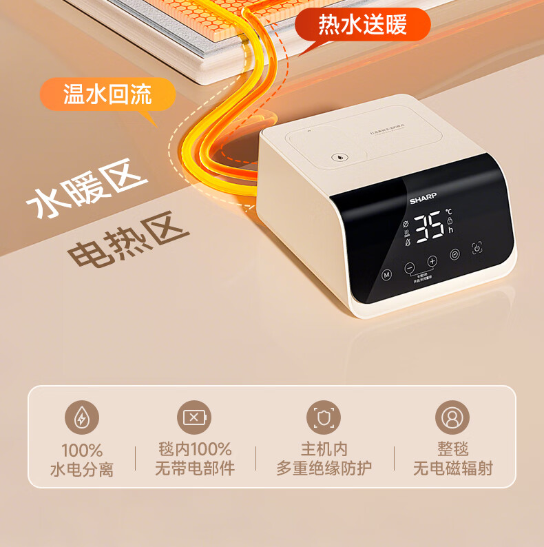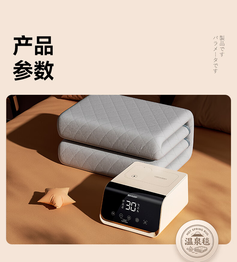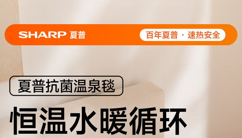 夏普(SHARP)温泉水暖毯抗菌除螨电热毯电褥子石墨烯水循环加热2025新款水热毯双人家用1.5*1.8米HJ-DM404A-B