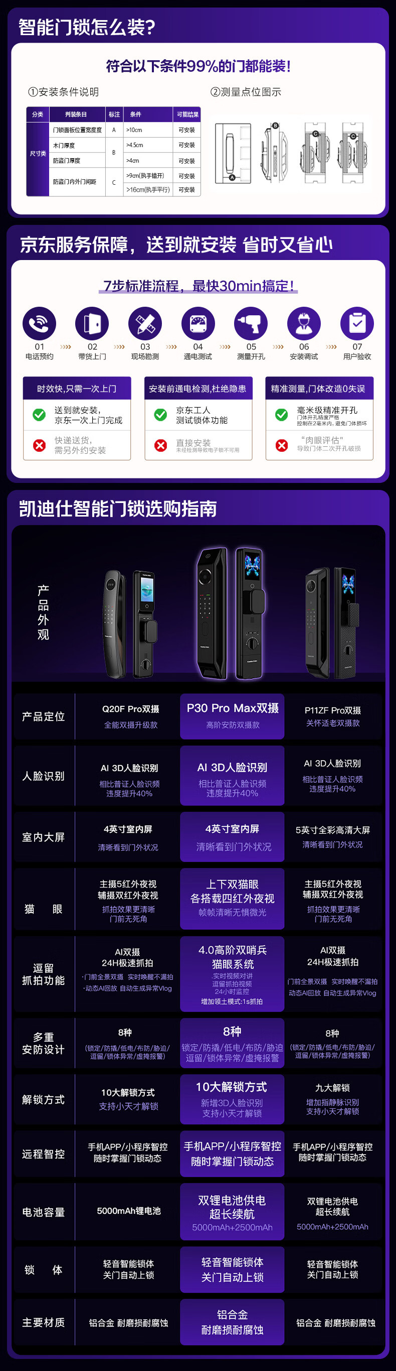 凯迪仕(KAADAS)智能门锁 双摄人脸识别可视猫眼大屏指纹锁 金刚P30 Pro Max双摄