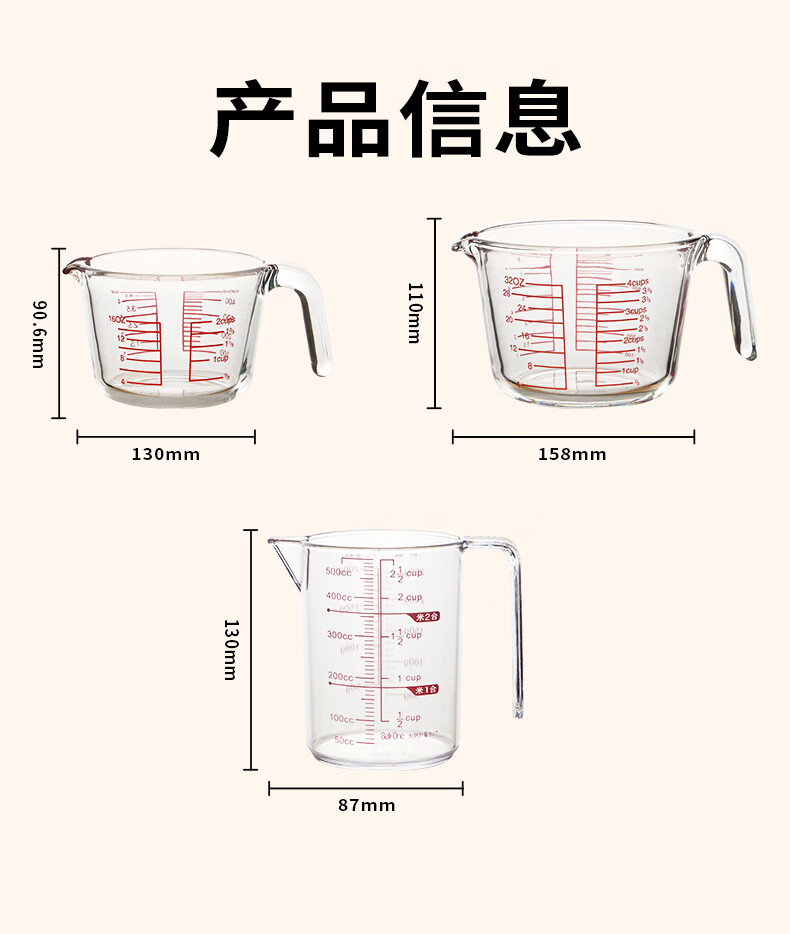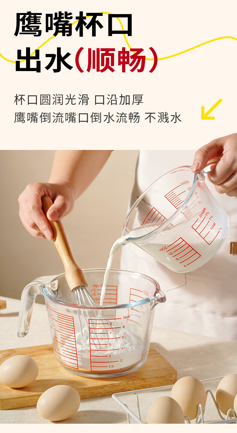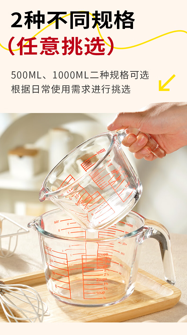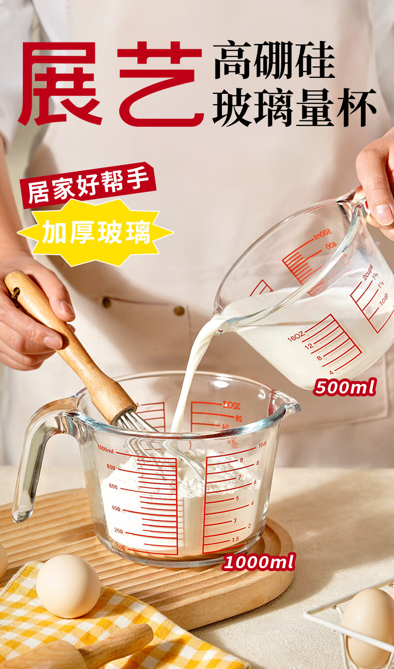 展艺高硼硅玻璃量杯500ml加厚刻度耐高温微波炉烤箱烘焙打蛋热奶过滤