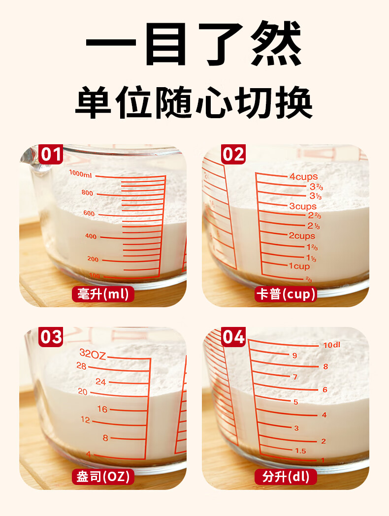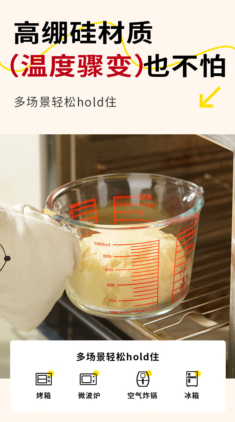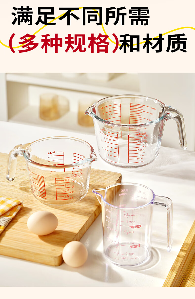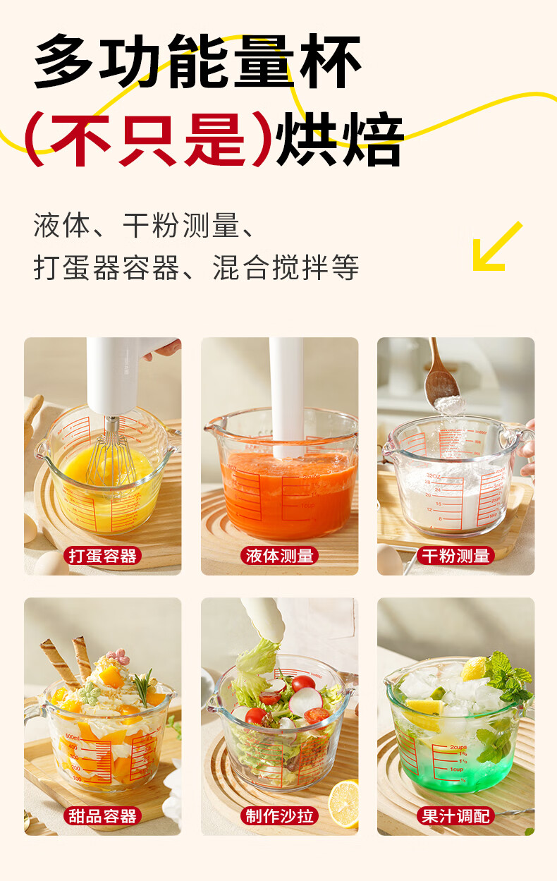 展艺高硼硅玻璃量杯500ml加厚刻度耐高温微波炉烤箱烘焙打蛋热奶过滤