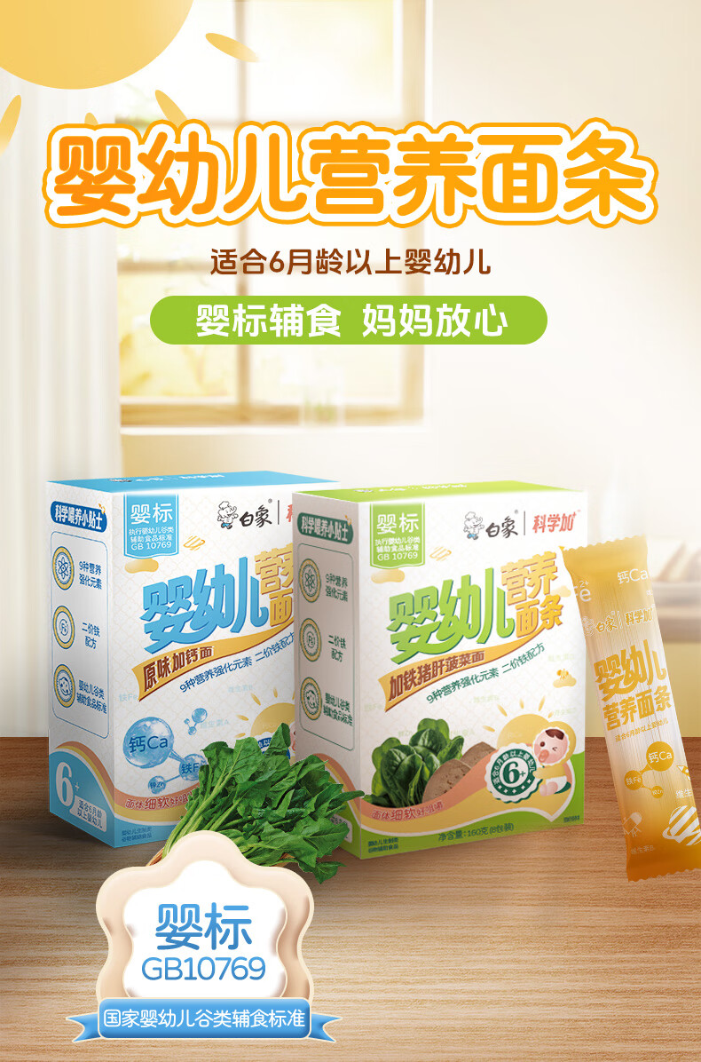 白象 挂面 婴幼儿营养面条宝宝辅食 儿童碎碎面 原味加钙160g*3盒装
