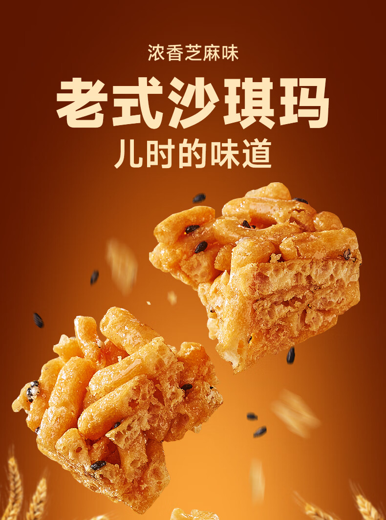 比比赞(BIBIZAN)芝麻老式沙琪玛500g饱腹代餐饼干老人休闲零食早餐面包下午茶点心