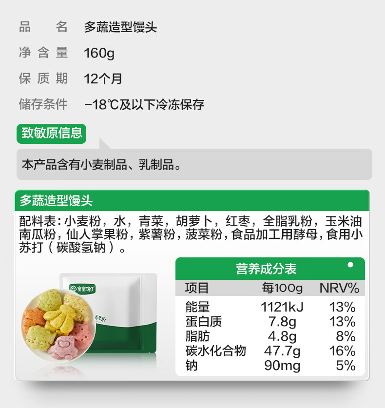 宝宝馋了多蔬造型馒头160g儿童早餐半成品无添加糖送宝宝婴幼儿辅食谱