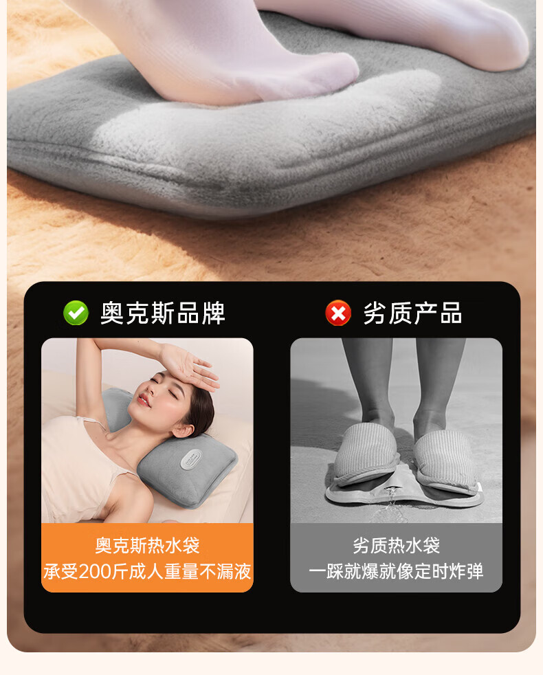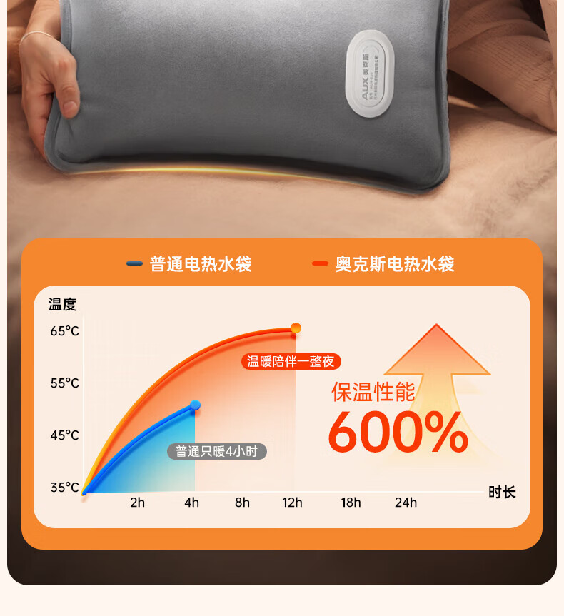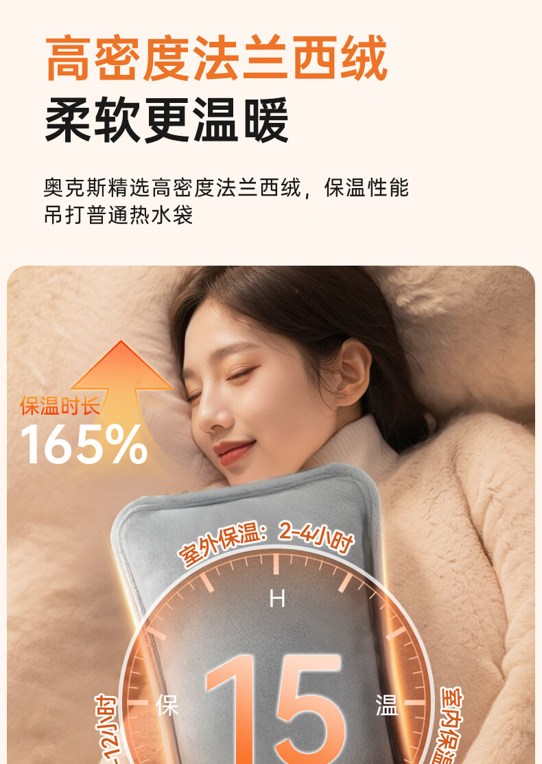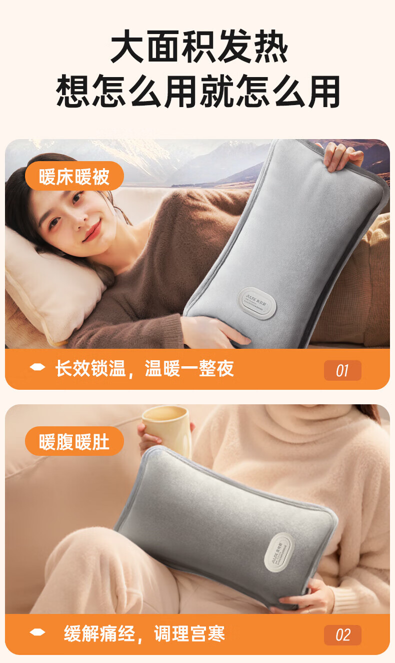奥克斯(AUX)【大号更热|暖全身】热水袋暖水袋充电大号暖手宝被窝暖手脚神器
