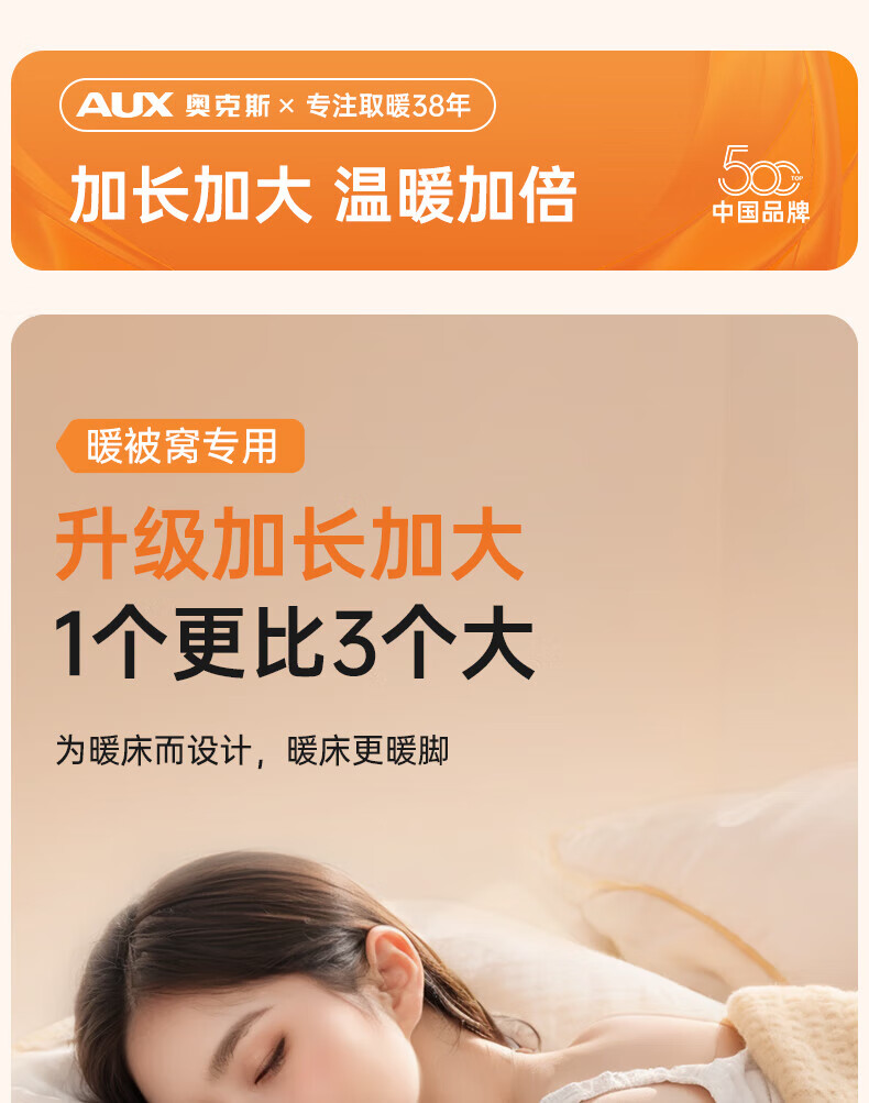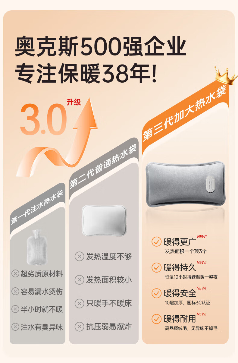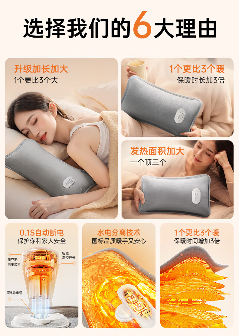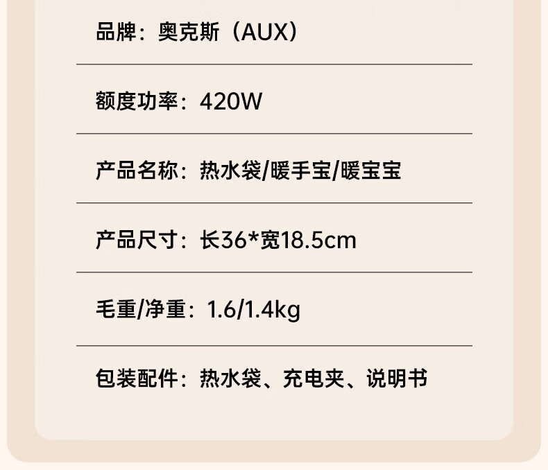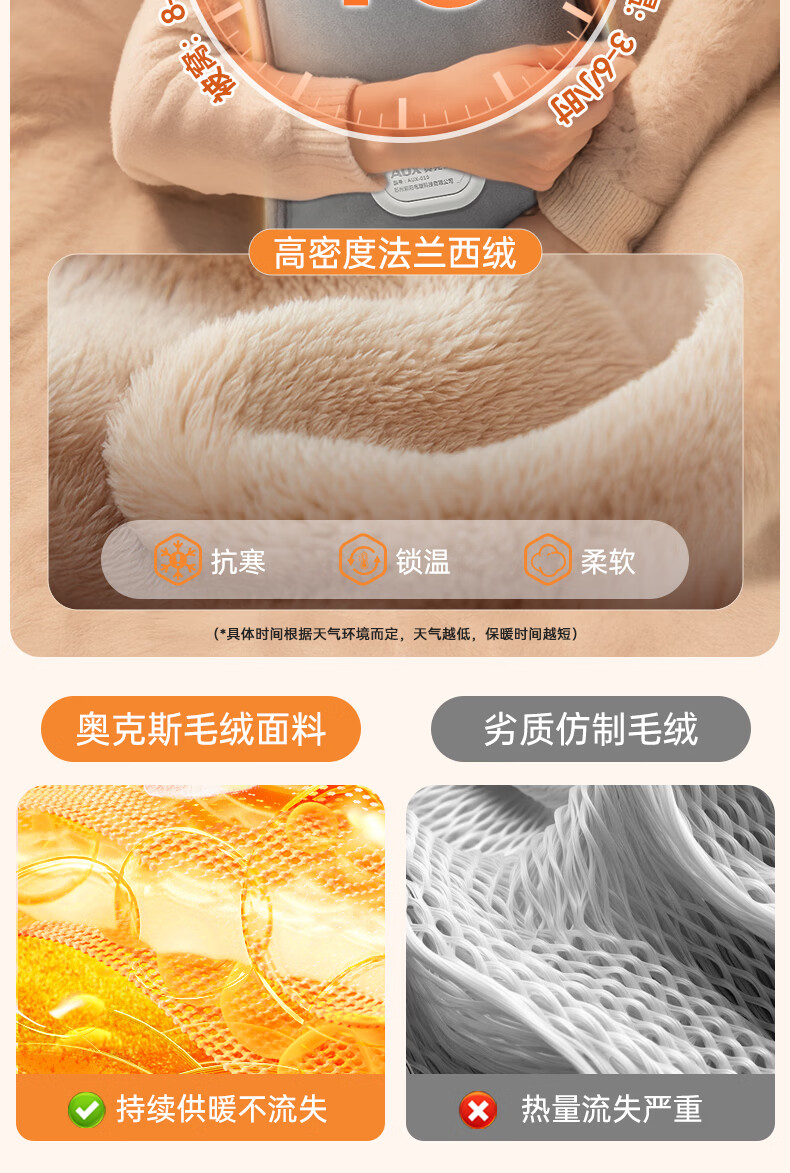 奥克斯(AUX)【大号更热|暖全身】热水袋暖水袋充电大号暖手宝被窝暖手脚神器