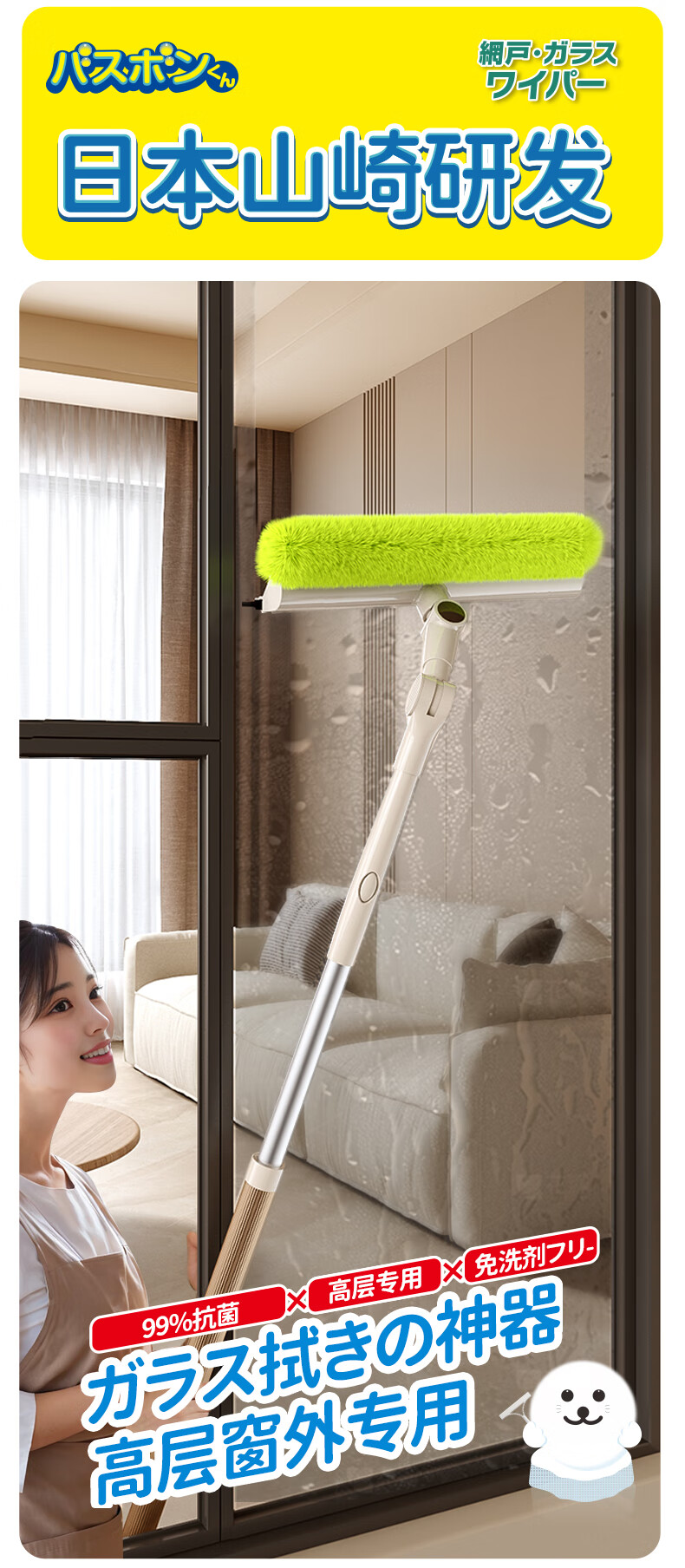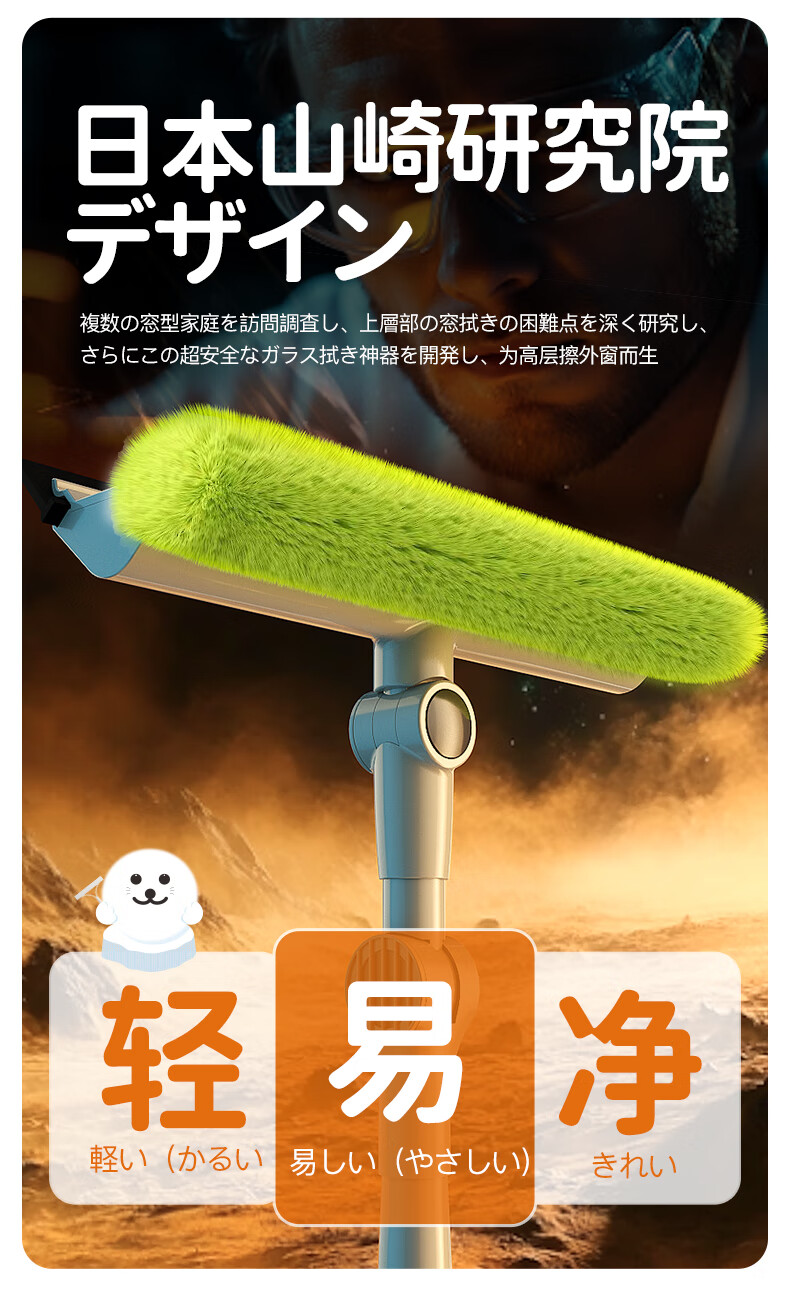 CONDOR日本擦玻璃神器高层窗外双面长杆玻璃刮水擦窗清洁纱窗刷神器