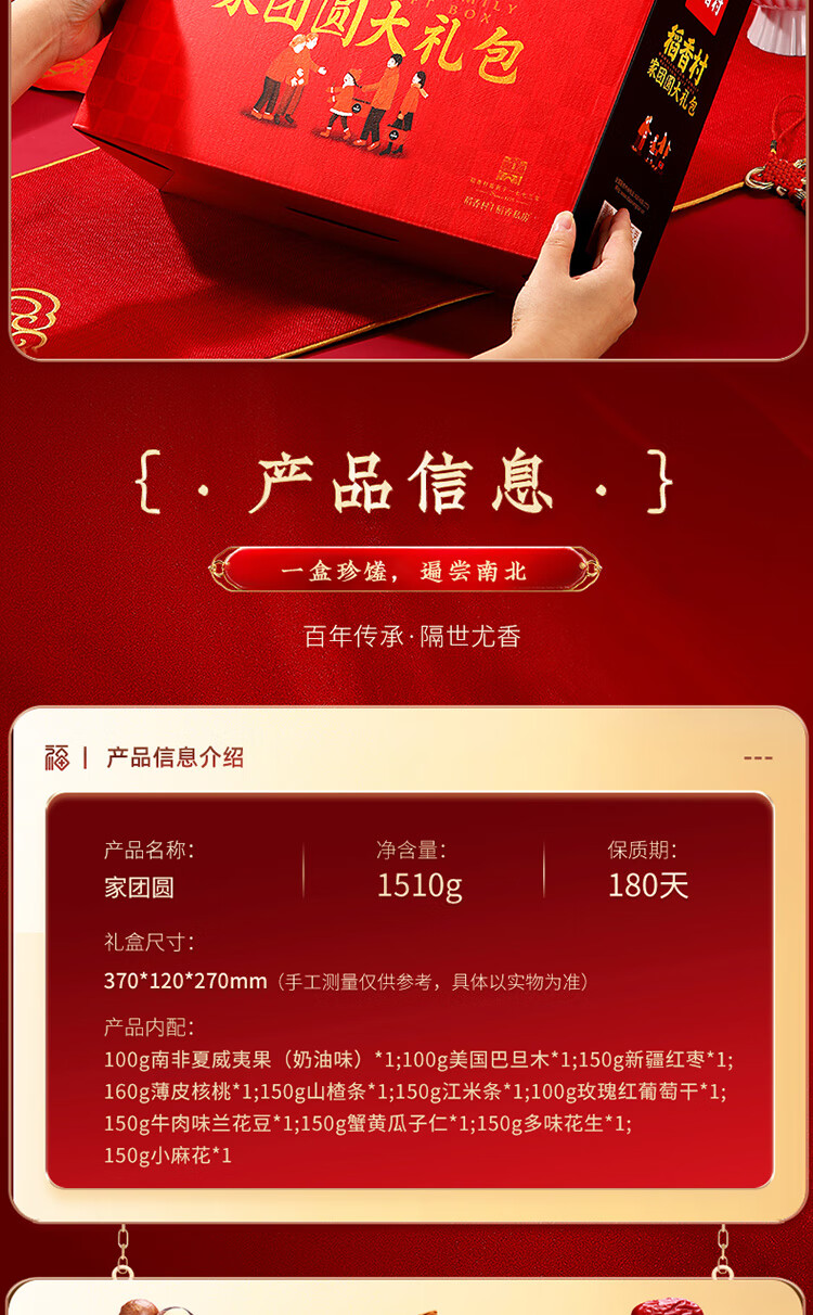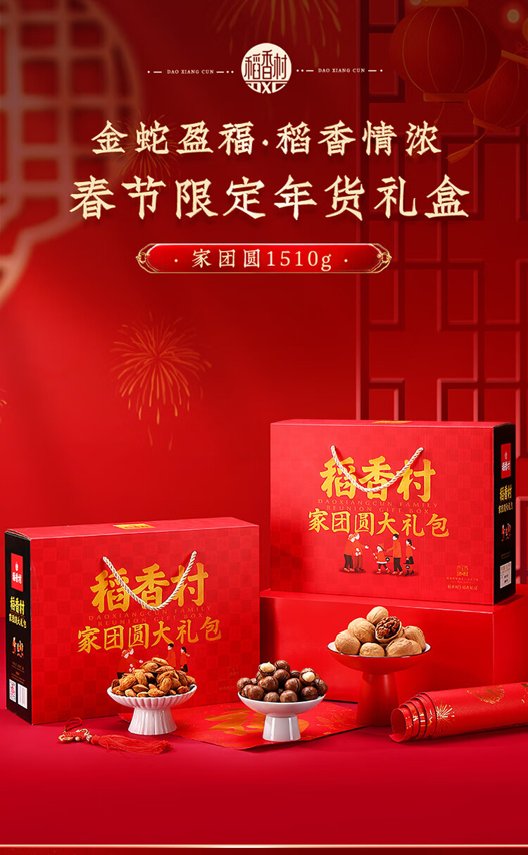 稻香村年货礼盒坚果礼盒 坚果干果零食大礼包 家团圆1510g