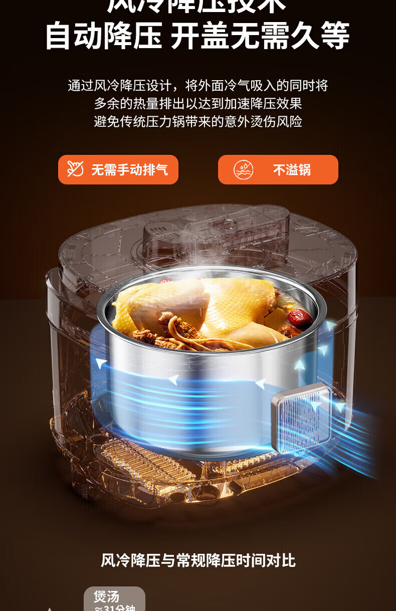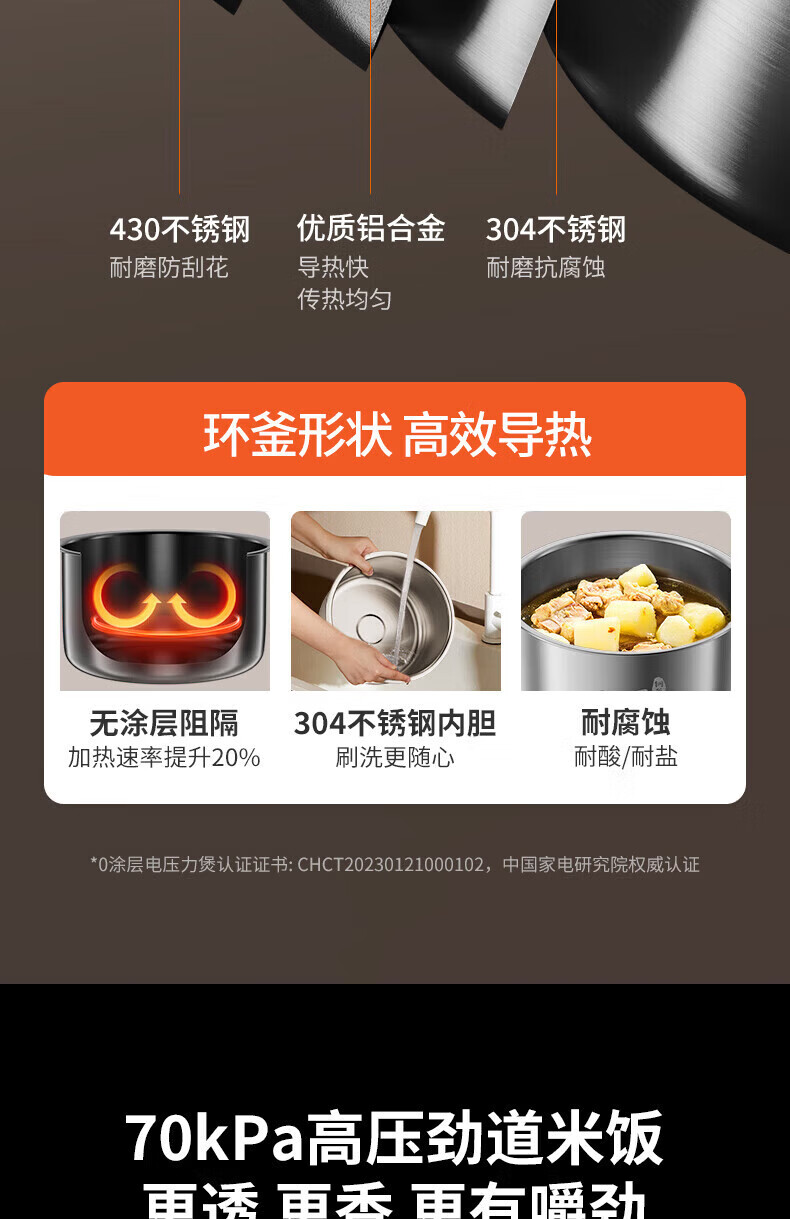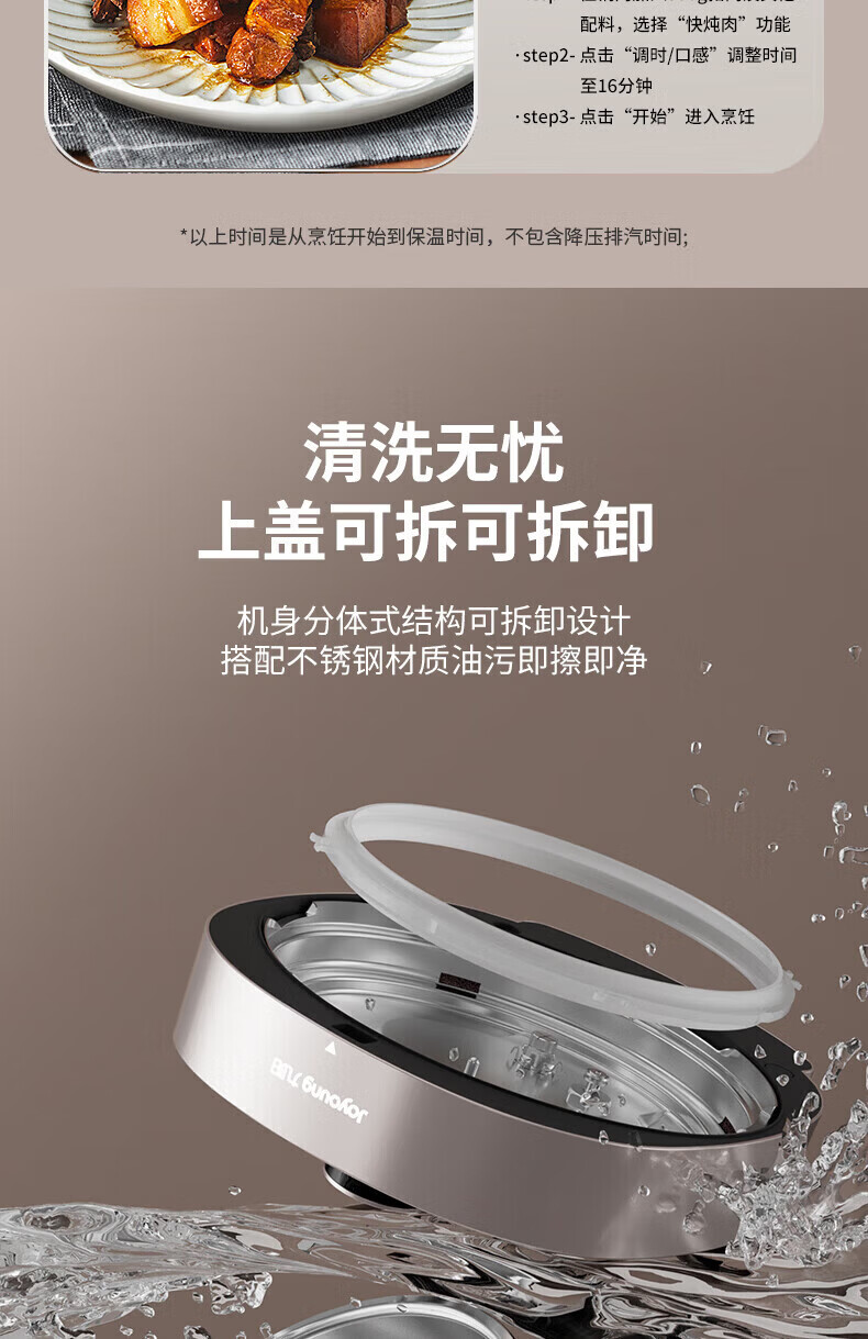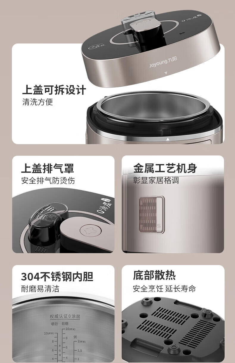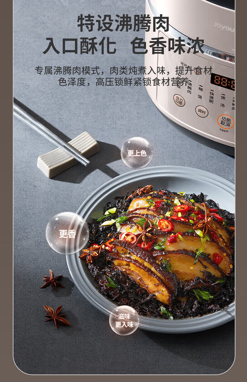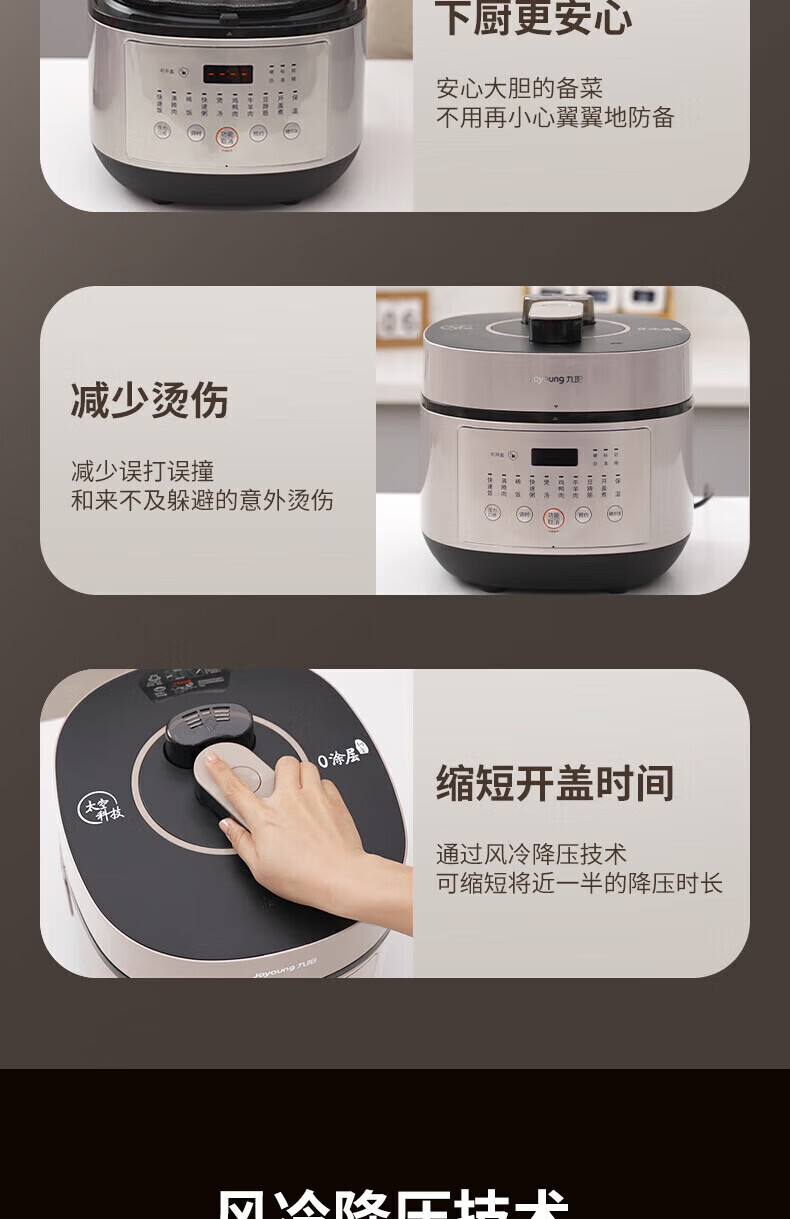 九阳(Joyoung)电压力锅家用不锈钢钢釜太空系列 3-10人电饭煲0涂层压力煲水润膜不粘风冷降压煮饭煲汤5L大容量 50NS1【0涂层钢釜】 5L