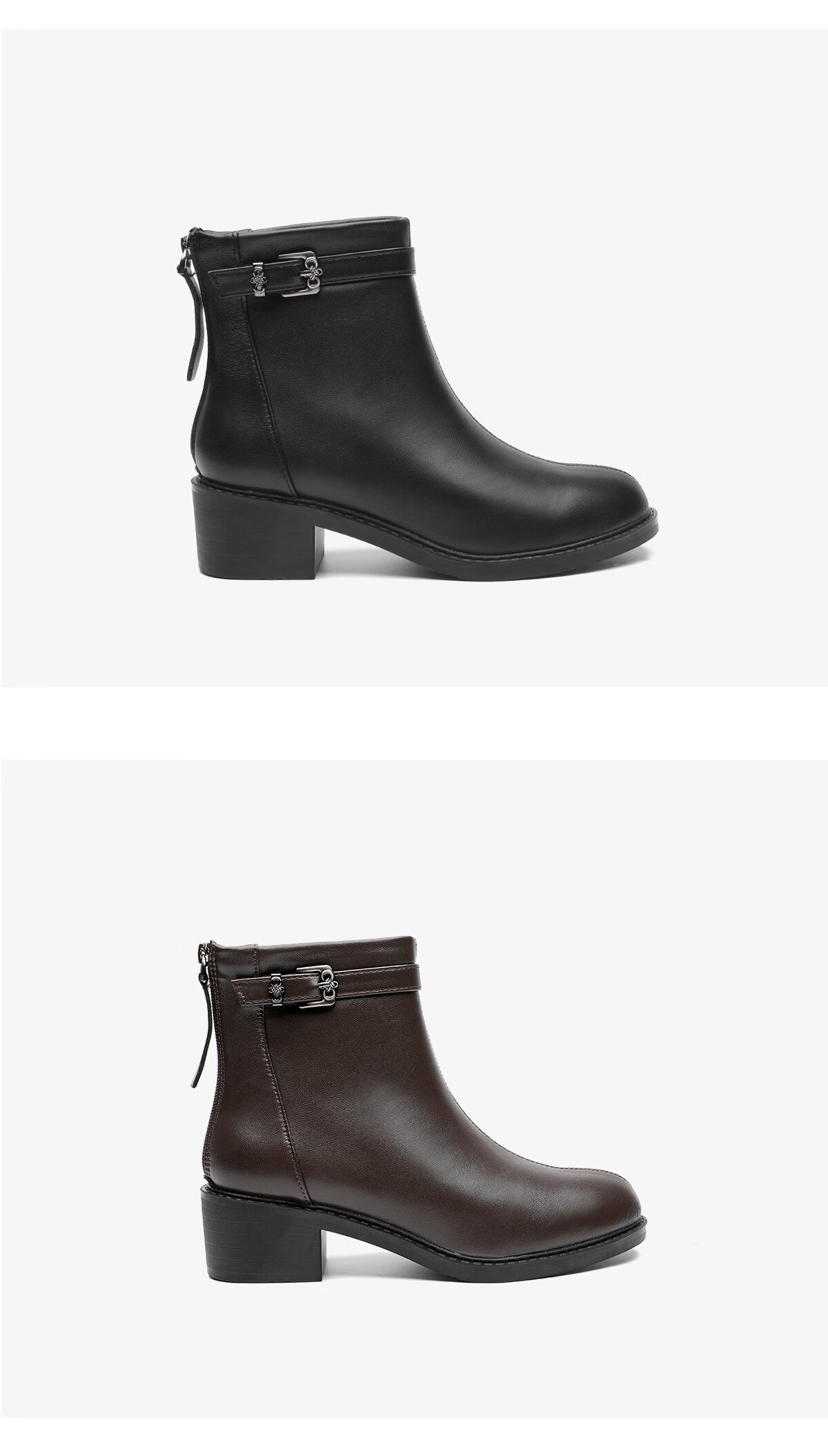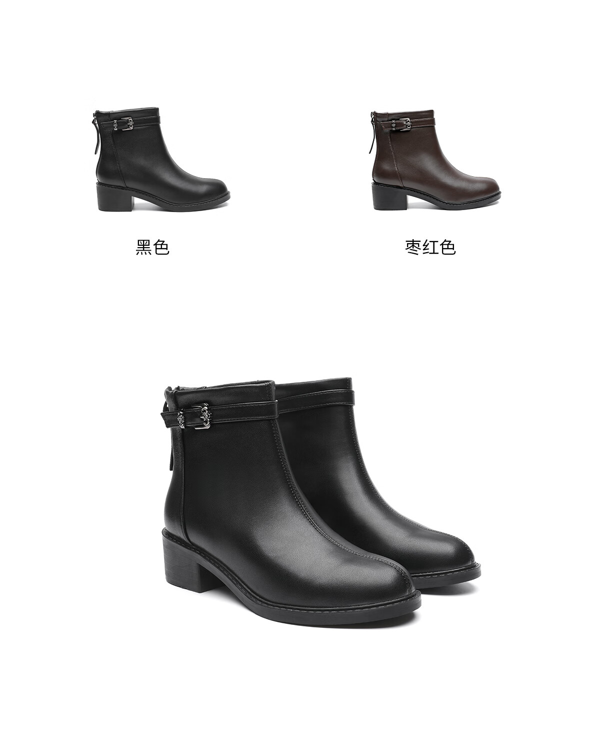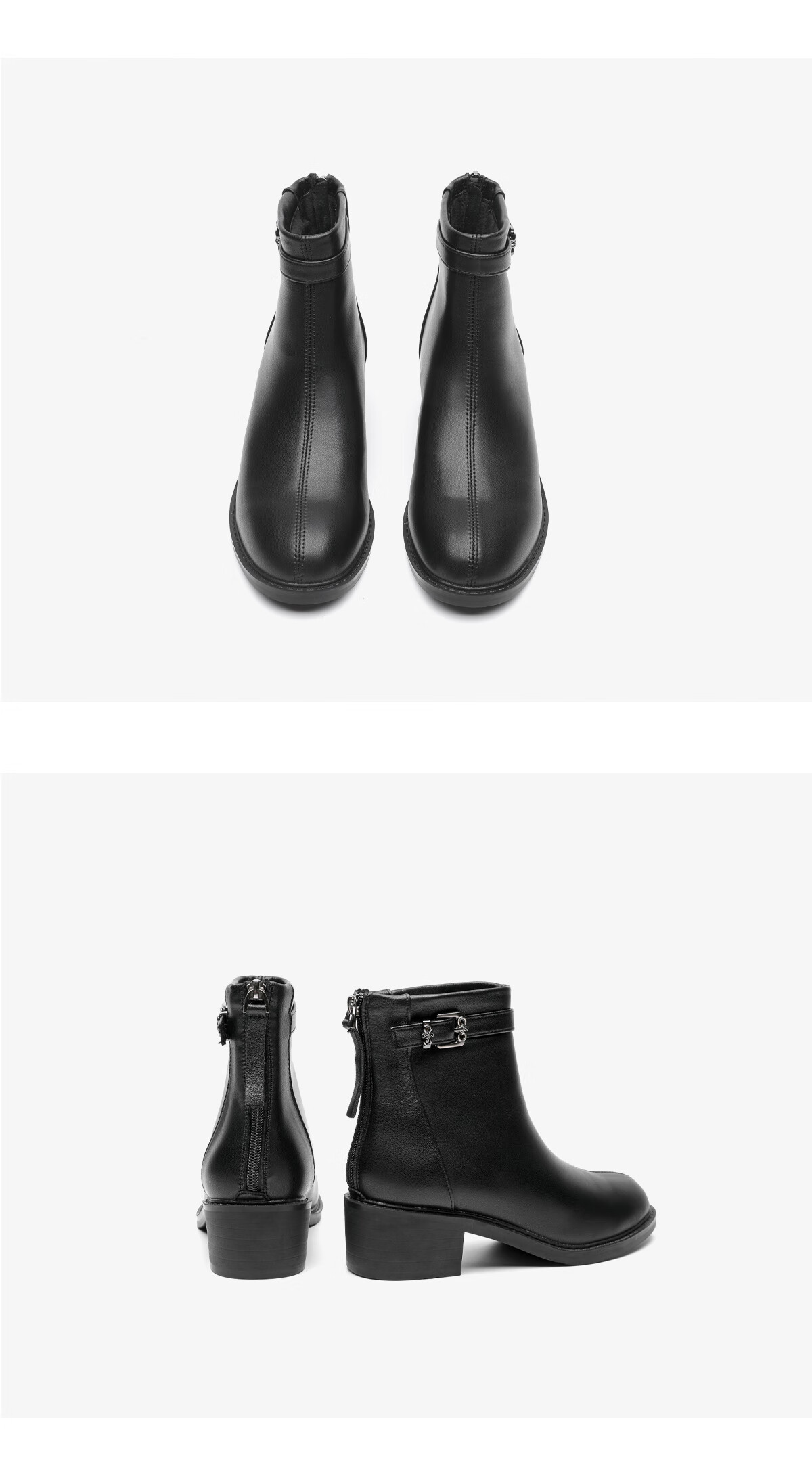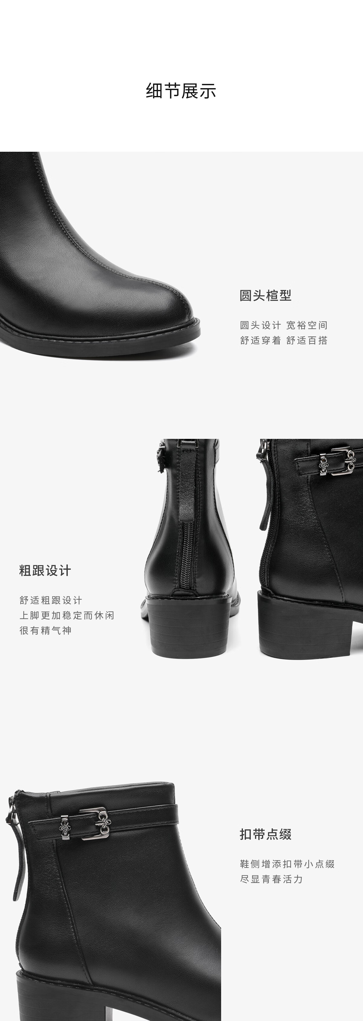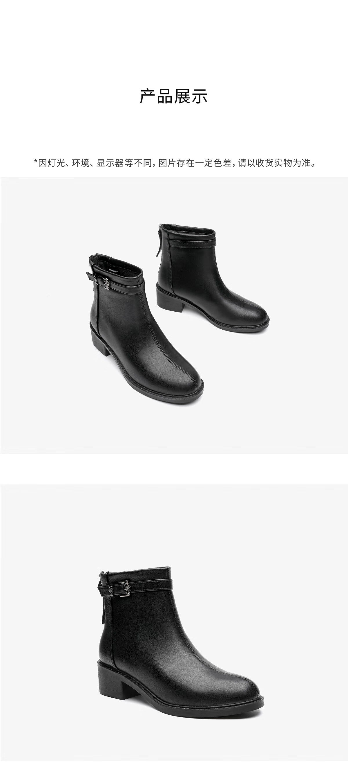 月芽儿英伦圆头短靴女瘦瘦靴冬季2025新款加绒显脚小百搭靴子 绒里黑色01T 34