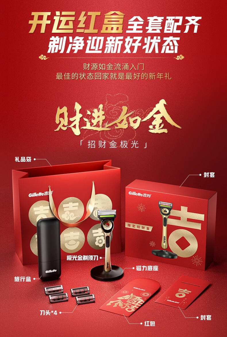 吉列极光刀 剃须刮胡须刀手动差旅便携款 1刀架4刀头1旅行盒 男士情人节礼物 京东自营旗舰 非吉利 马年年货礼盒