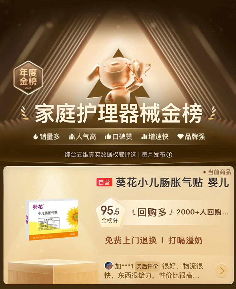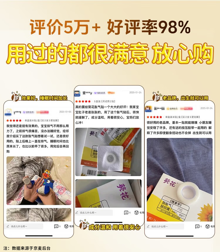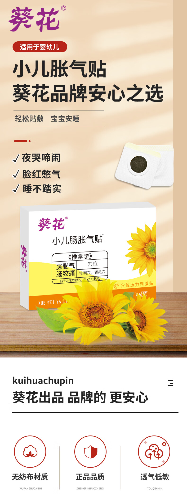 葵花胀气贴婴儿0-3个月小儿防胀气贴二月闹肠绞痛神器脚底 单盒装
