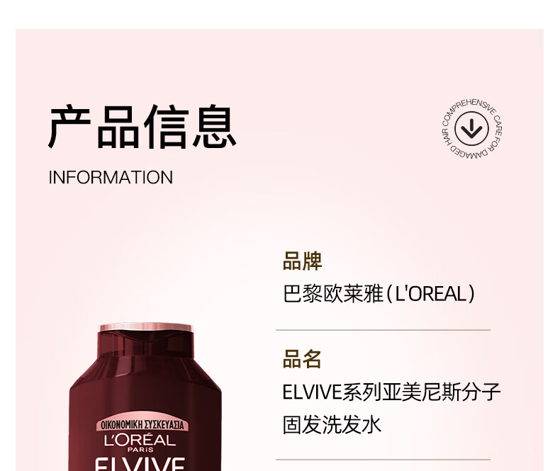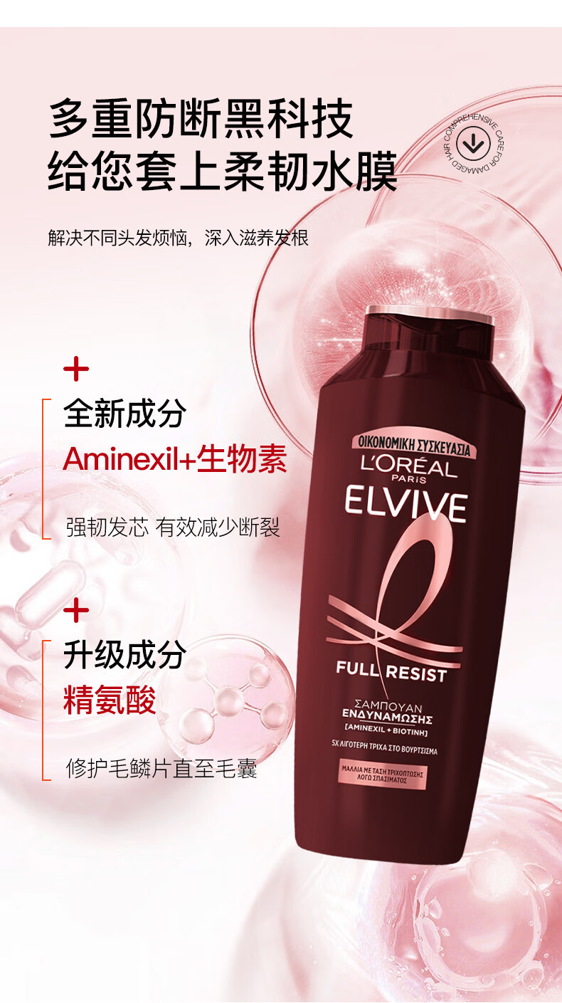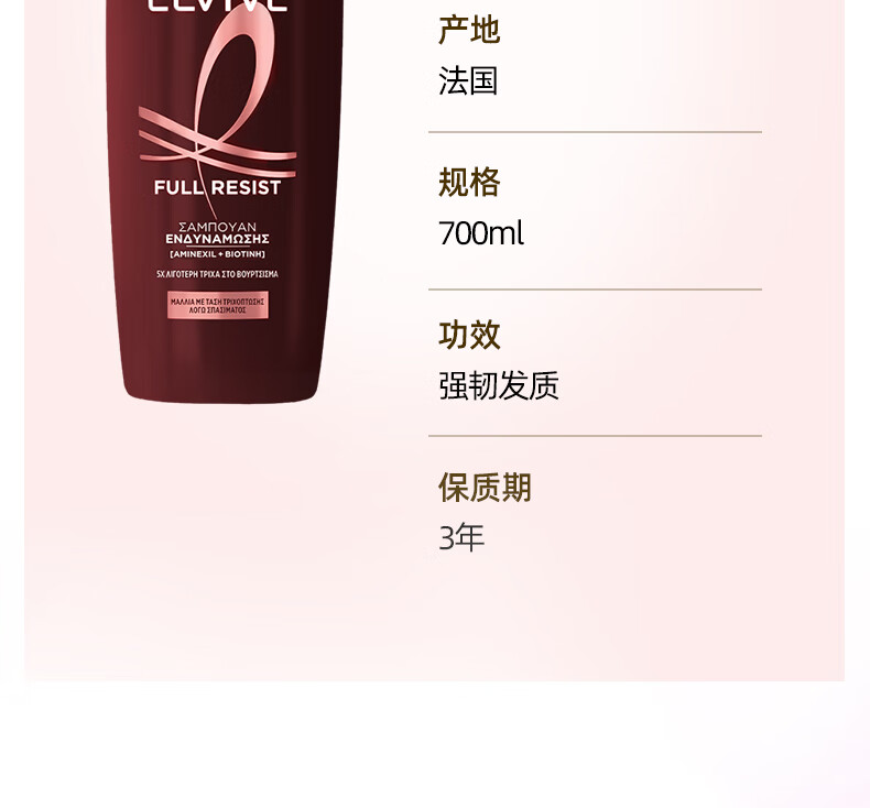 欧莱雅减少脱发促进生长强韧秀发沙龙级专利配方强韧防脱洗发水700ml