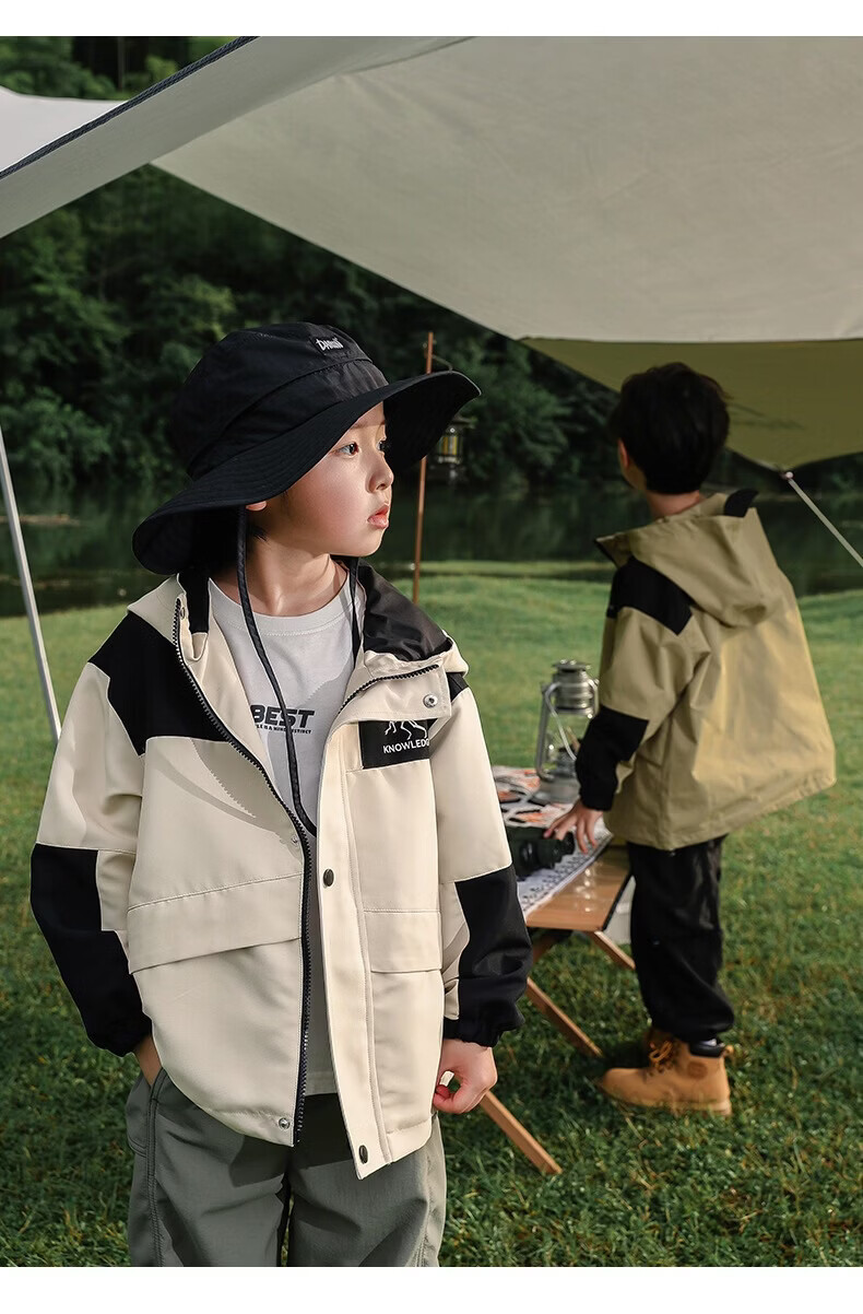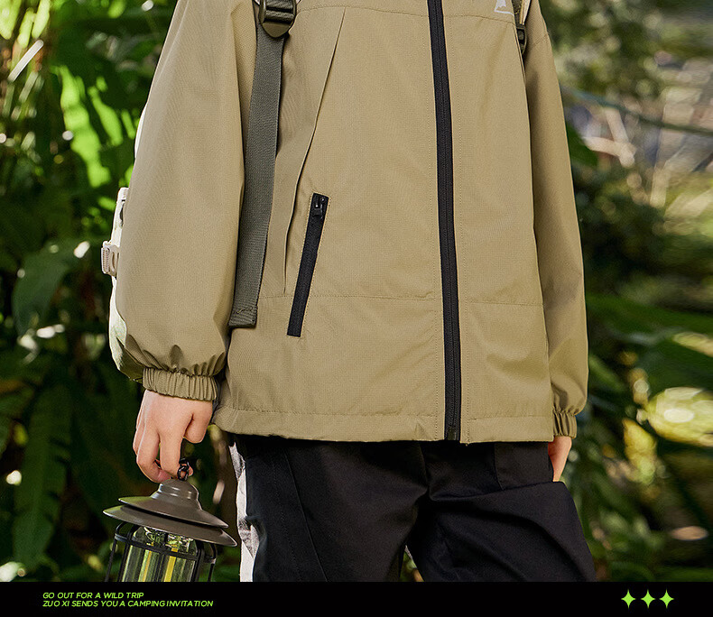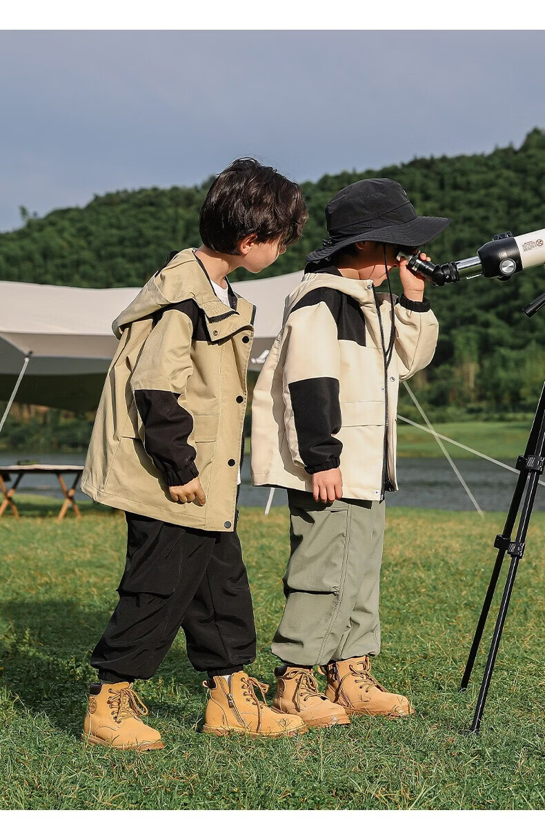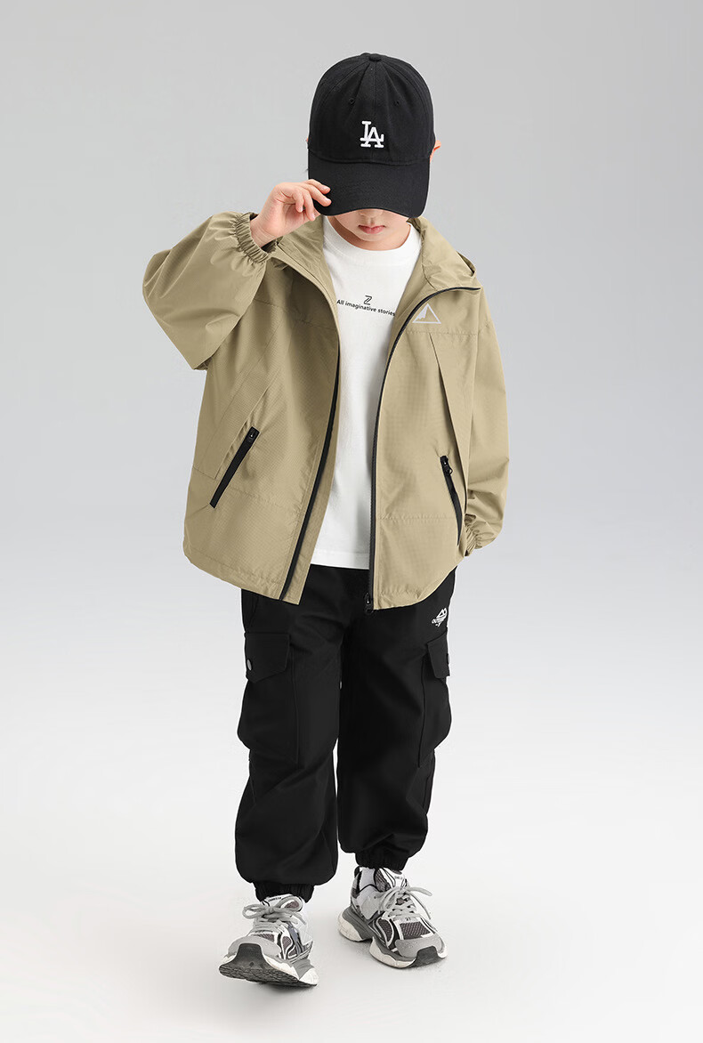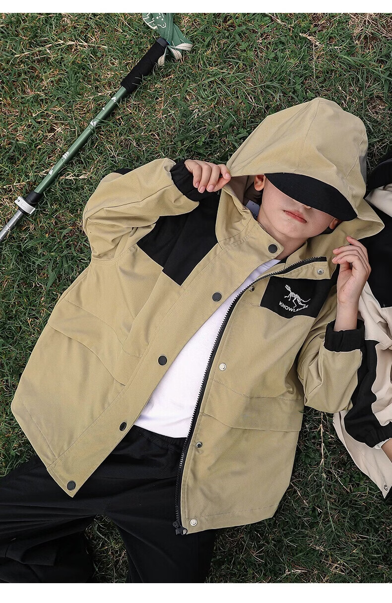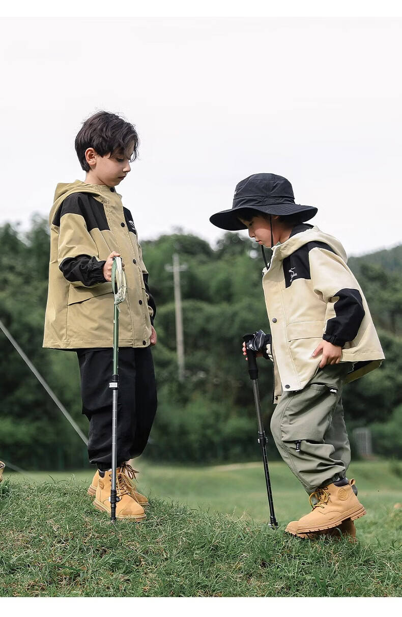 小猪班纳(PEPCO)儿童山系防水户外冲锋衣纯色防风反光外套中大童装春秋夹克潮 卡其/黑【彩虹单外套】 130 建议身高120-130cm