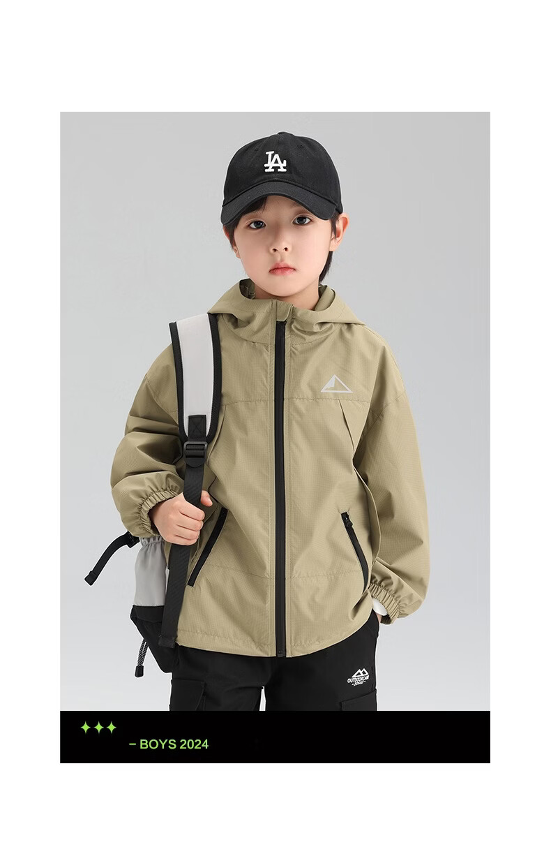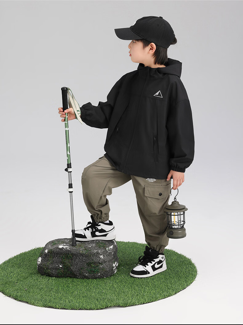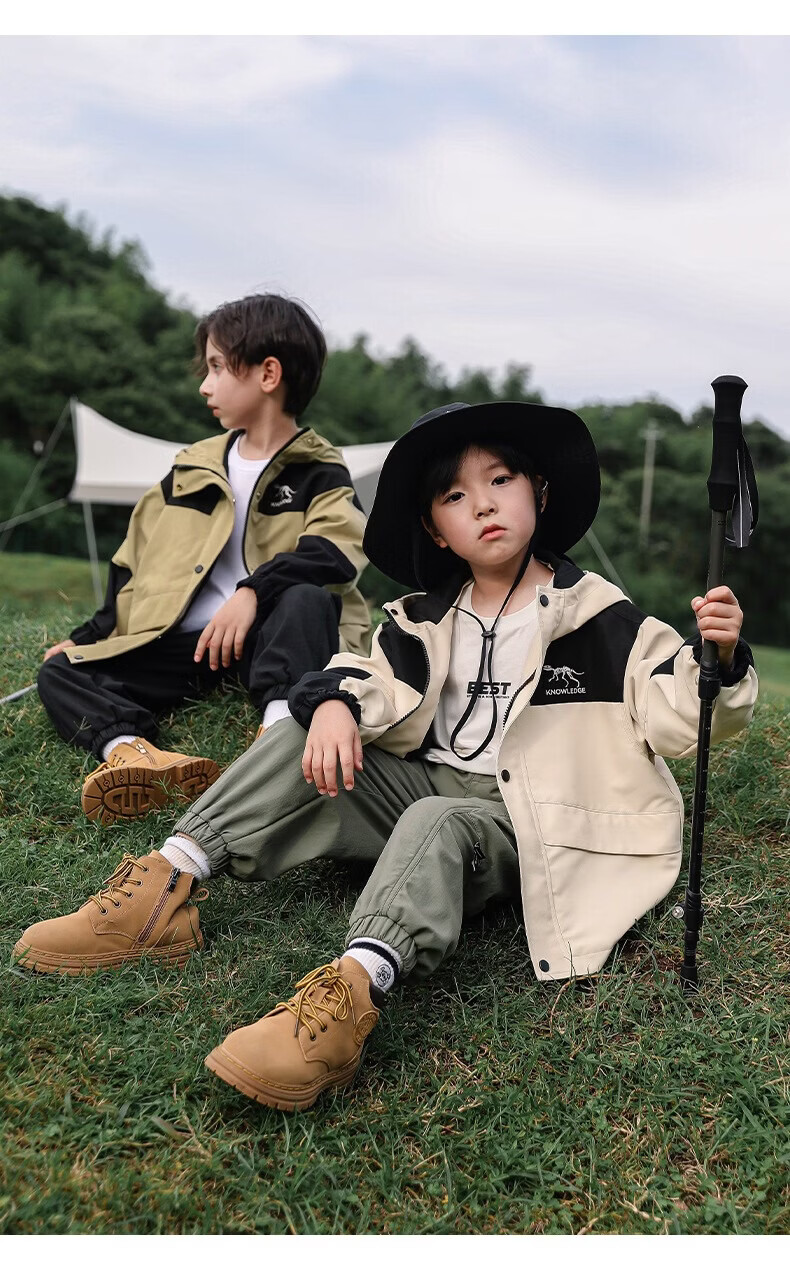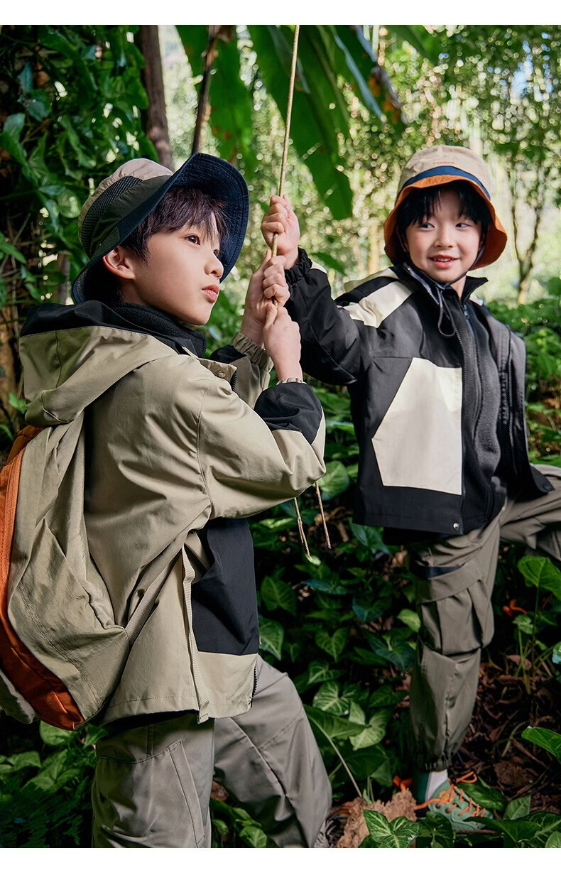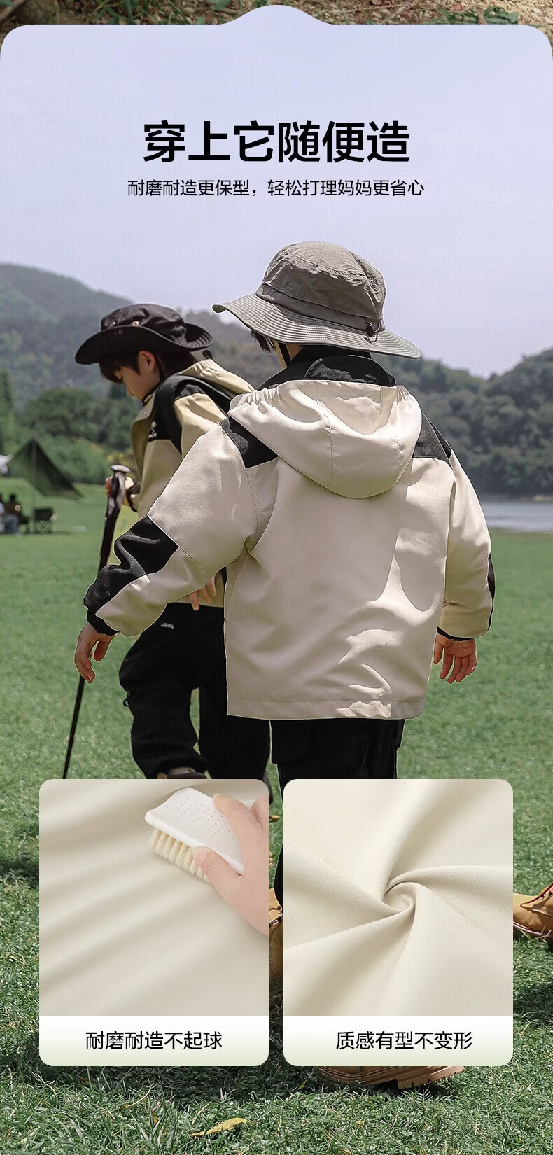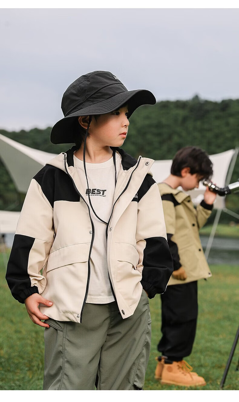 小猪班纳(PEPCO)儿童山系防水户外冲锋衣纯色防风反光外套中大童装春秋夹克潮 卡其/黑【彩虹单外套】 130 建议身高120-130cm