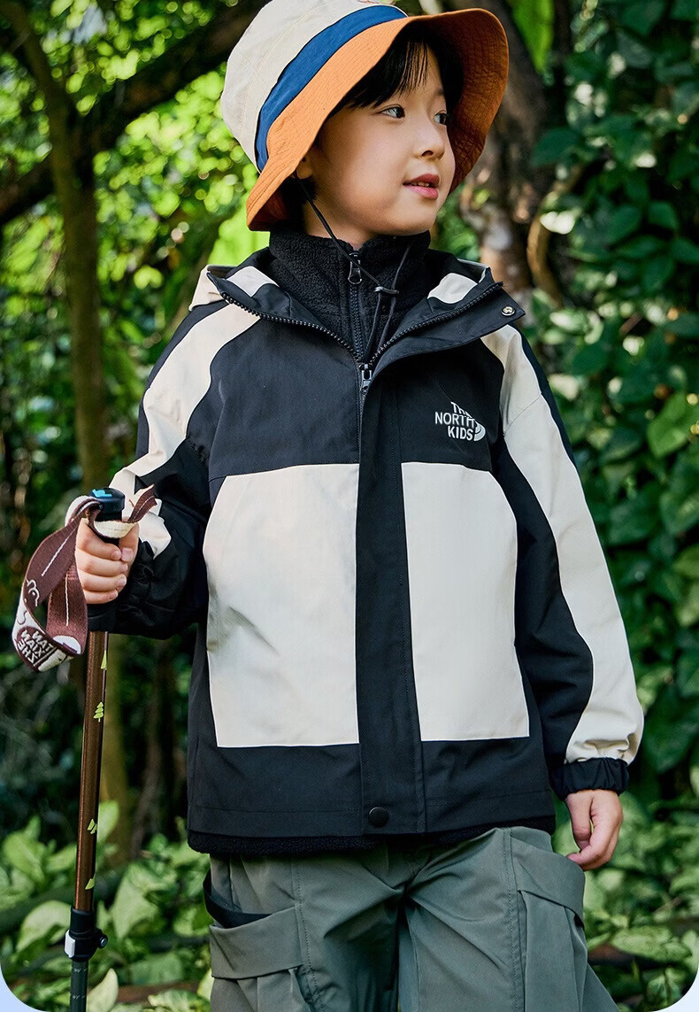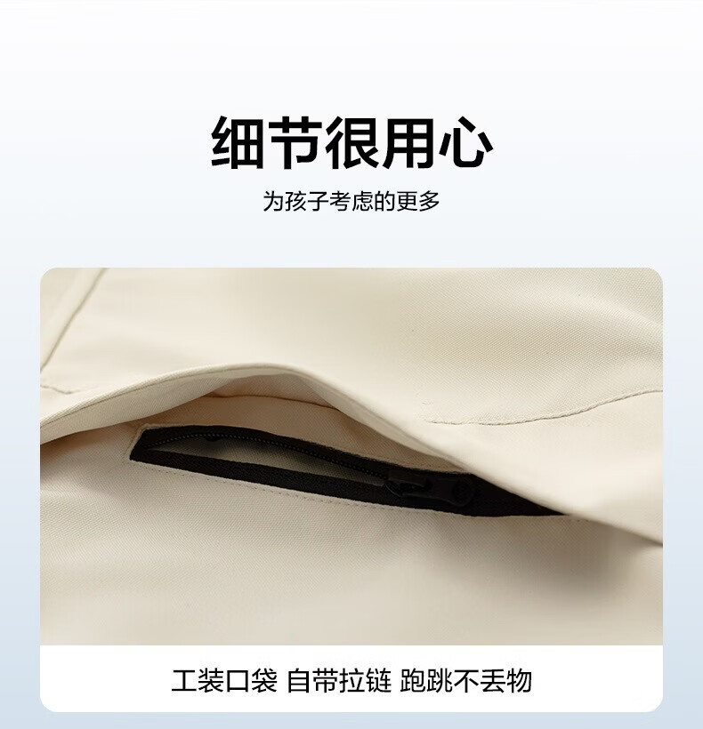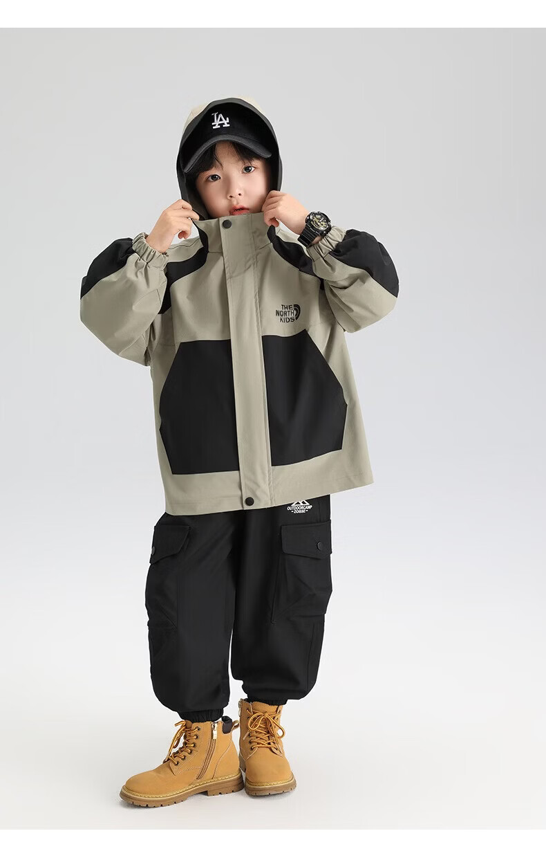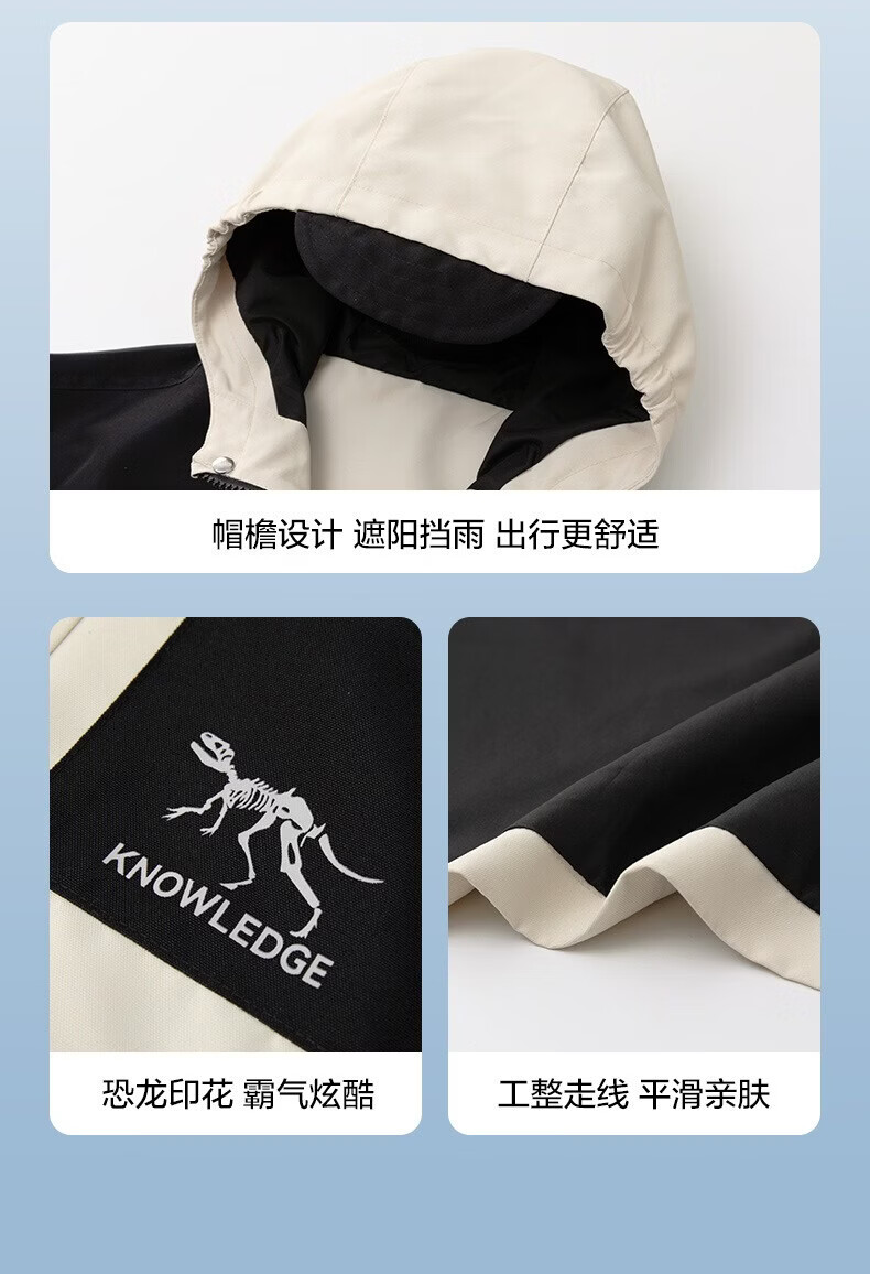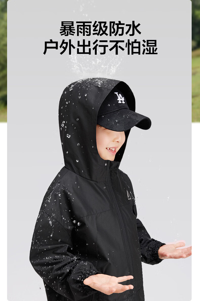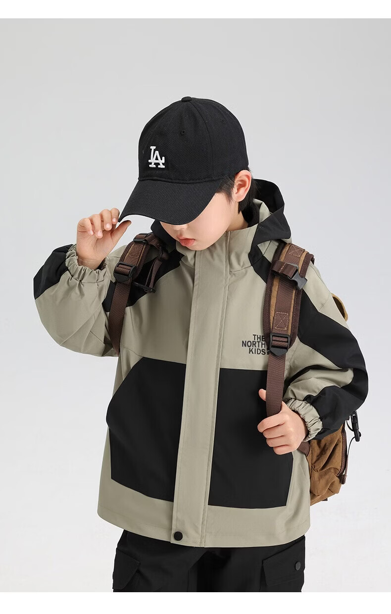 小猪班纳(PEPCO)儿童山系防水户外冲锋衣纯色防风反光外套中大童装春秋夹克潮 卡其/黑【彩虹单外套】 130 建议身高120-130cm
