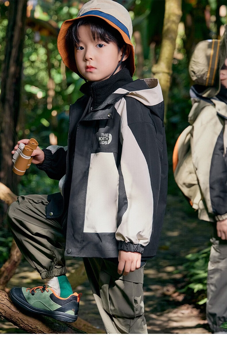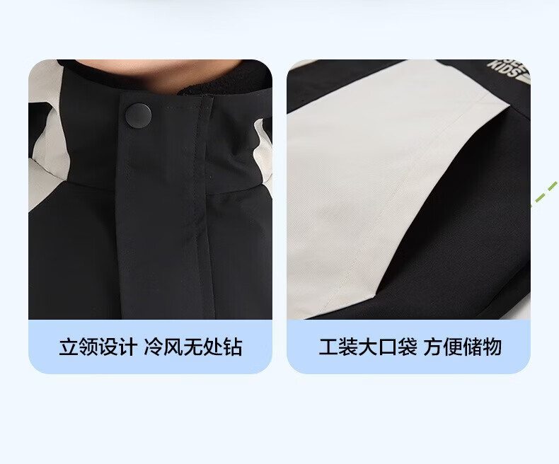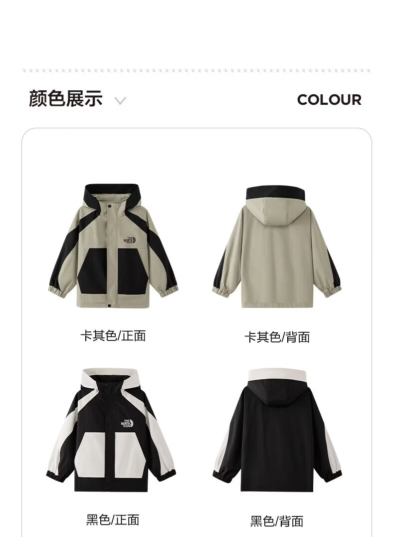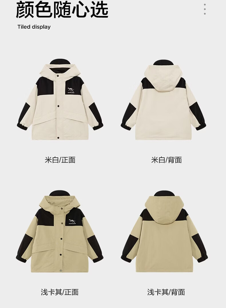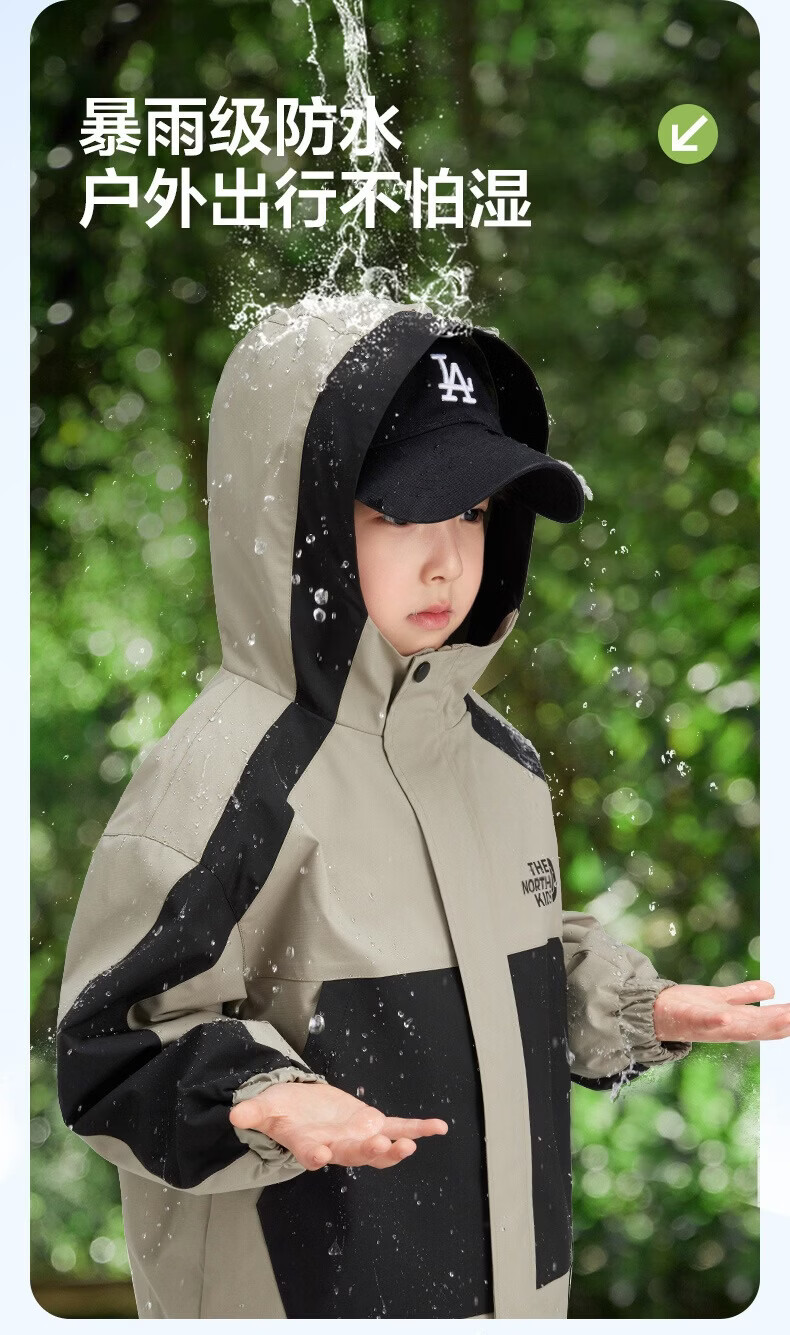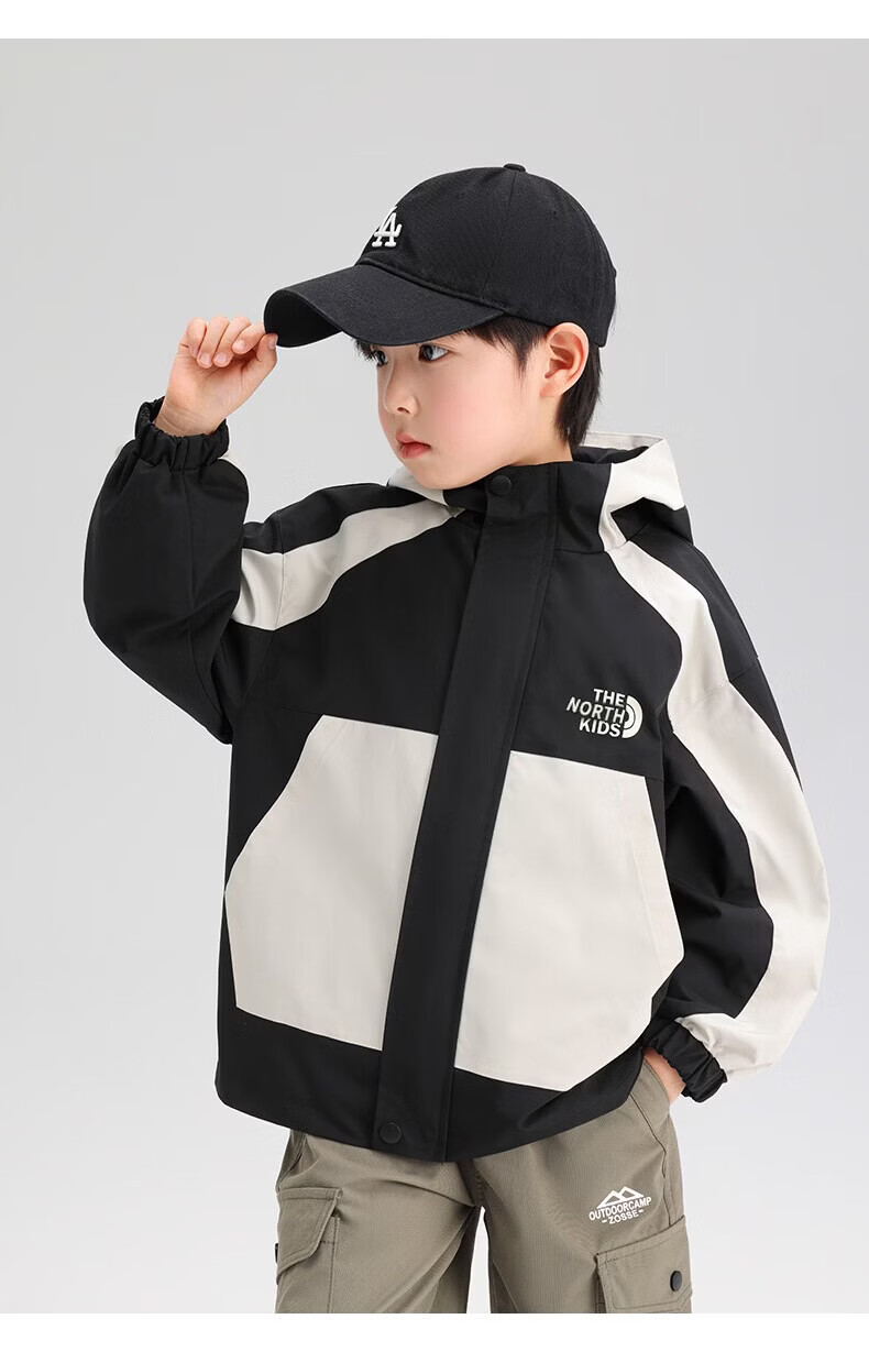 小猪班纳(PEPCO)儿童山系防水户外冲锋衣纯色防风反光外套中大童装春秋夹克潮 卡其/黑【彩虹单外套】 130 建议身高120-130cm