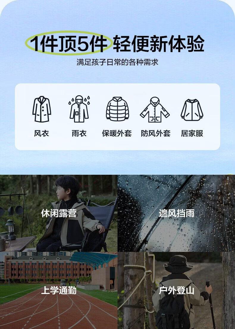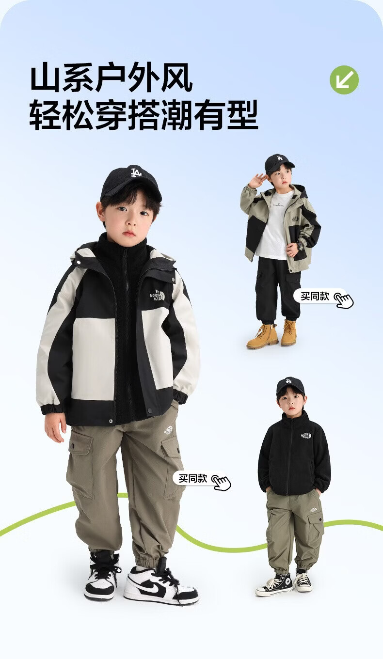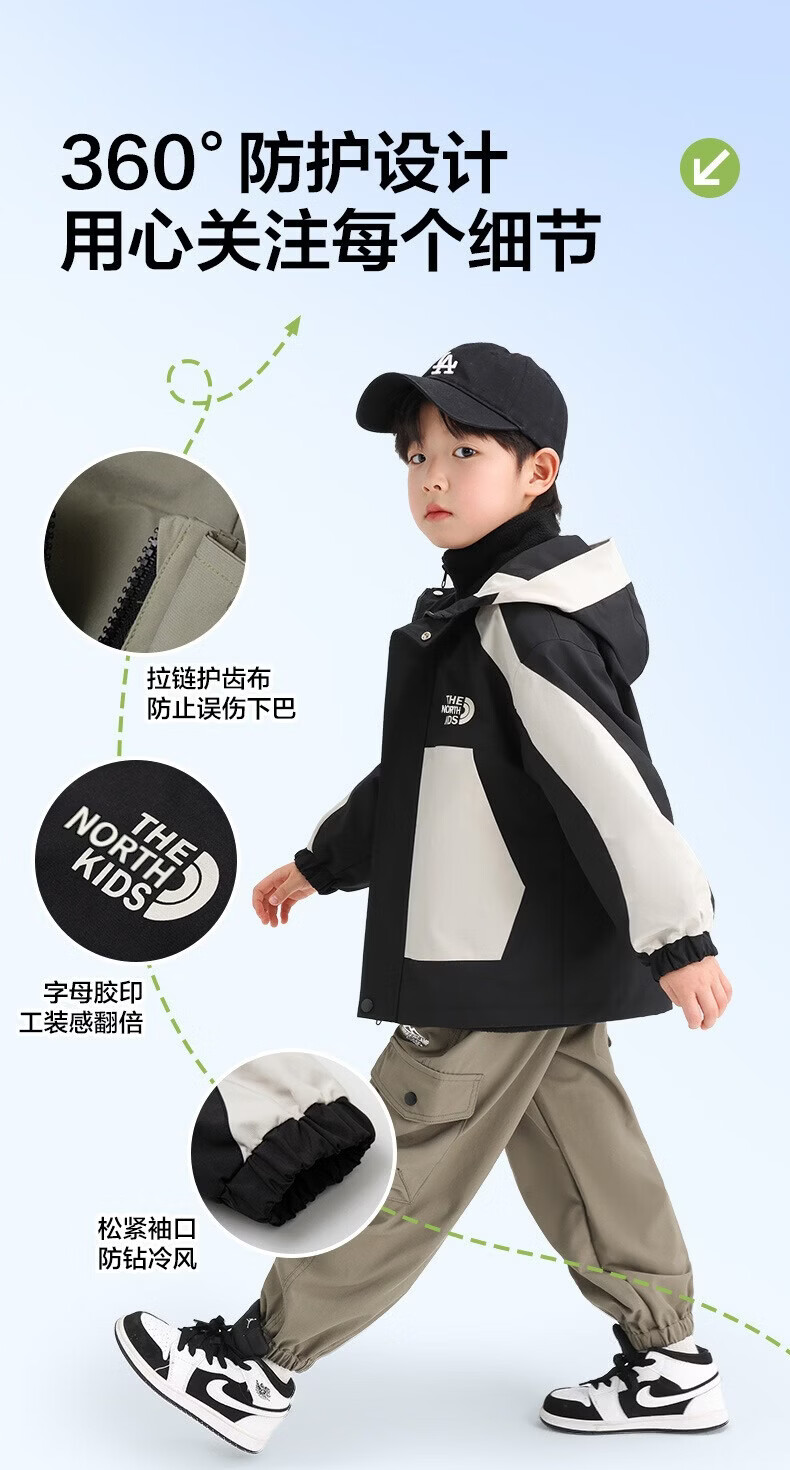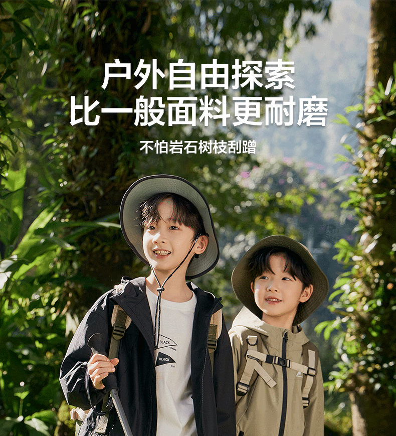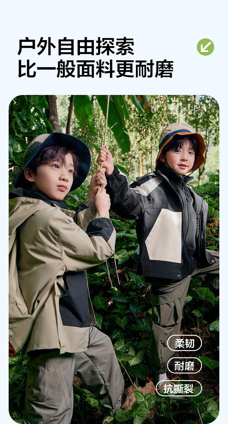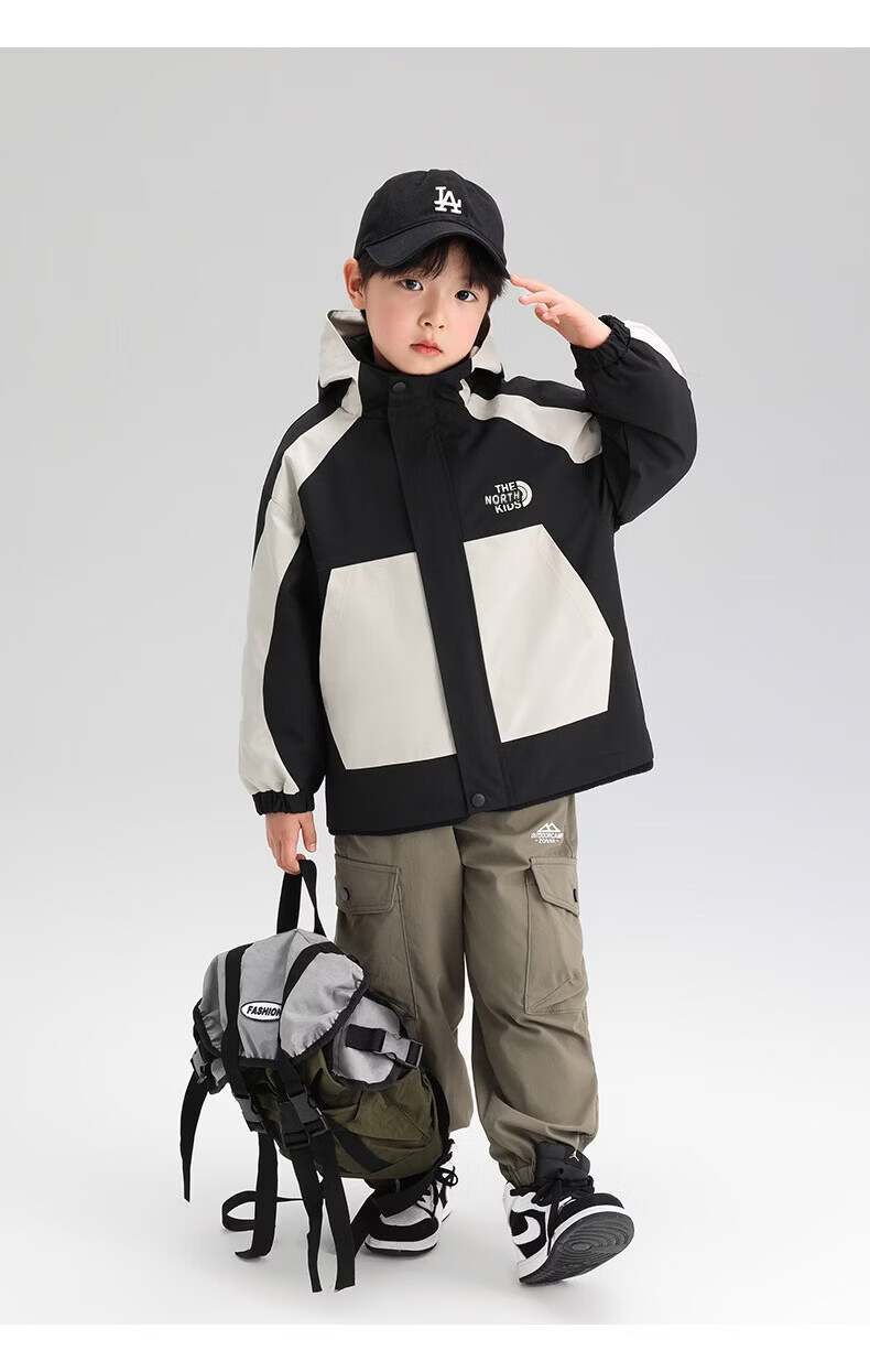 小猪班纳(PEPCO)儿童山系防水户外冲锋衣纯色防风反光外套中大童装春秋夹克潮 卡其/黑【彩虹单外套】 130 建议身高120-130cm