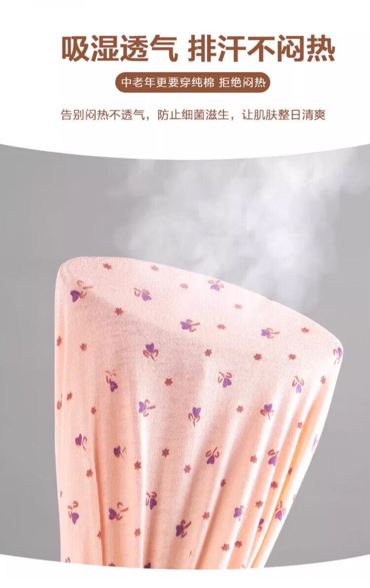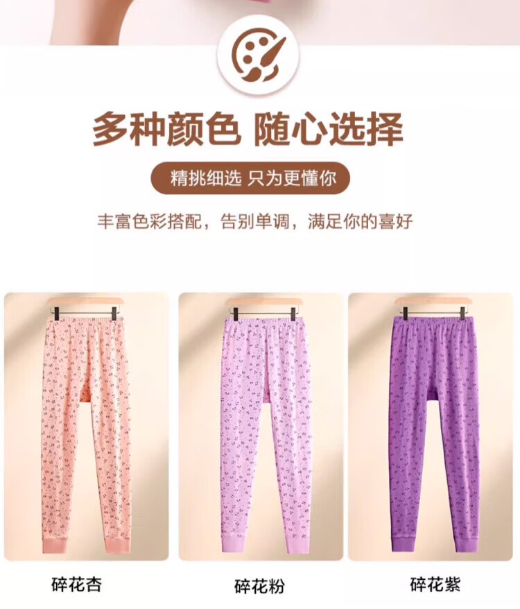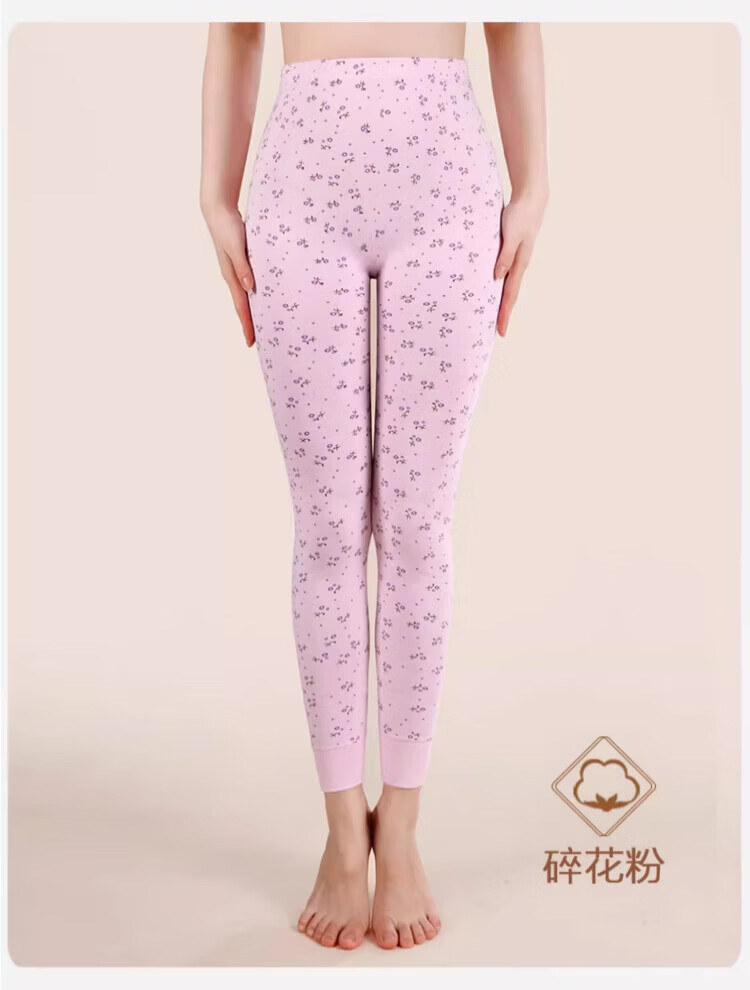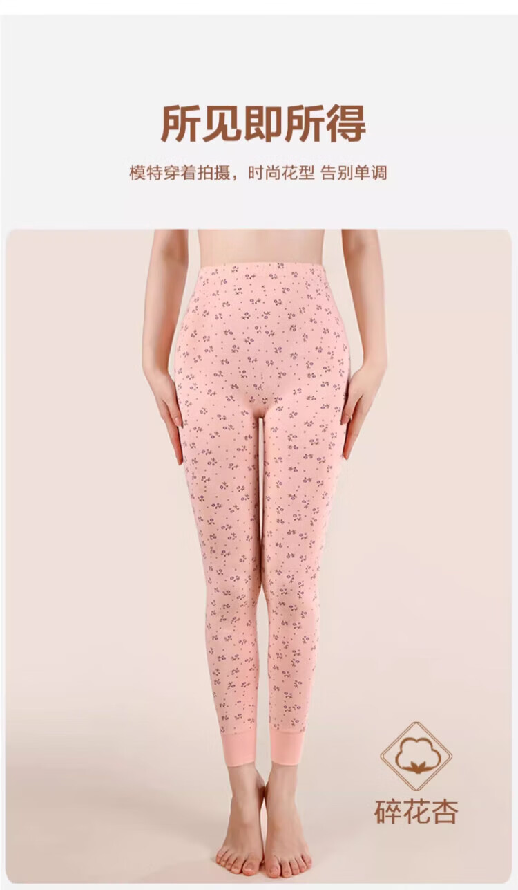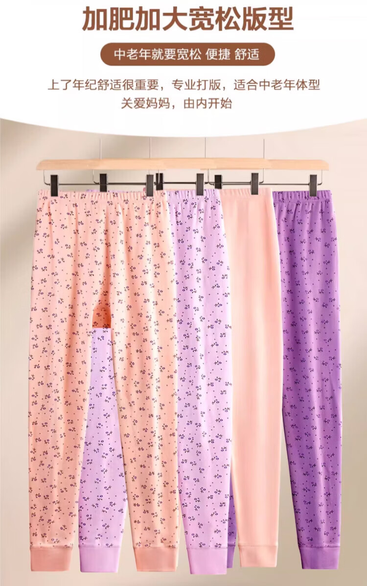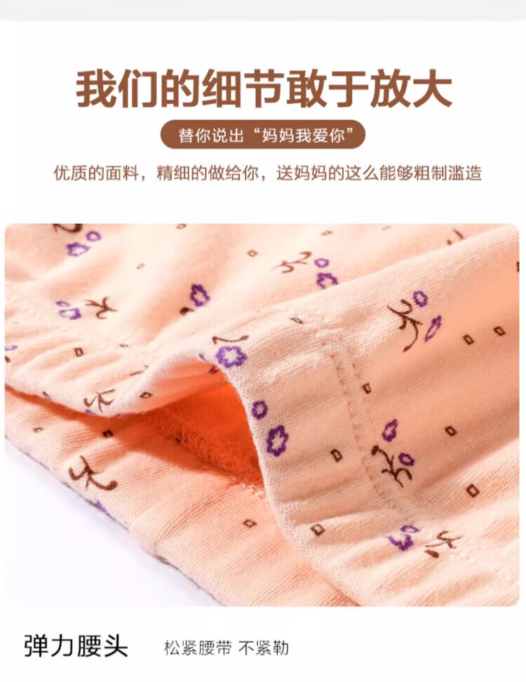 LangSha秋裤女士纯棉中老年人妈妈打底裤大码全棉毛裤宽松保暖高腰花衬裤 碎花杏 (100%棉裤) M (建议80-100斤)