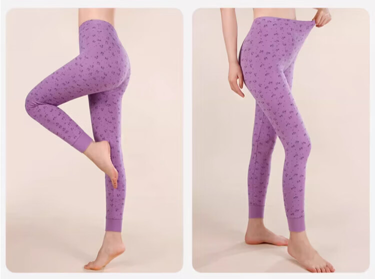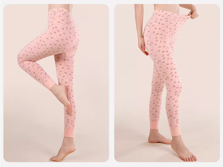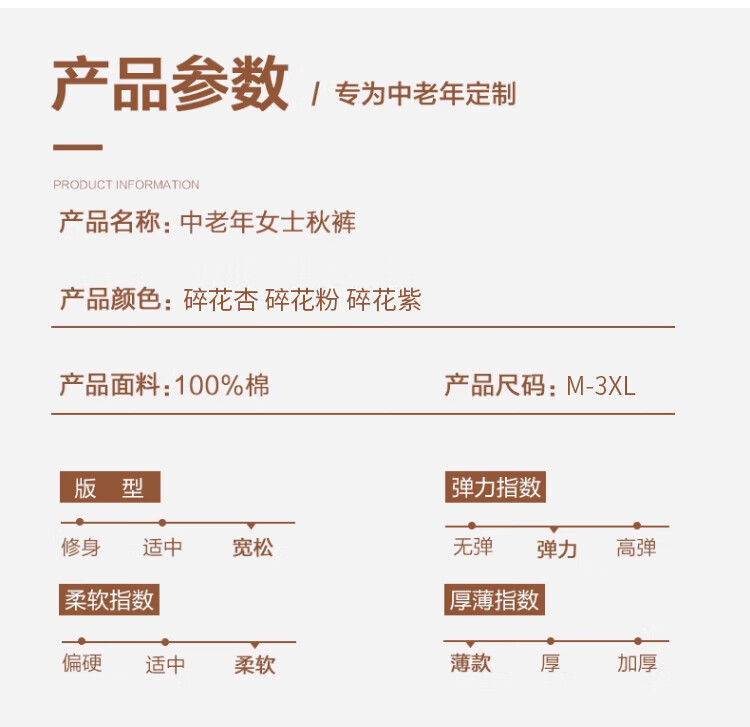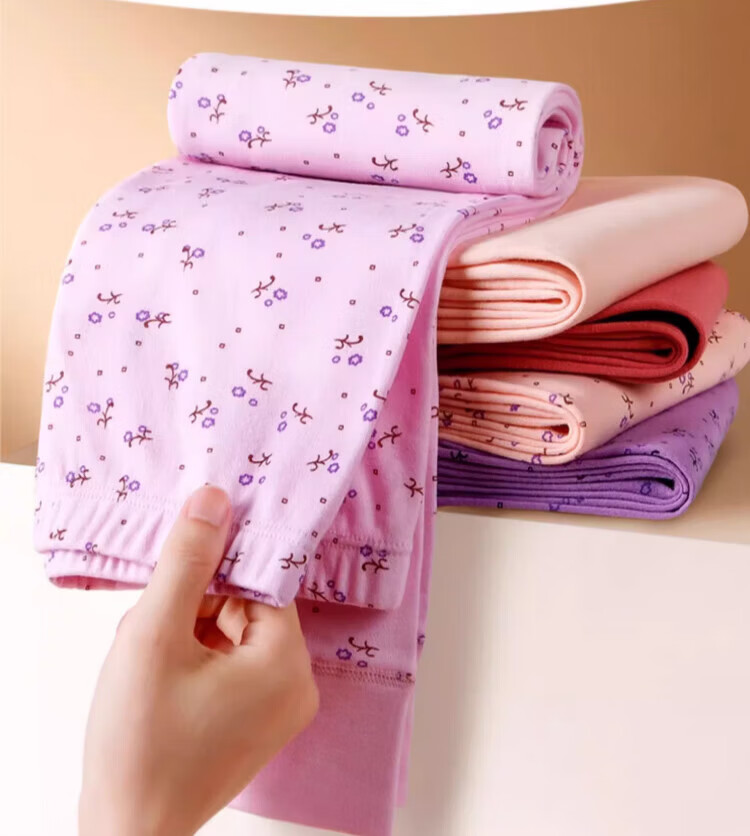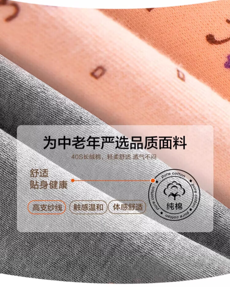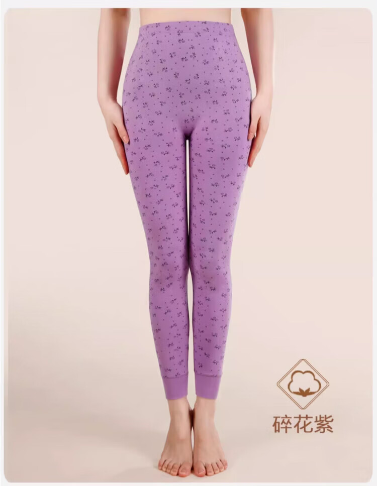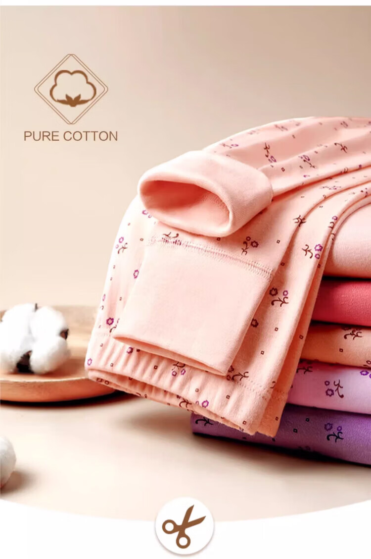 LangSha秋裤女士纯棉中老年人妈妈打底裤大码全棉毛裤宽松保暖高腰花衬裤 碎花杏 (100%棉裤) M (建议80-100斤)