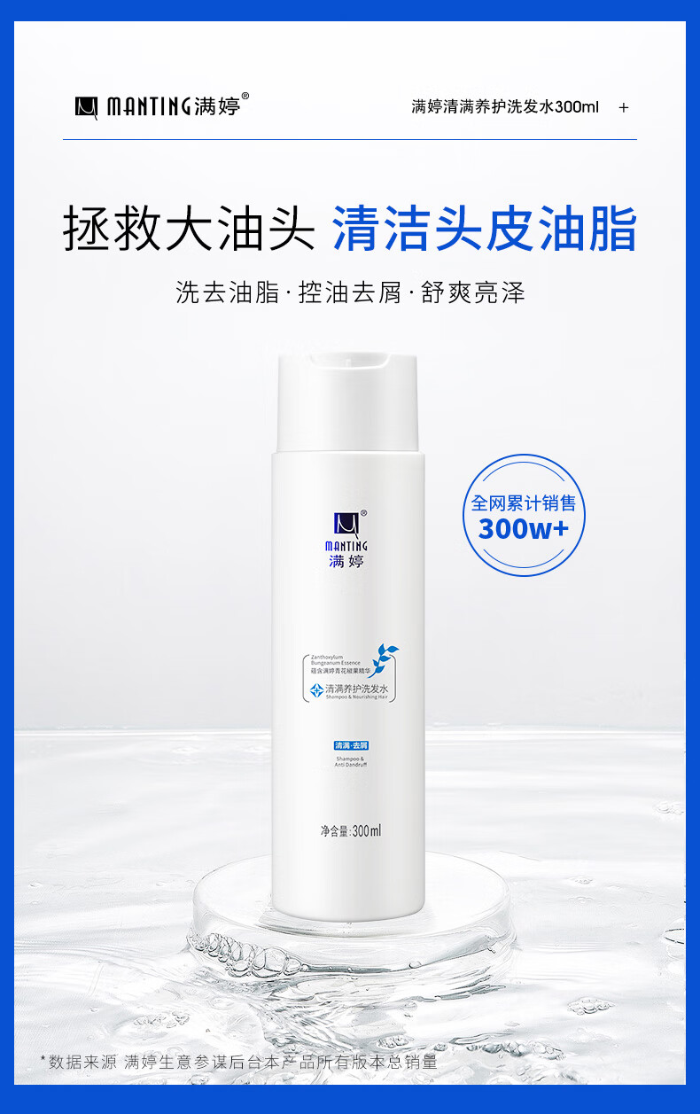 满婷清满养护洗发露滋养修护洗发水去屑控油洗发液膏300ml 清满养护洗发水300ml