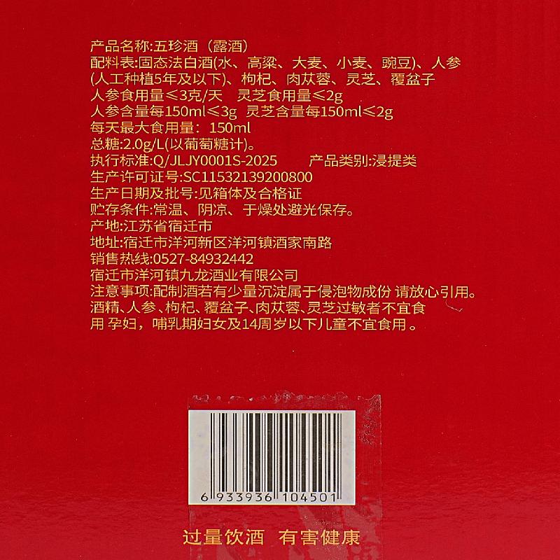 九龙潭 52度2.5L固态法白酒浸泡 人参枸杞肉苁蓉覆盆子灵芝 52度 2.5L 1坛