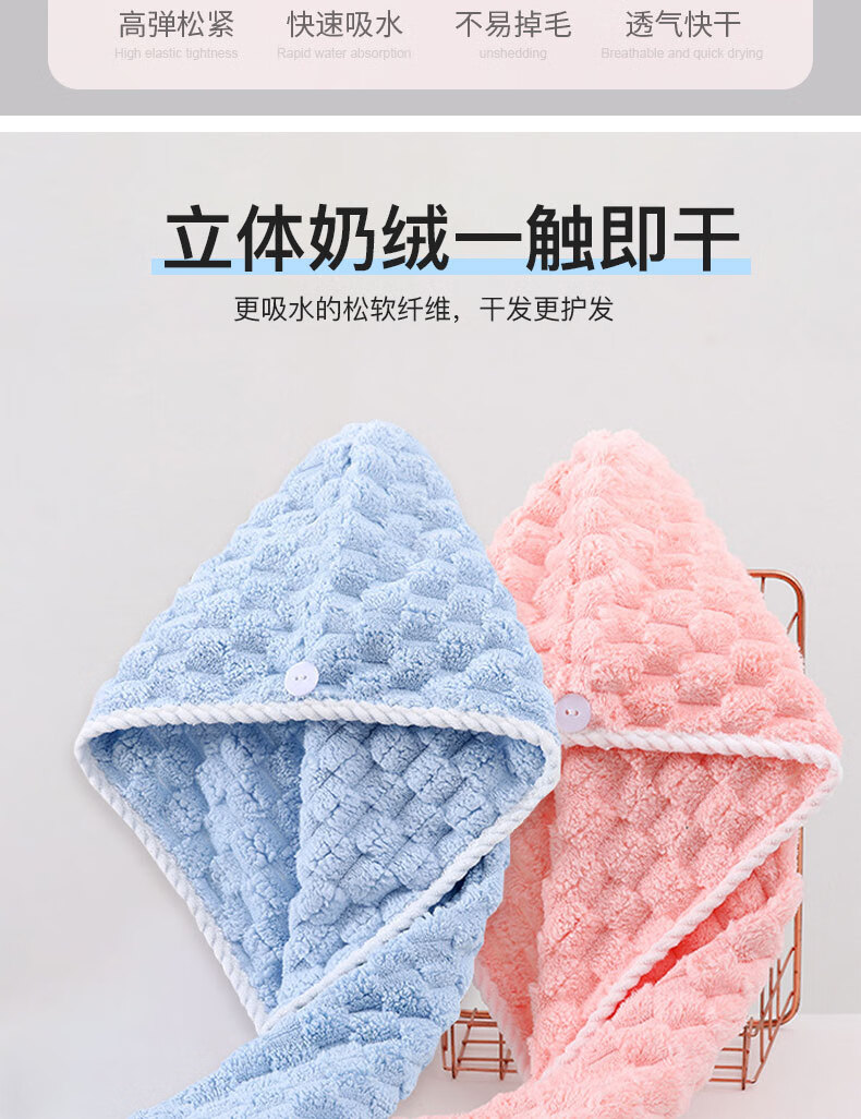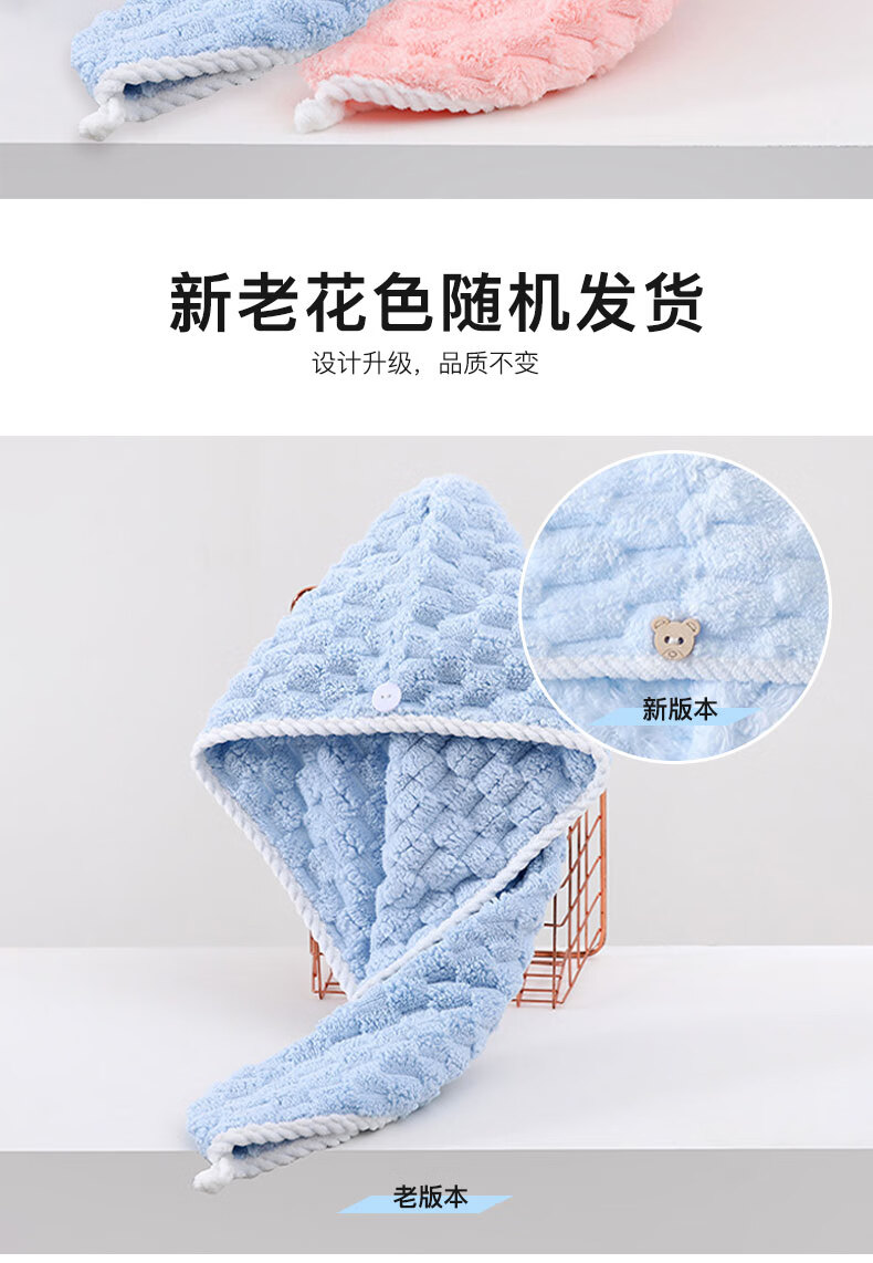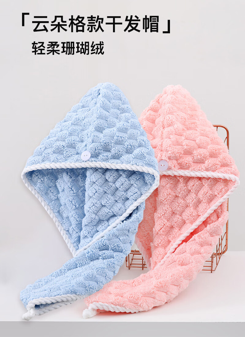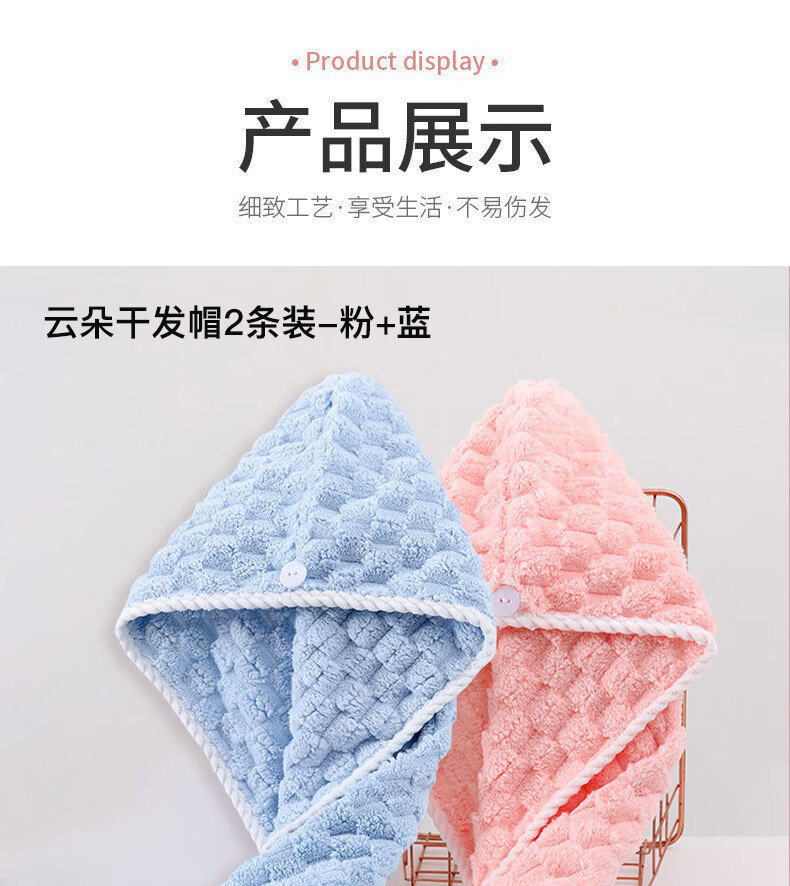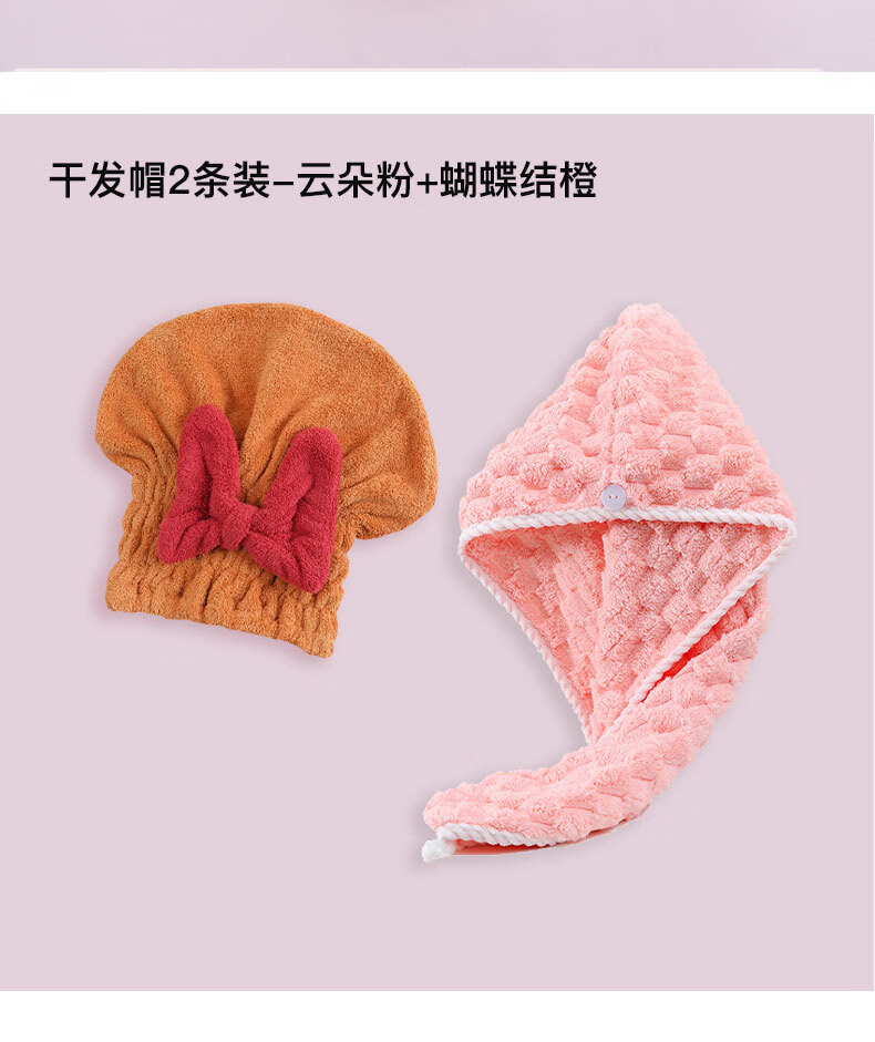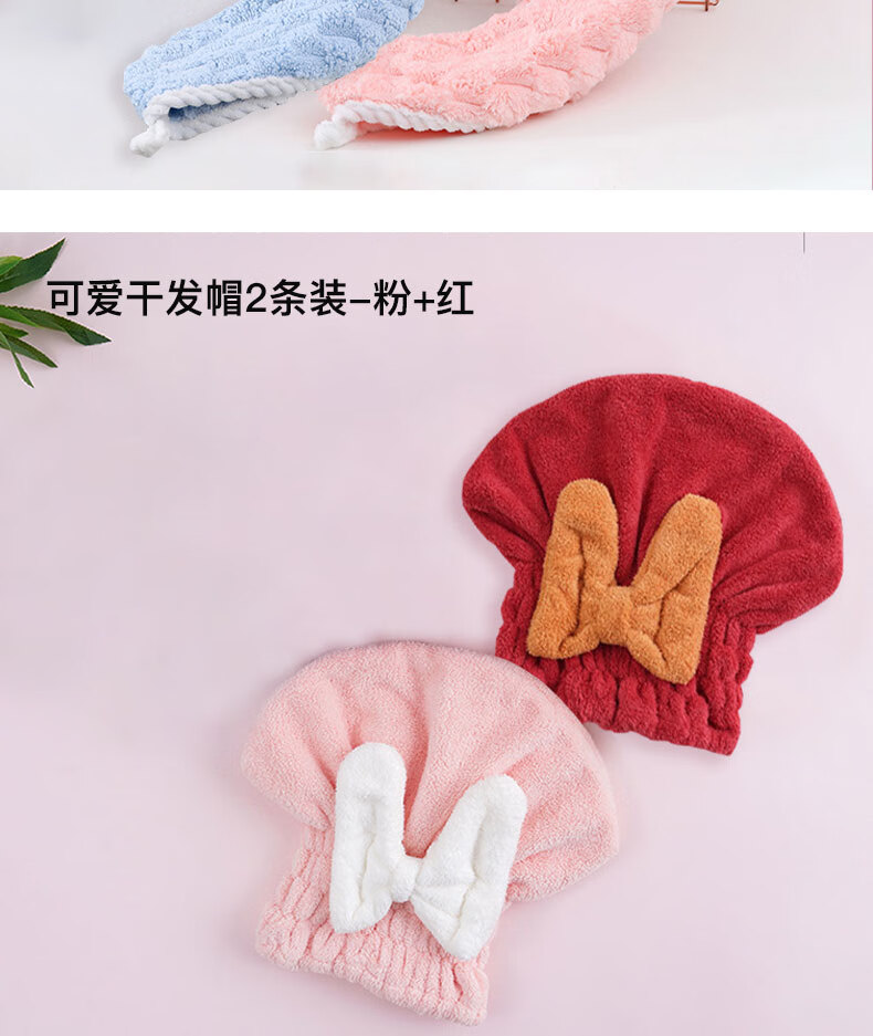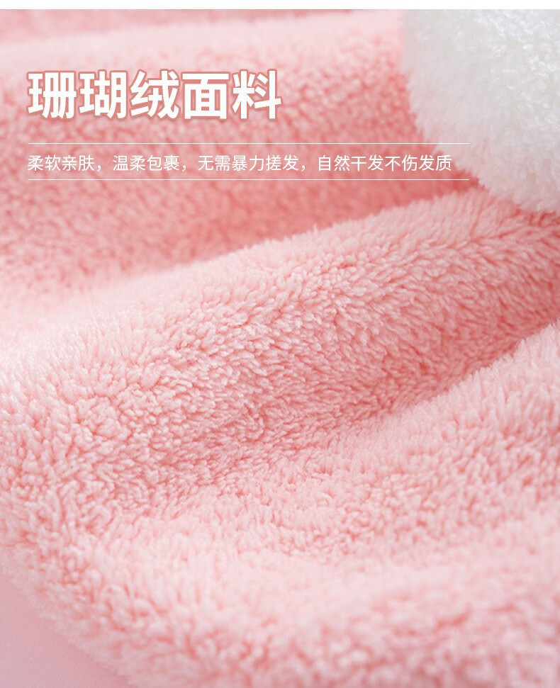 江南猫干发帽女超强吸水加厚加大速干浴帽包头巾不掉毛巾儿童擦洗头巾FX 2条装【云朵奶绒】粉+蓝