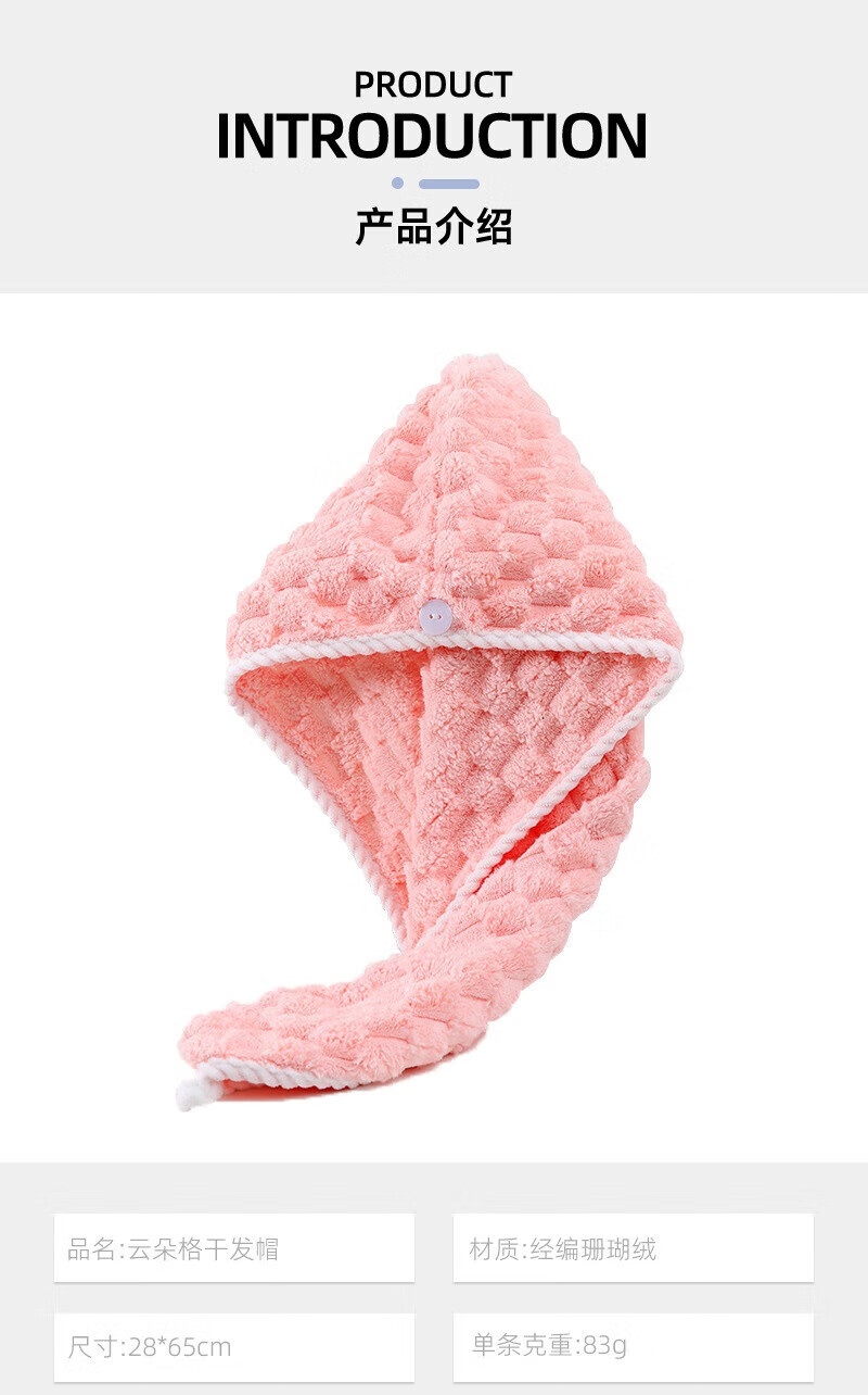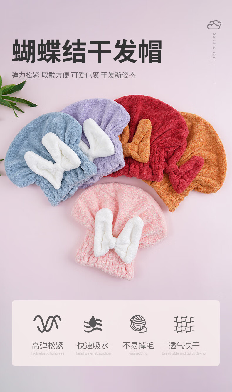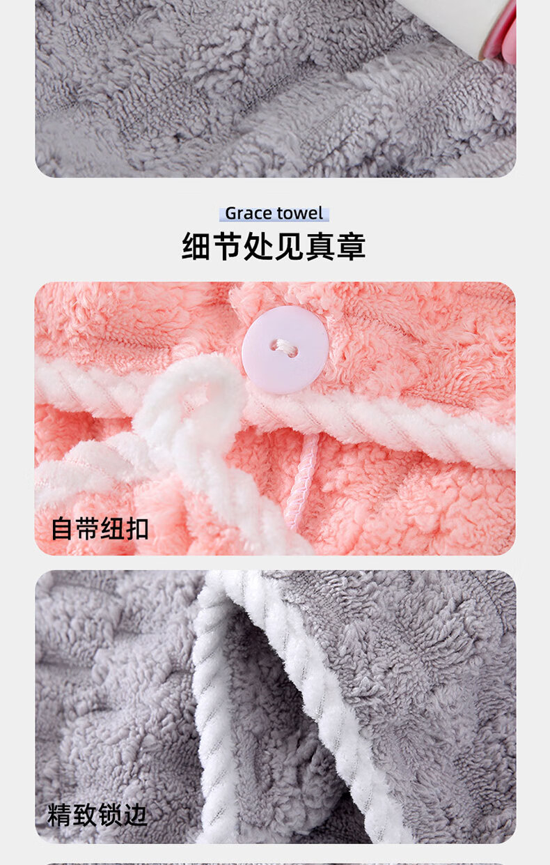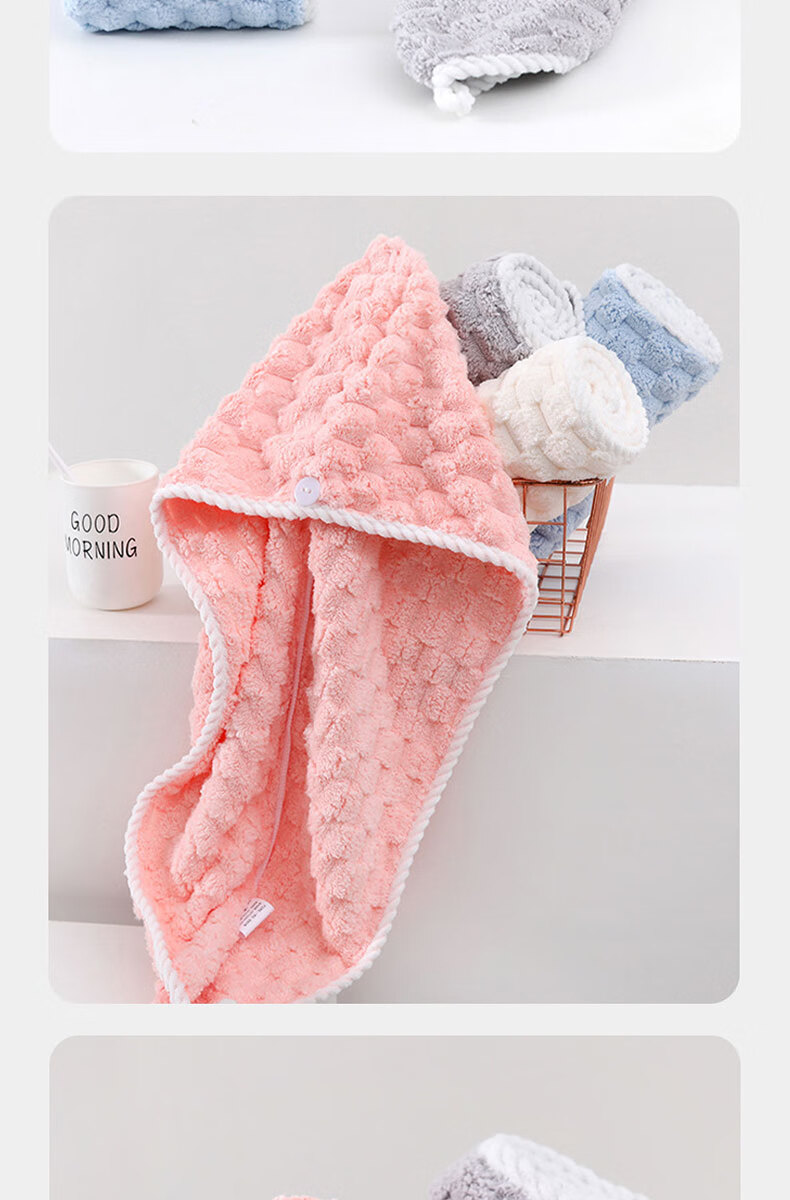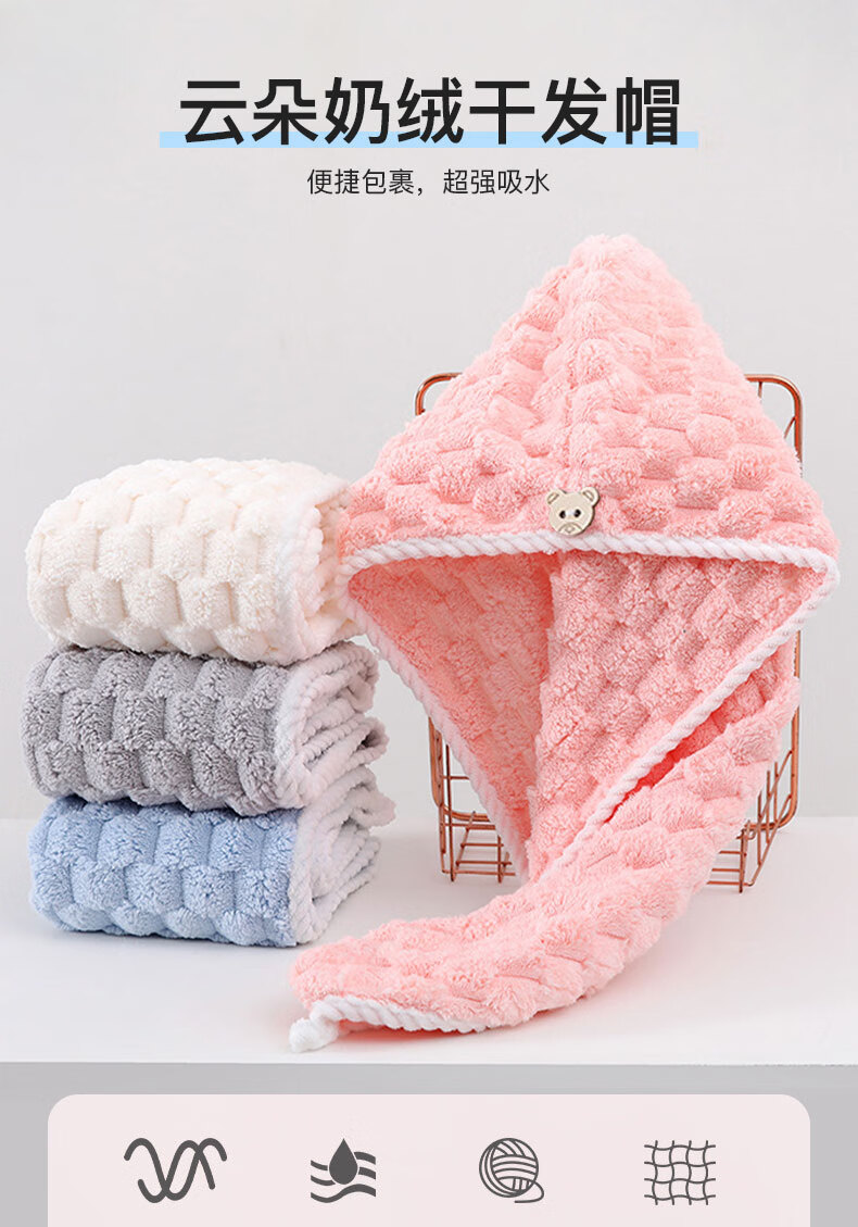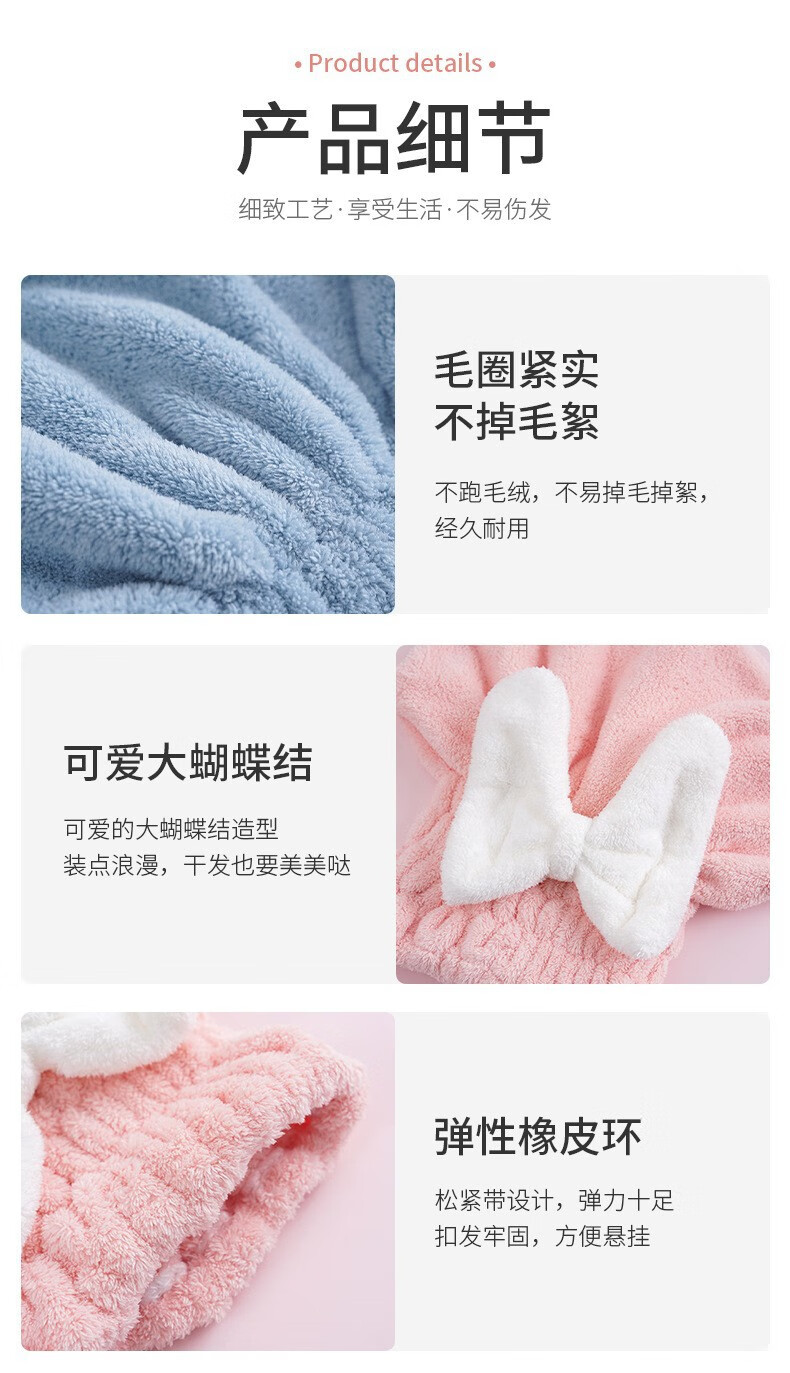 江南猫干发帽女超强吸水加厚加大速干浴帽包头巾不掉毛巾儿童擦洗头巾FX 2条装【云朵奶绒】粉+蓝