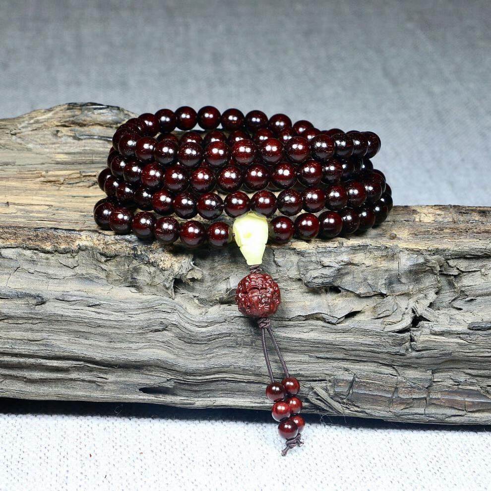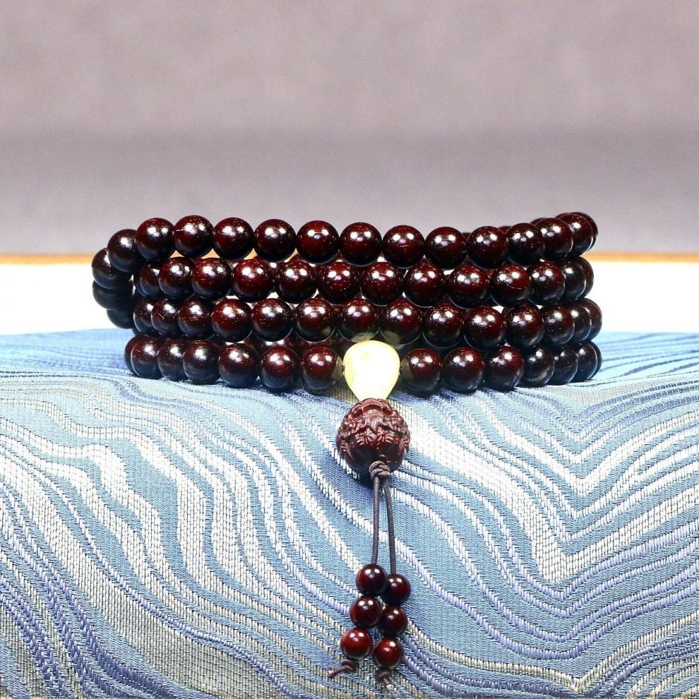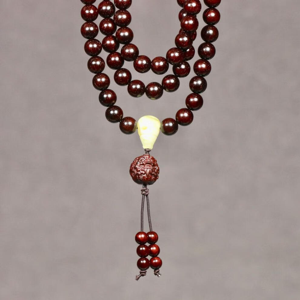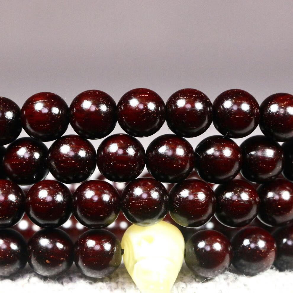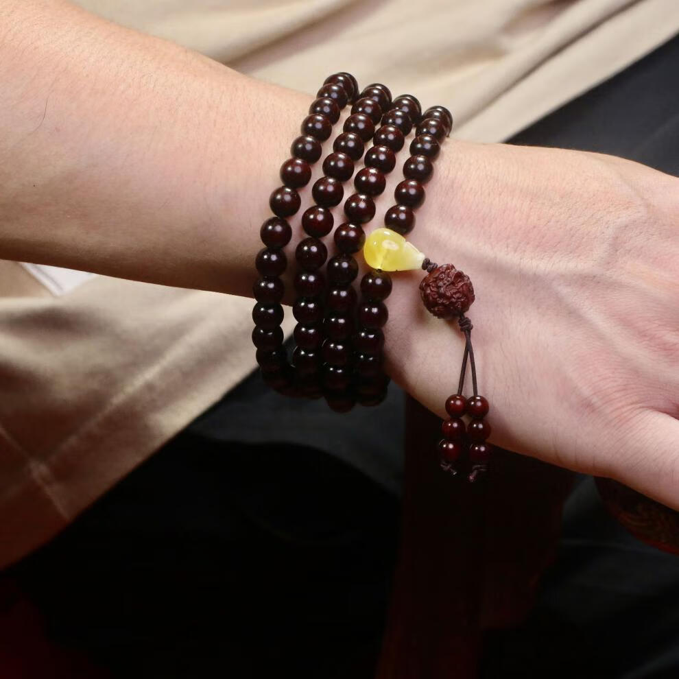 宝佩小叶紫檀0.8满金星搭配貔貅蜜蜡一体三通高油高密佛珠手串礼品 小叶紫檀满金星0.8