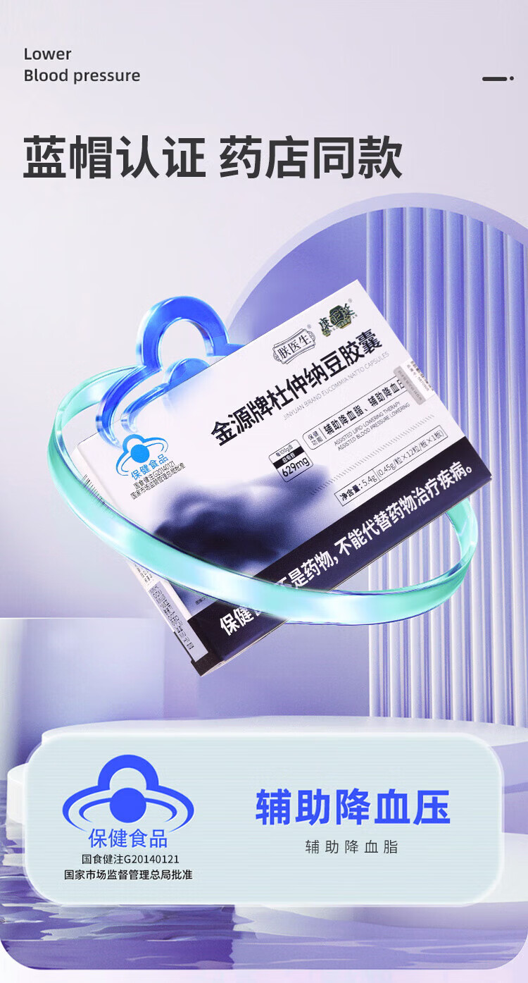 康正延朕医生康正延金源牌杜仲纳豆胶囊辅助降血压血脂中老年正品保健品 【周期装】 12粒*3盒