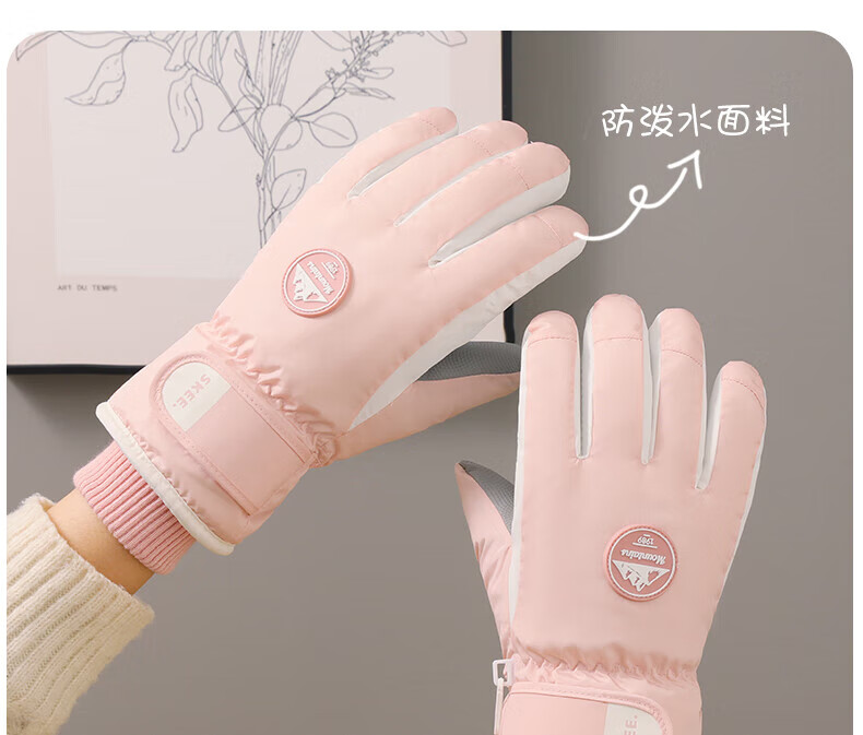 采蕉猫滑雪手套男女冬天加绒加厚保暖防风防寒可触屏东北骑行电动车手套 【加绒加厚+防风防水+骑行推荐】黑色 均码