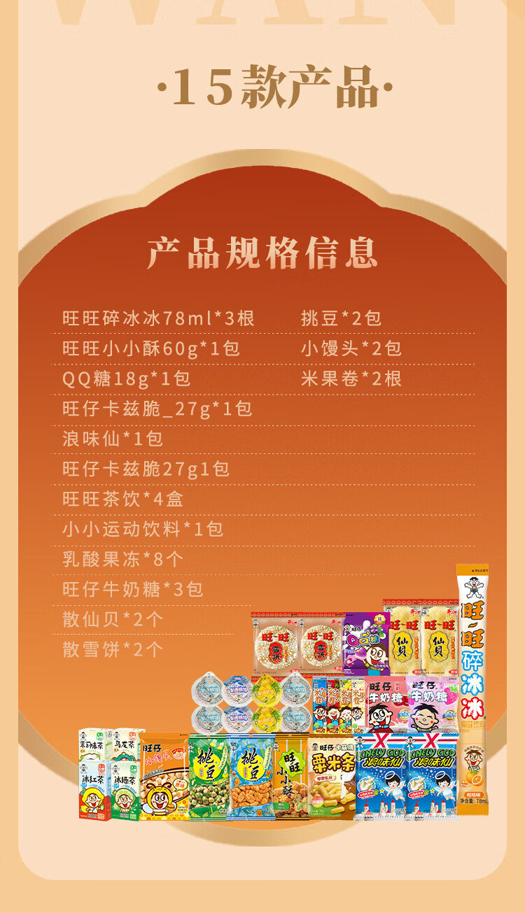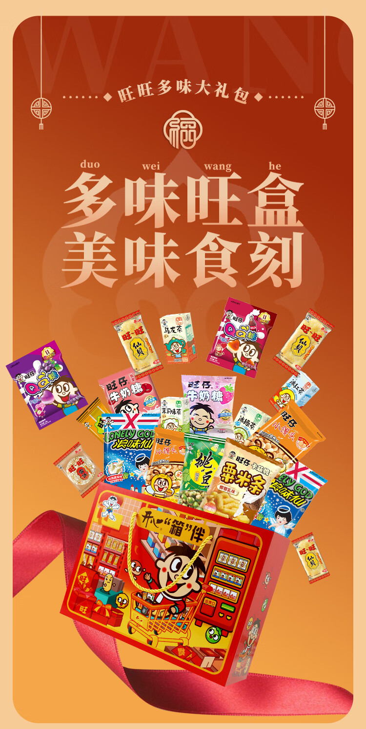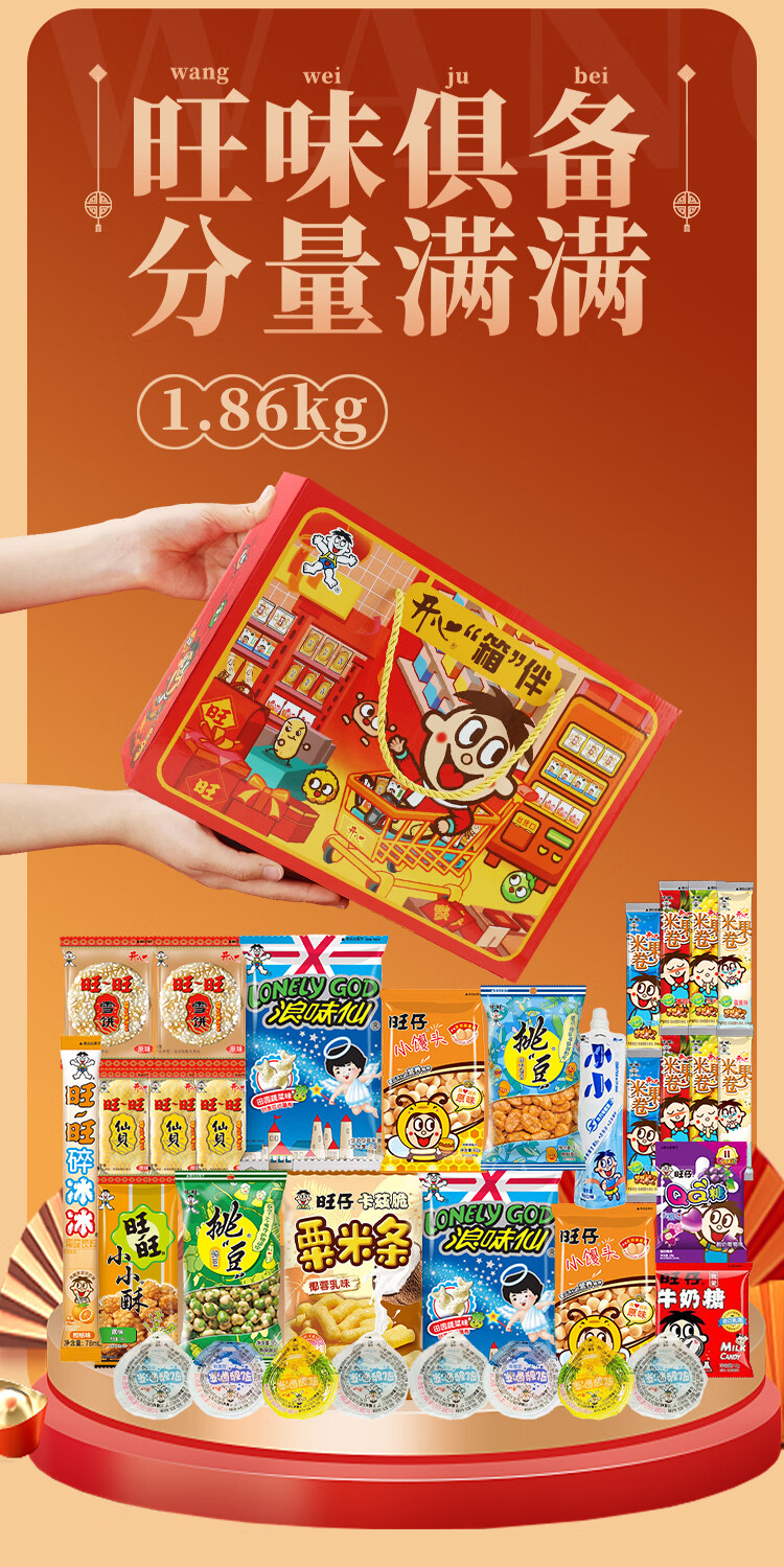 旺旺大礼包新年旺旺薯片零食礼包节日春节惊喜礼物礼品 旺旺招财进宝醒狮大礼盒1341g