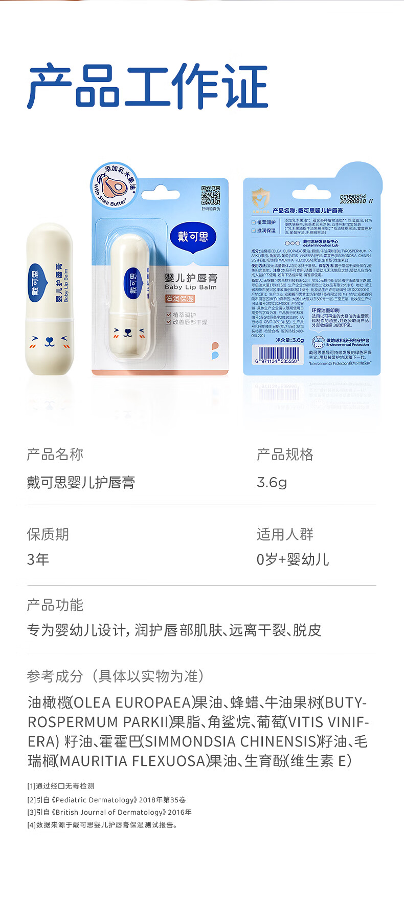 戴·可·思(Dexter)精选婴儿童唇膏润护宝宝护唇用品滋润护唇 【拍1发2】婴儿唇膏3.6g