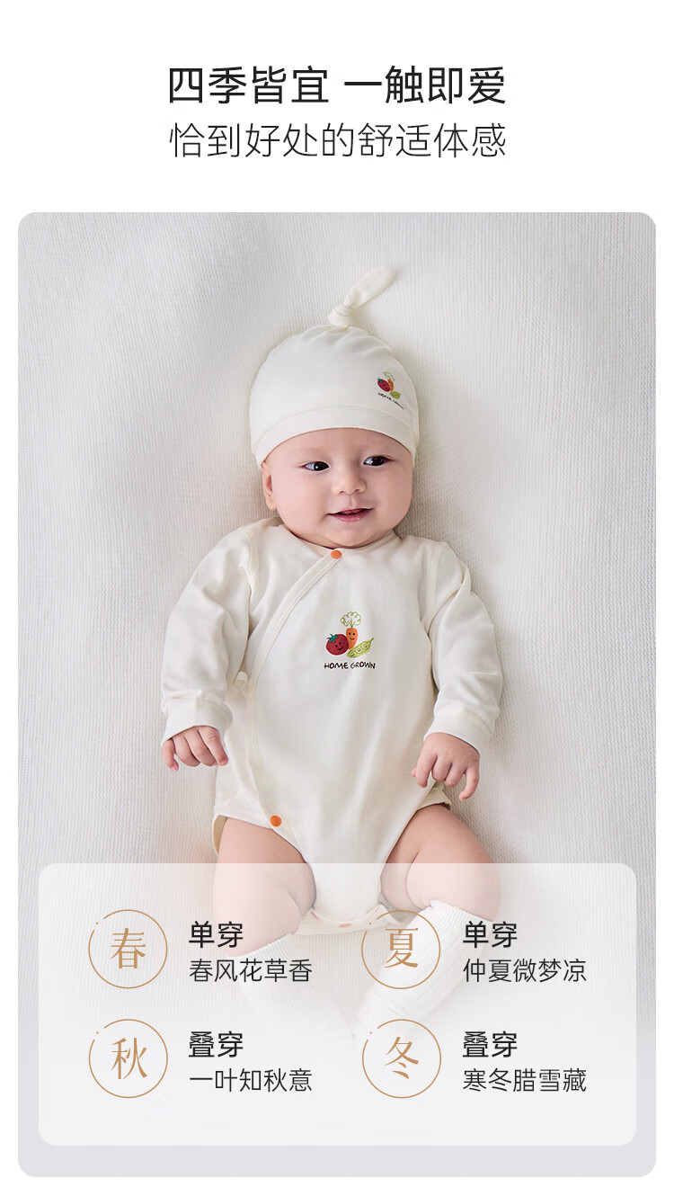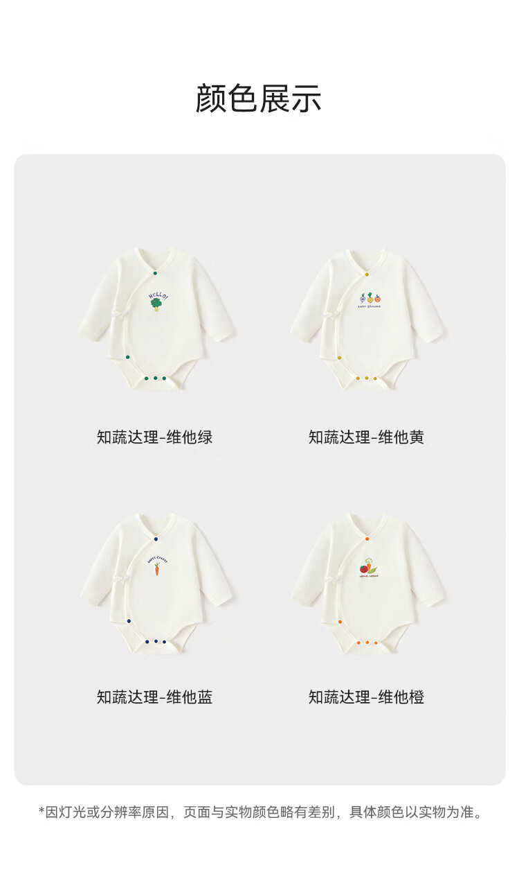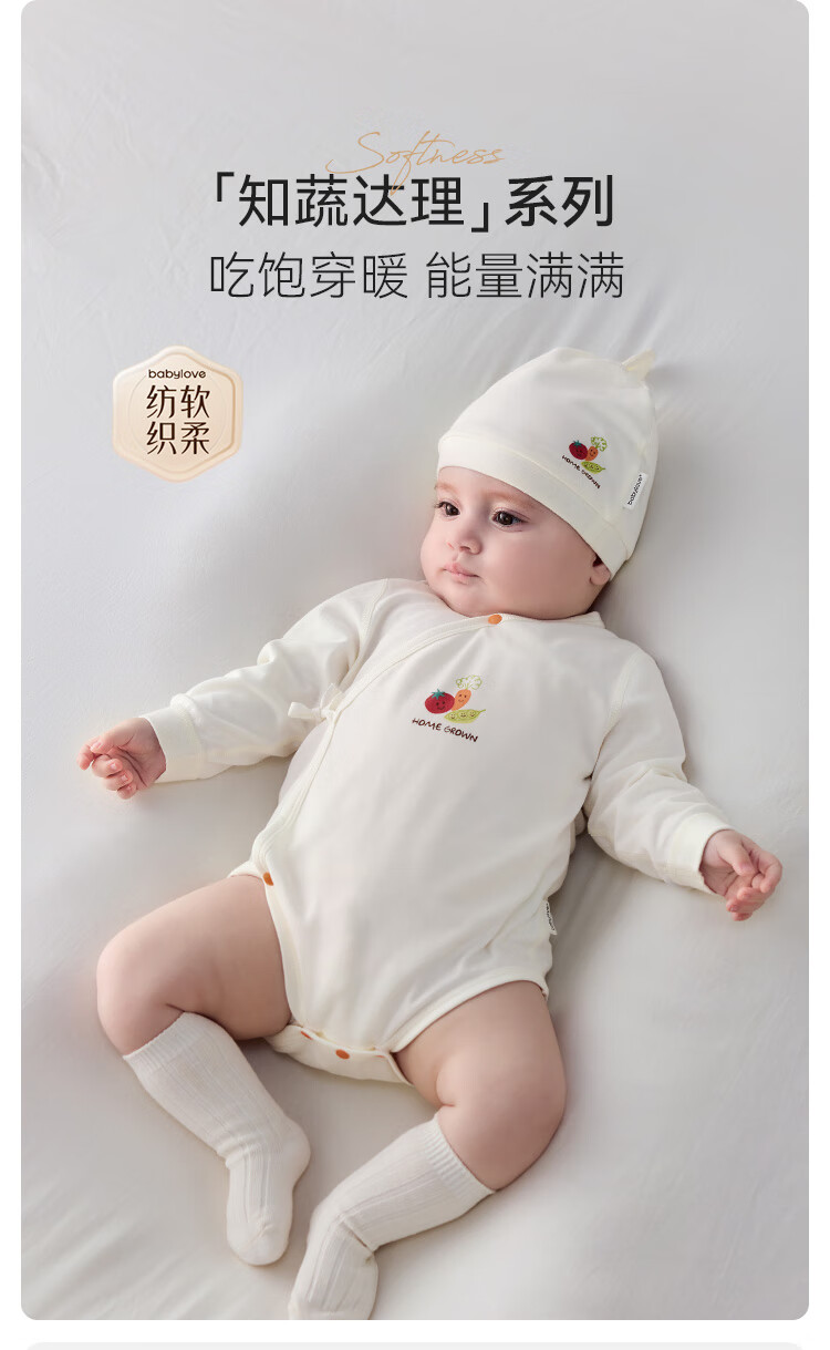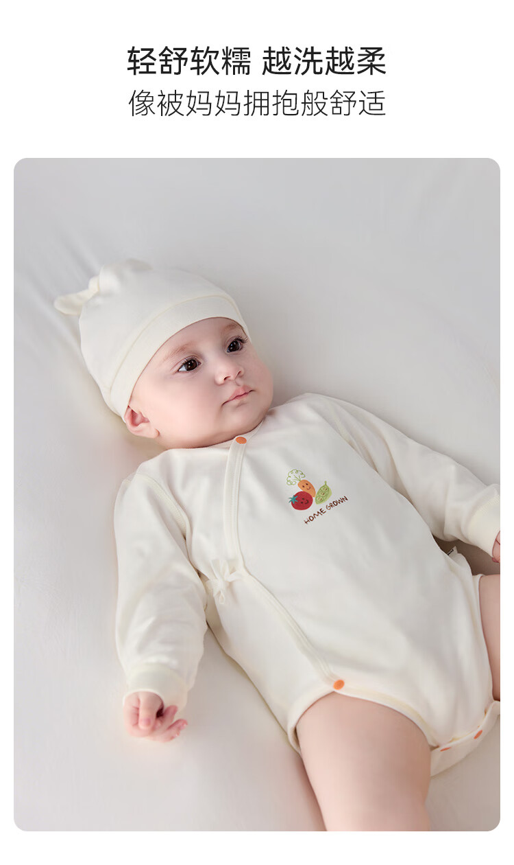 babylove【清仓】【纺软织柔】婴儿包屁衣春秋纯棉宝宝衣服三角哈衣系带 知蔬达理-维他黄 52cm