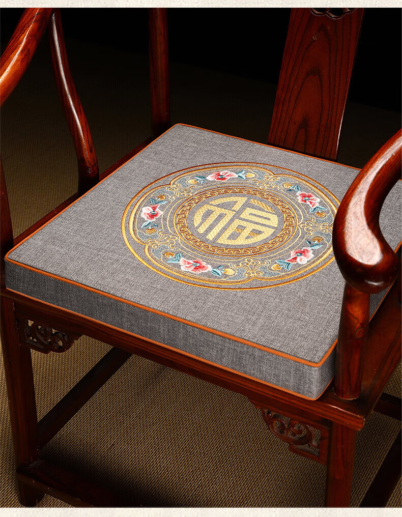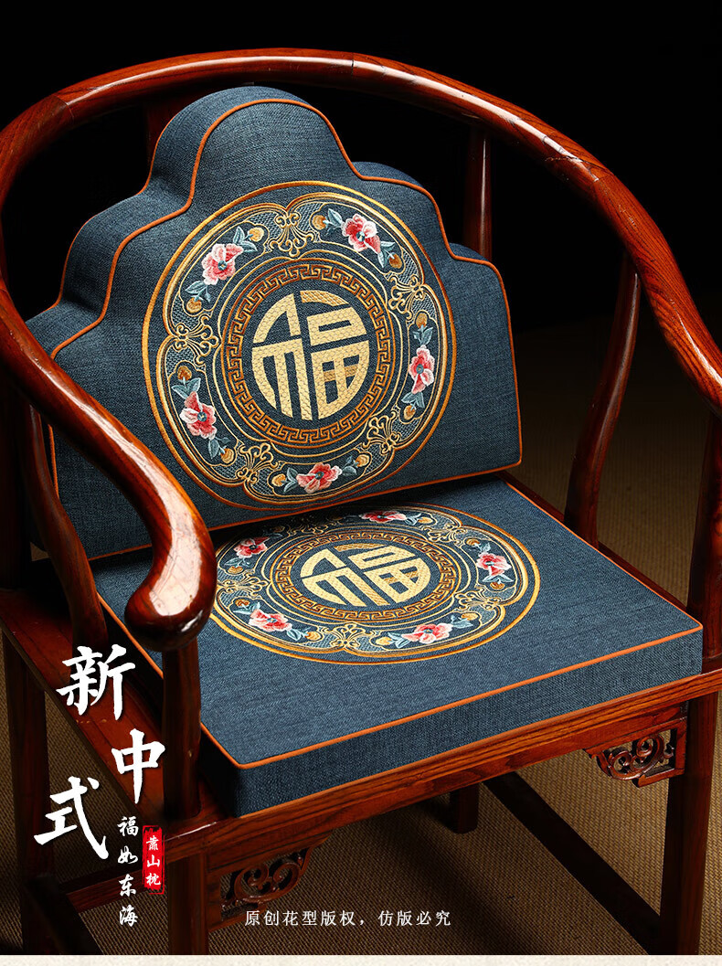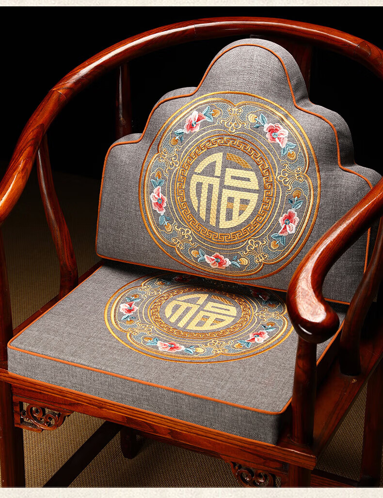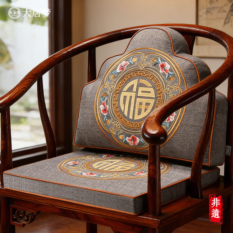 大唐梦圈椅太师椅座垫靠枕茶椅垫家用中式红木椅子坐垫护腰靠背定制垫子 福如东海 烟灰 【多丽丝麻/刺绣/防水/防滑】 T:45*38cm(含5cm海绵)+5cm靠山枕