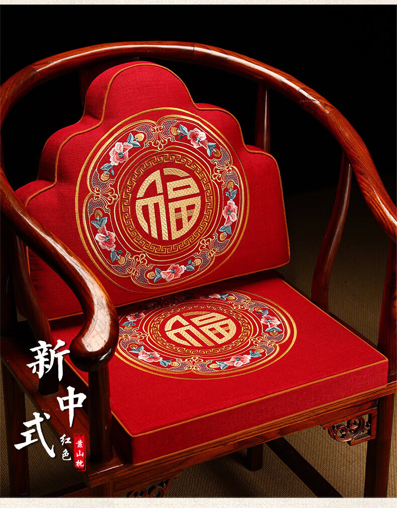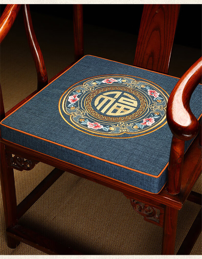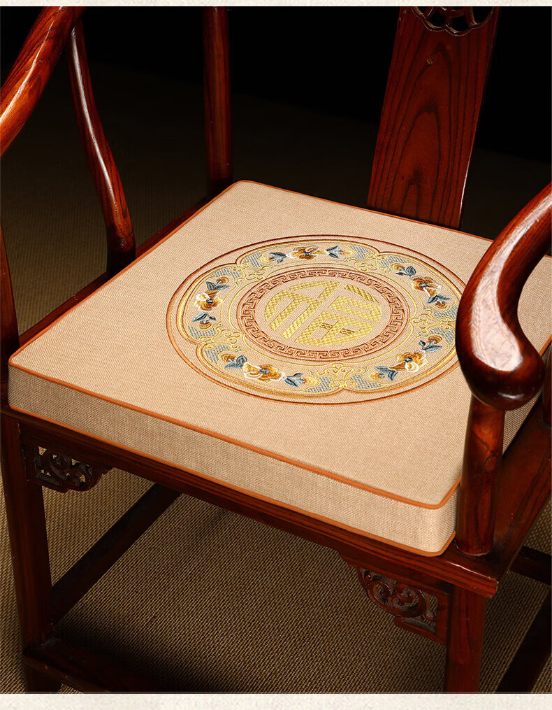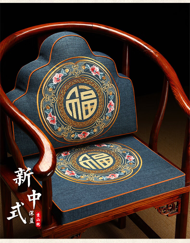 大唐梦圈椅太师椅座垫靠枕茶椅垫家用中式红木椅子坐垫护腰靠背定制垫子 福如东海 烟灰 【多丽丝麻/刺绣/防水/防滑】 T:45*38cm(含5cm海绵)+5cm靠山枕