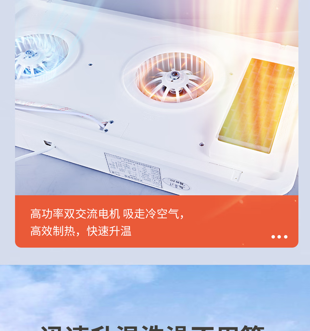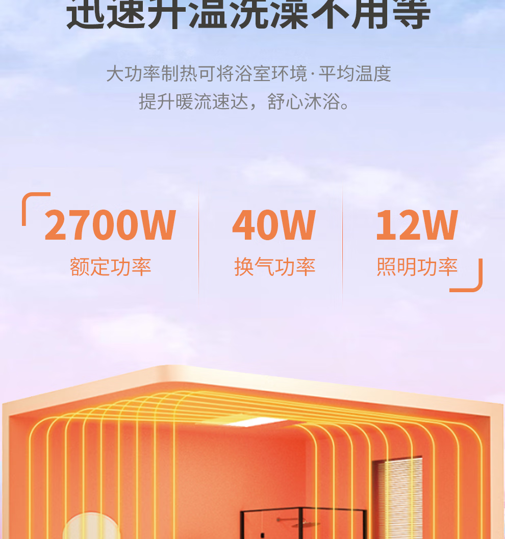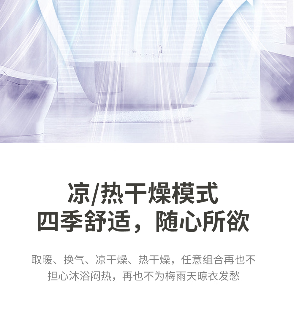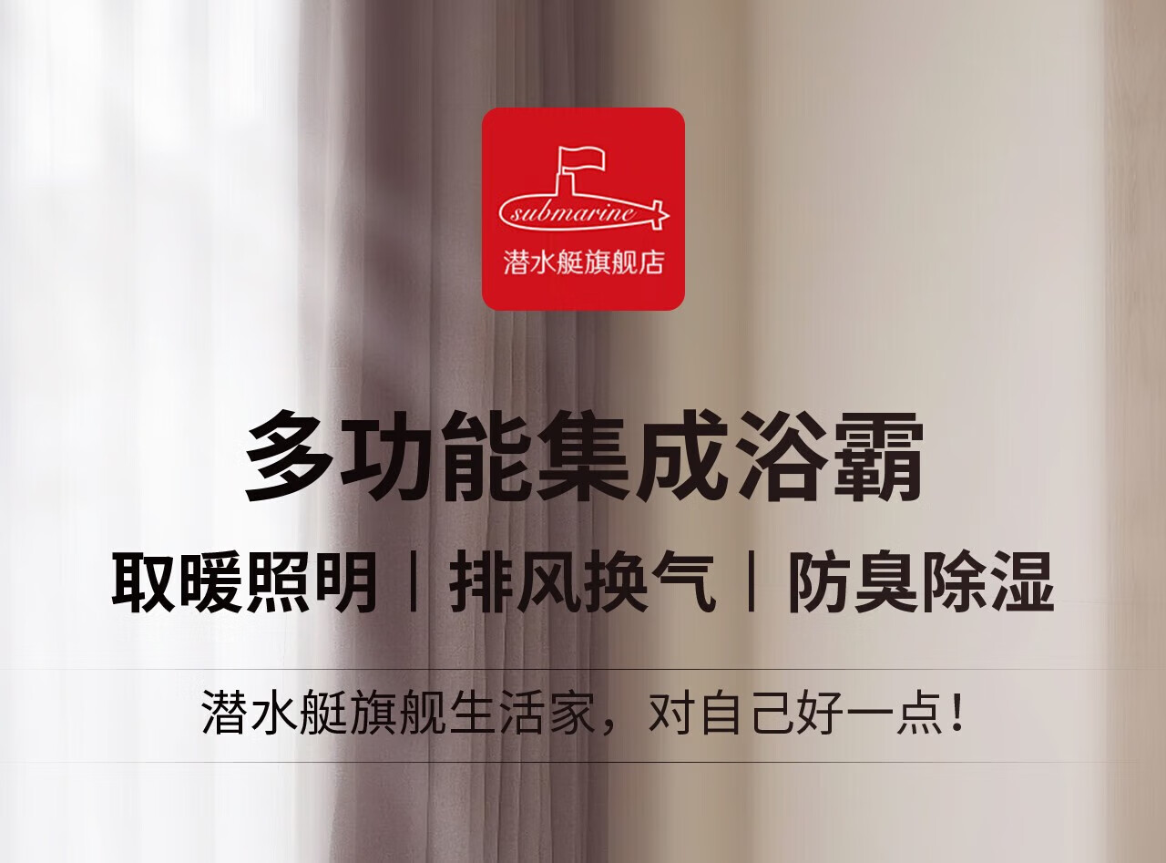 潜水艇(Submarine)浴霸暖风照明排换气一体双电机夜灯吹风弱暖强暖干燥自动沐浴数显 浴霸