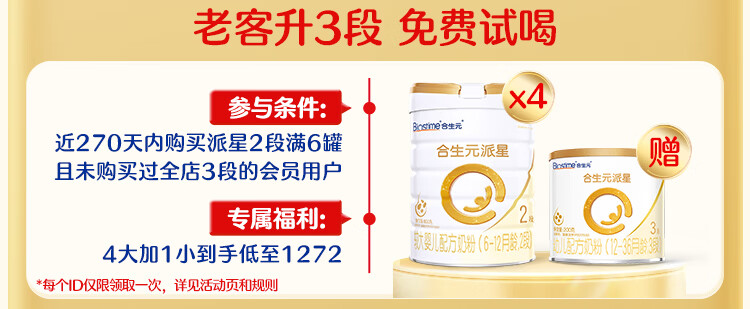 合生元(BIOSTIME)派星 较大婴儿配方奶粉 2段(6-12个月)新国标 800克*6罐