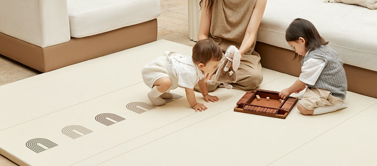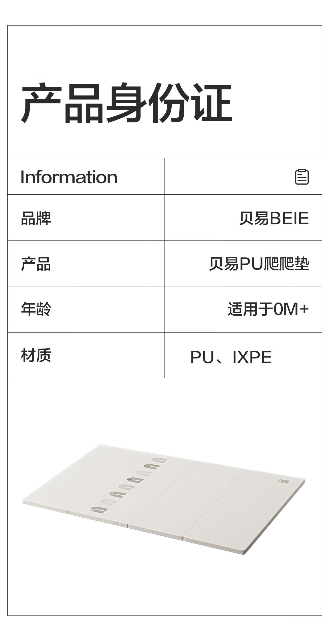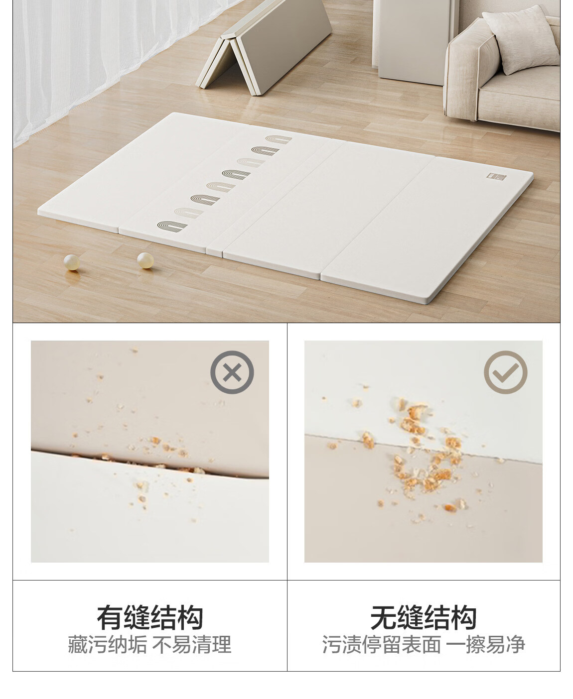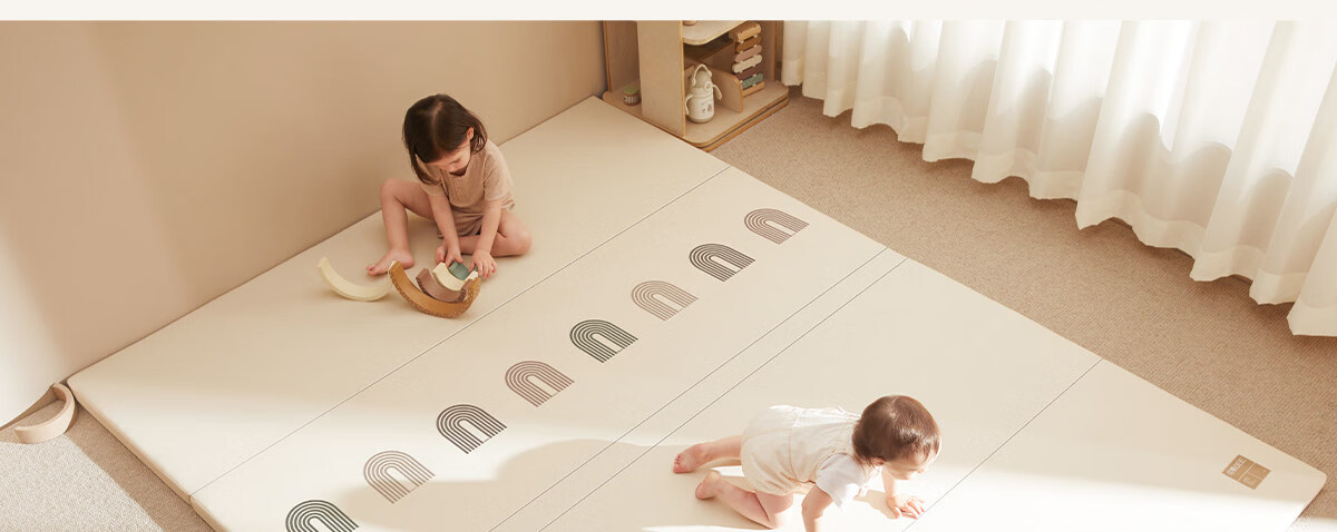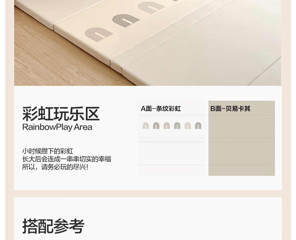 贝易宝宝折叠爬爬垫PU加厚防摔婴儿爬行垫IXPE材质150*180*4cm彩虹