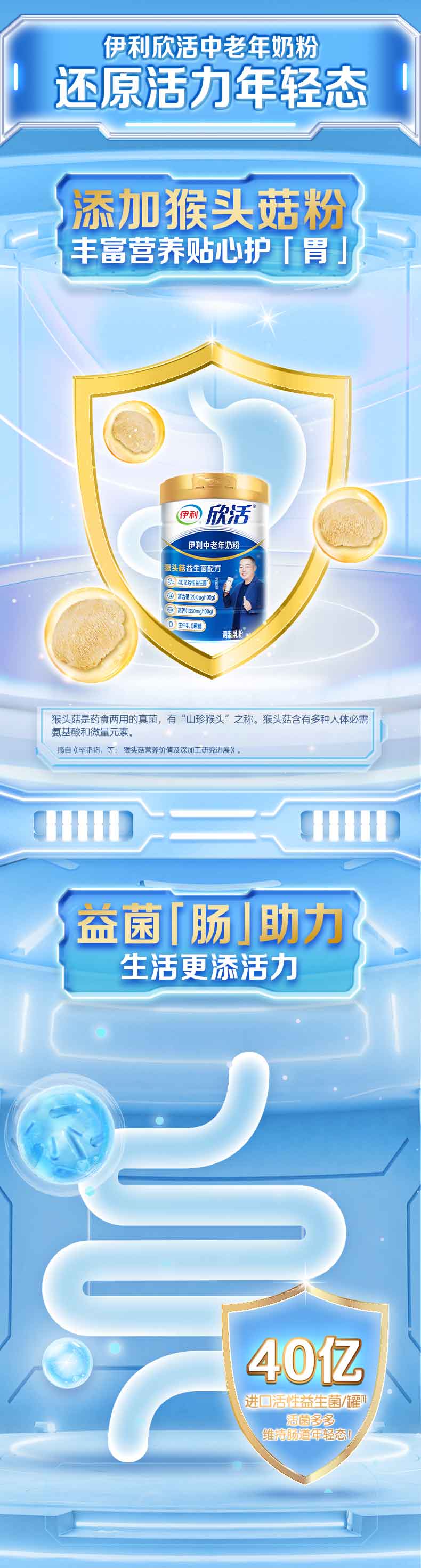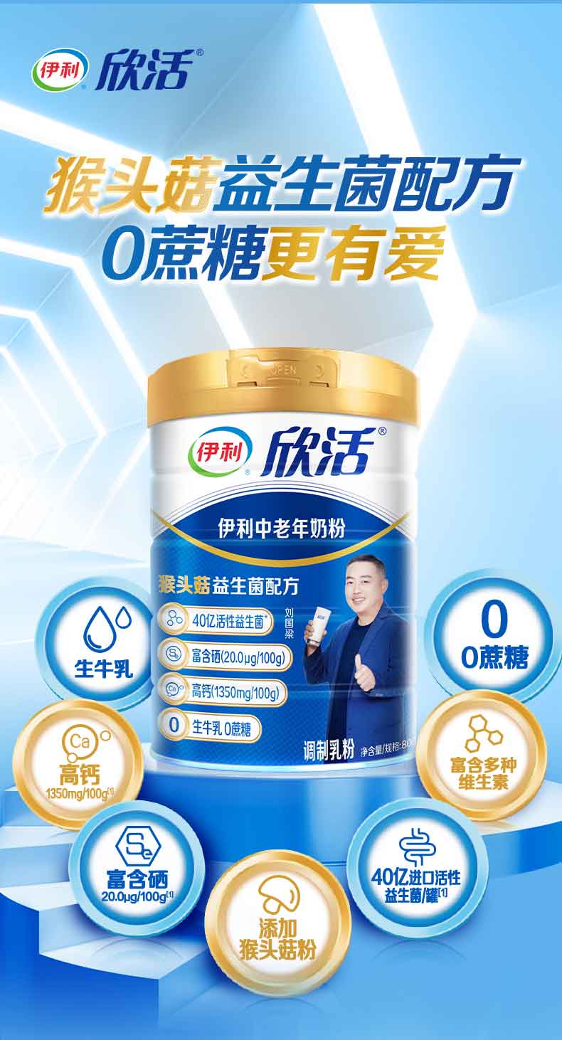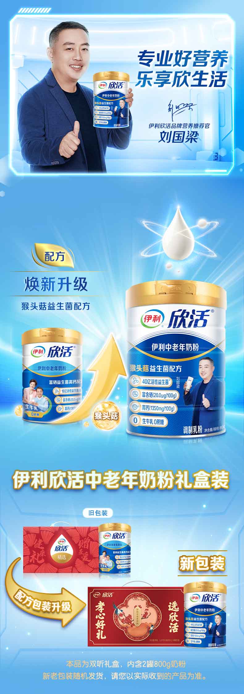 伊利欣活中老年奶粉800g*2礼盒装0蔗糖 高钙高蛋白益生菌 新年送长辈