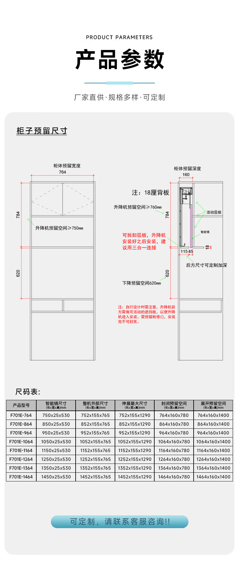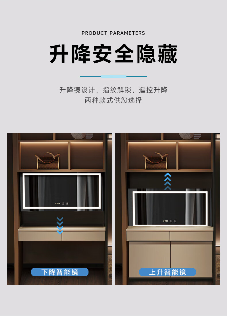 德米莫智能电动衣帽间收纳升降梳妆台化妆镜子隐形摇表器高端定制 定制尺寸咨询客服(25天发货)