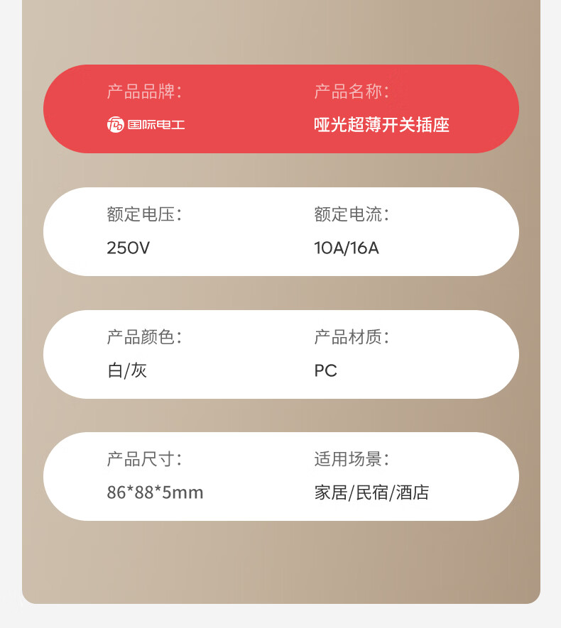 国际电工超薄哑光开关插座奶油白全屋墙壁电源插座面板一开五孔双控磨砂 空白面板