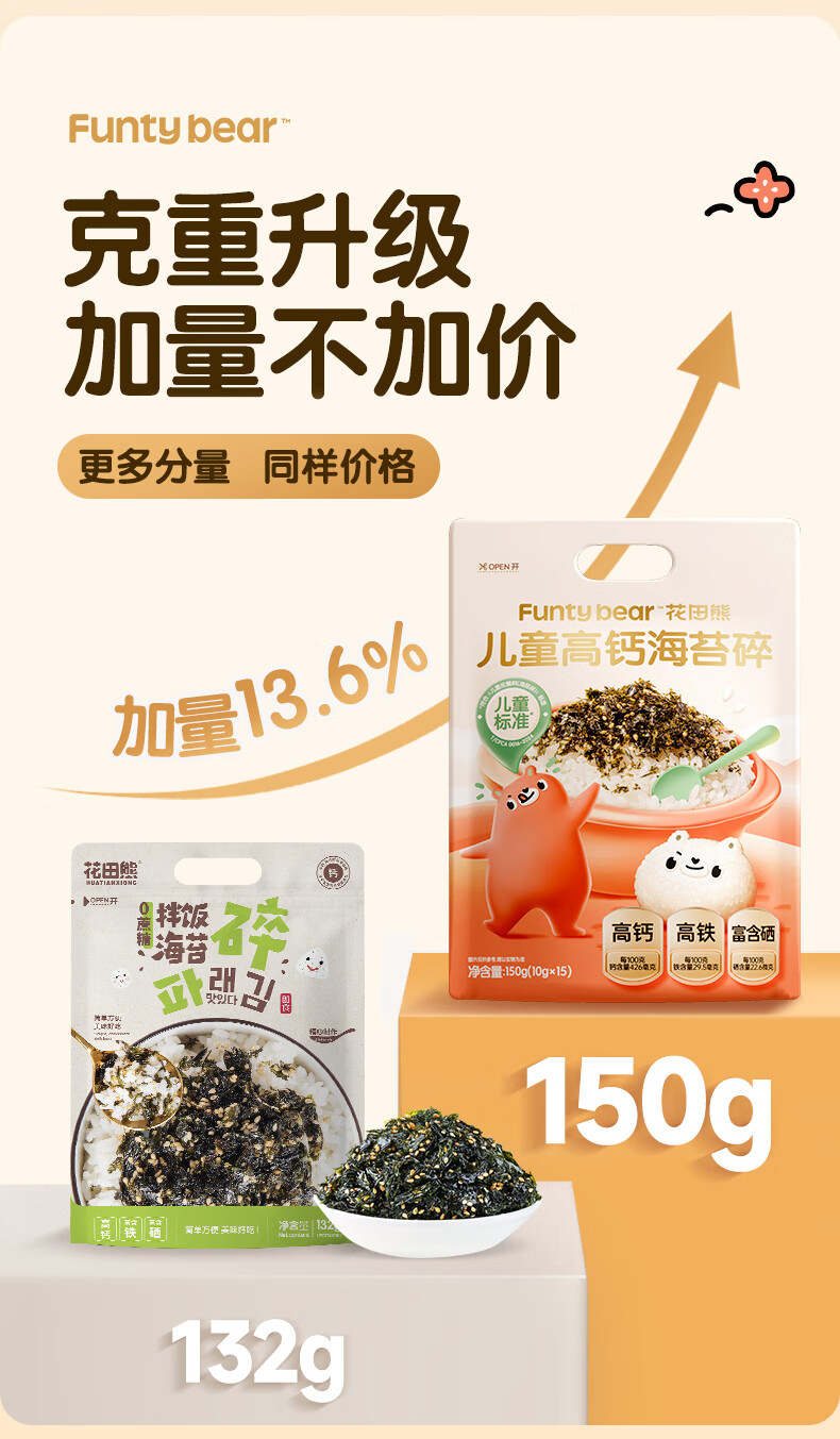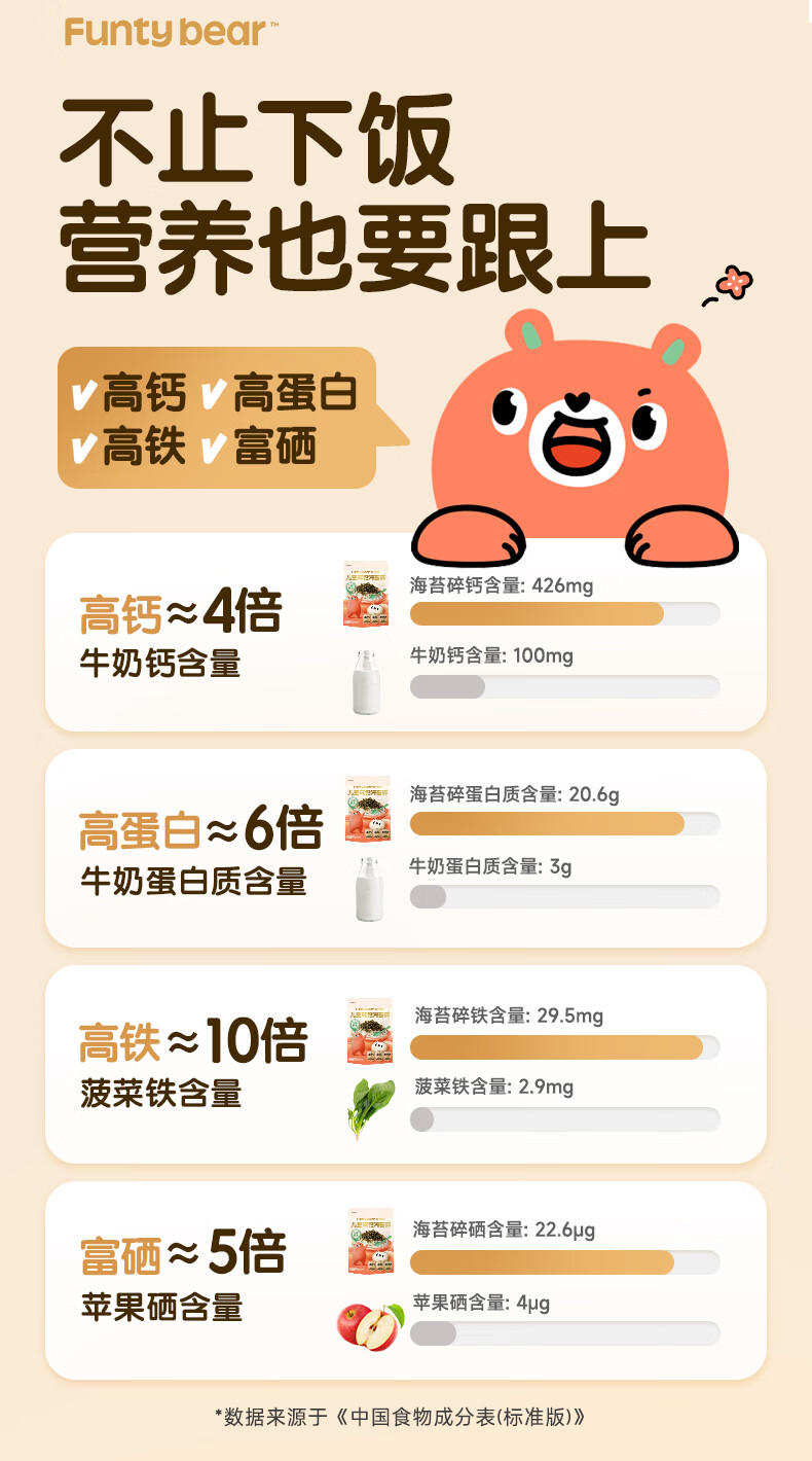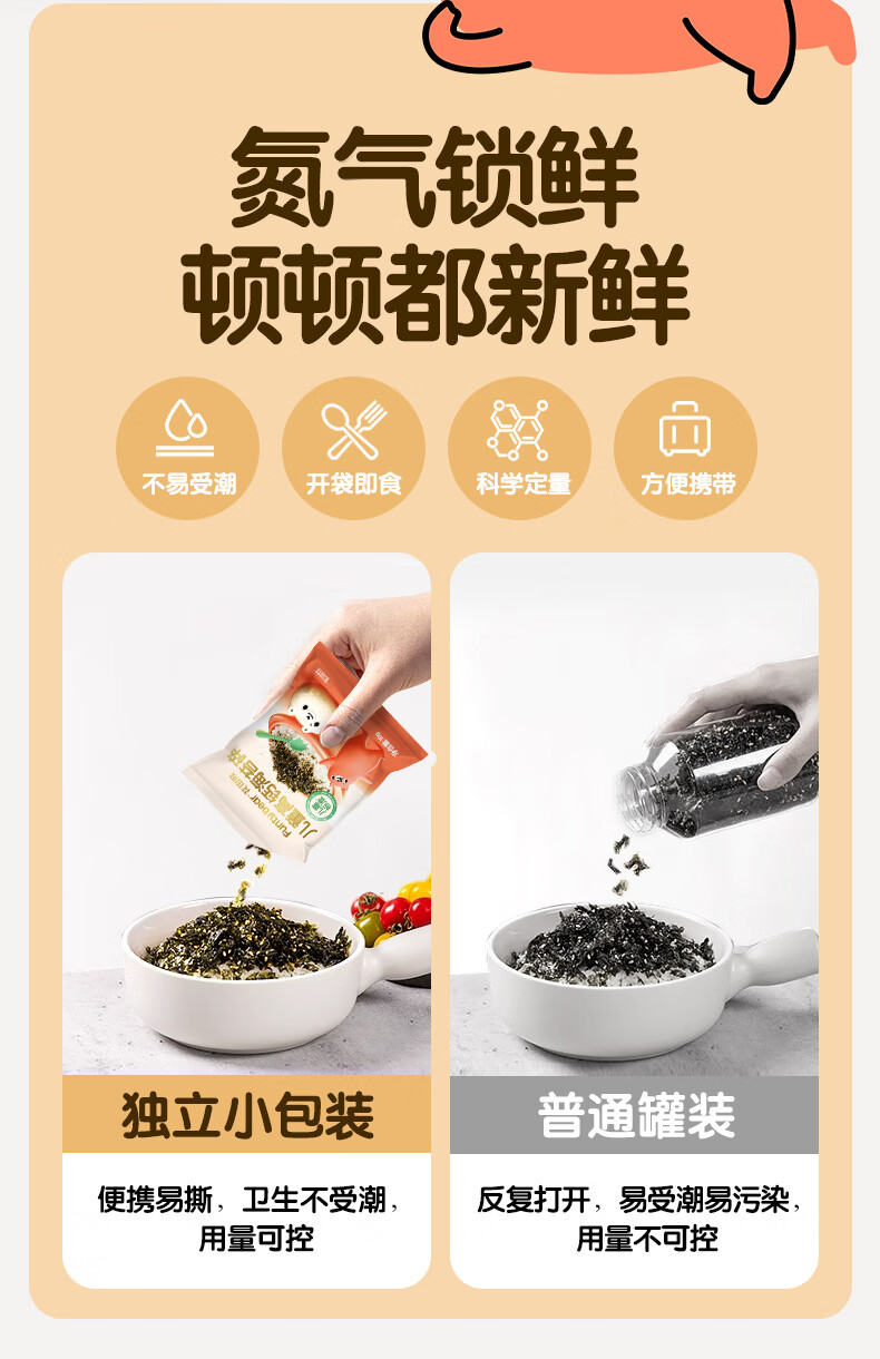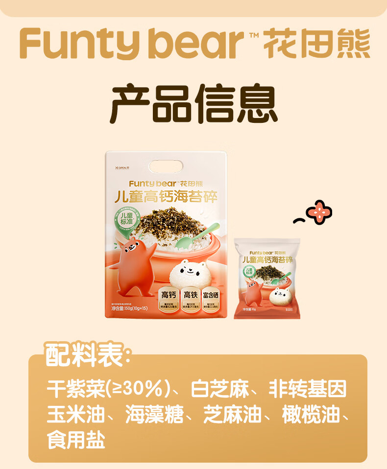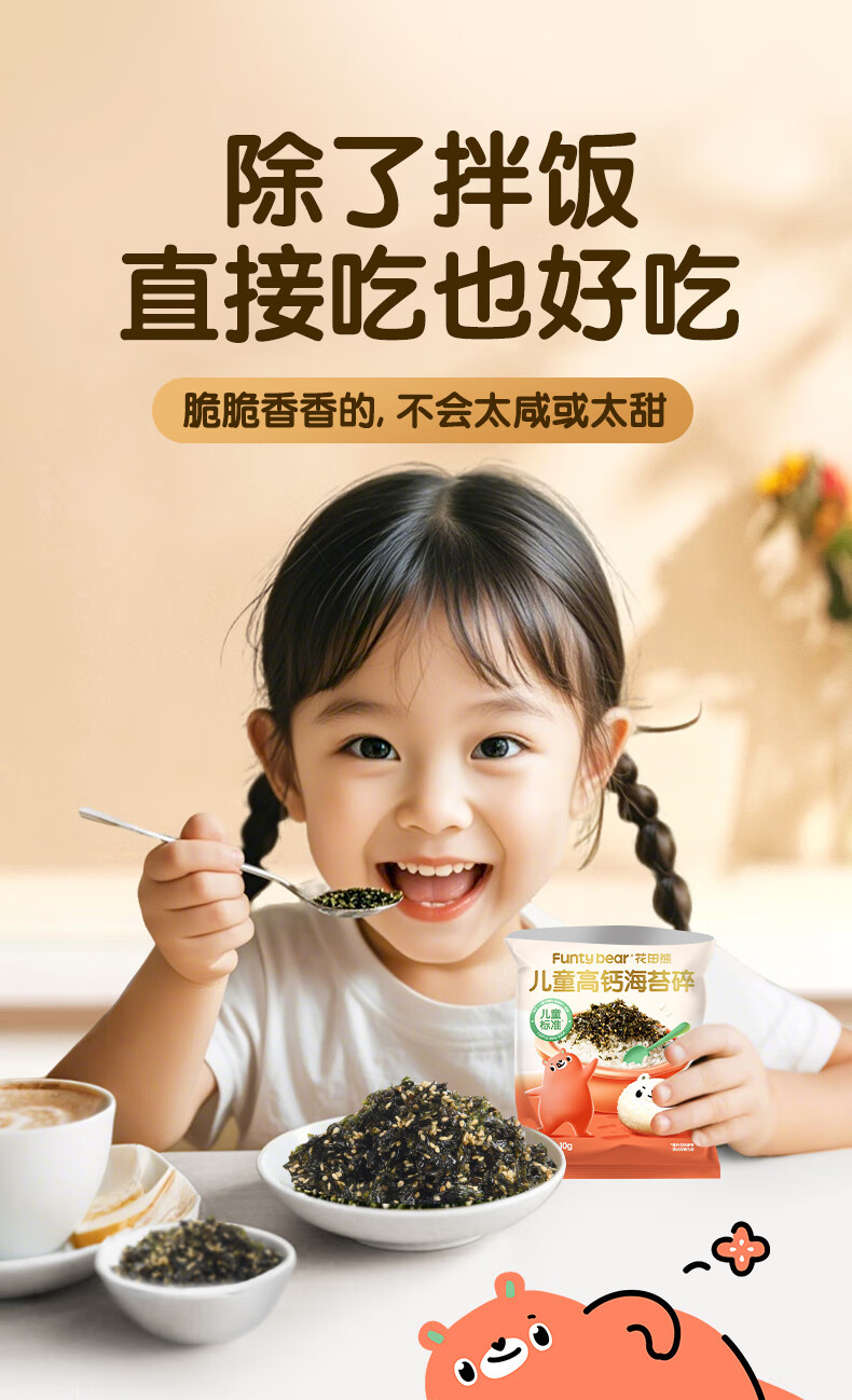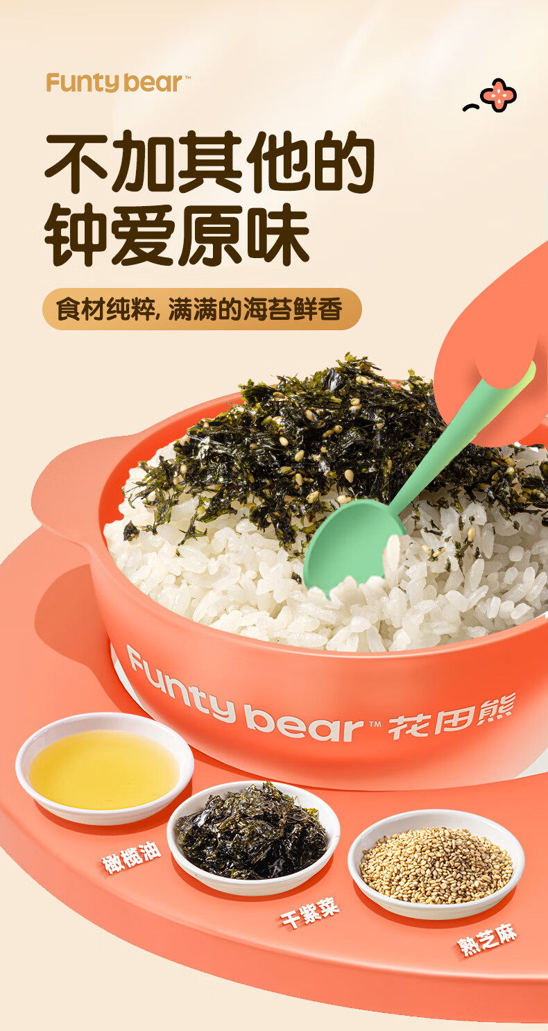 花田熊儿童零食海苔拌饭碎高钙高蛋白饭团寿司材料营养早餐紫菜 【尝鲜装】原味海苔碎70g*1袋(7小包)